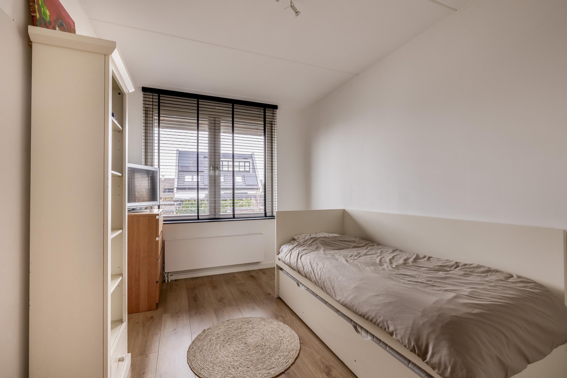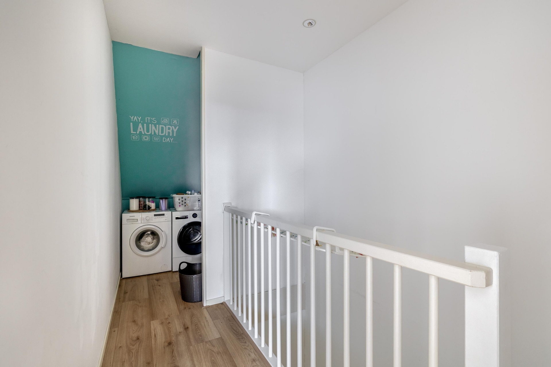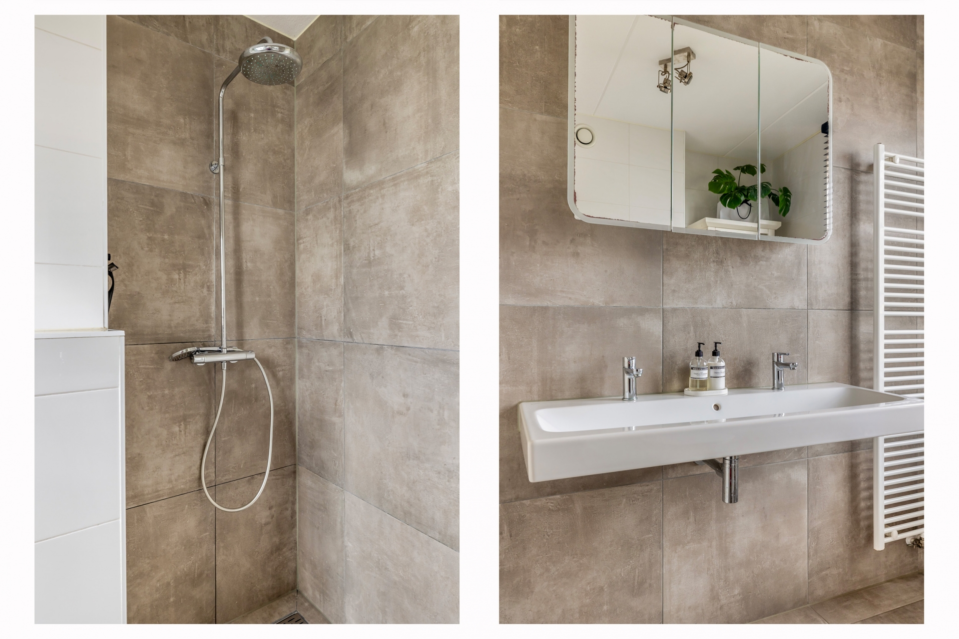 Op de 1e verdieping bevinden zich 3 van de 4 slaapkamers, waarvan de grootste aan de achterzijde ligt en uitzicht biedt op de tuin. De slaapkamers zijn netjes afgewerkt en ideaal als ouderslaapkamer, kinderkamer of werkruimte. De badkamer is licht, modern en compleet: voorzien van een dubbele wastafel, tweede toilet en inloopdouche met regendouche. De 2e verdieping biedt een riante vierde slaapkamer met dakkapel en volop bergruimte, én ruimte voor je wasmachine en droger. Hier is een overloop met in de hoek keurig de wasmachine en droger weggewerkt.