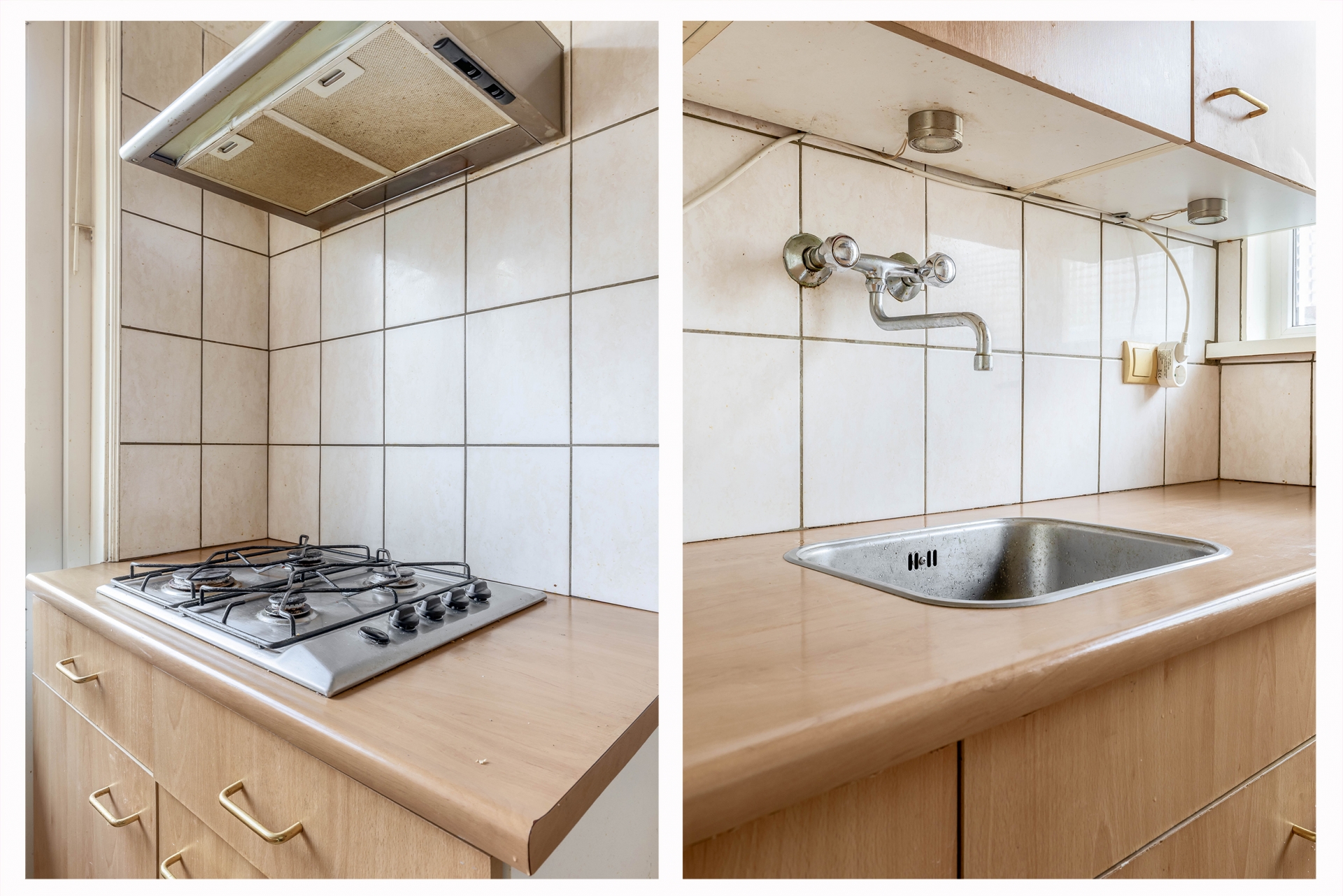 De keuken bevindt zich aan de achterzijde en is uitgerust met een gasfornuis, koelkast, afzuigkap en een CV-installatie uit 2025. Vanuit de keuken is er toegang tot het balkon, gelegen op het westen.