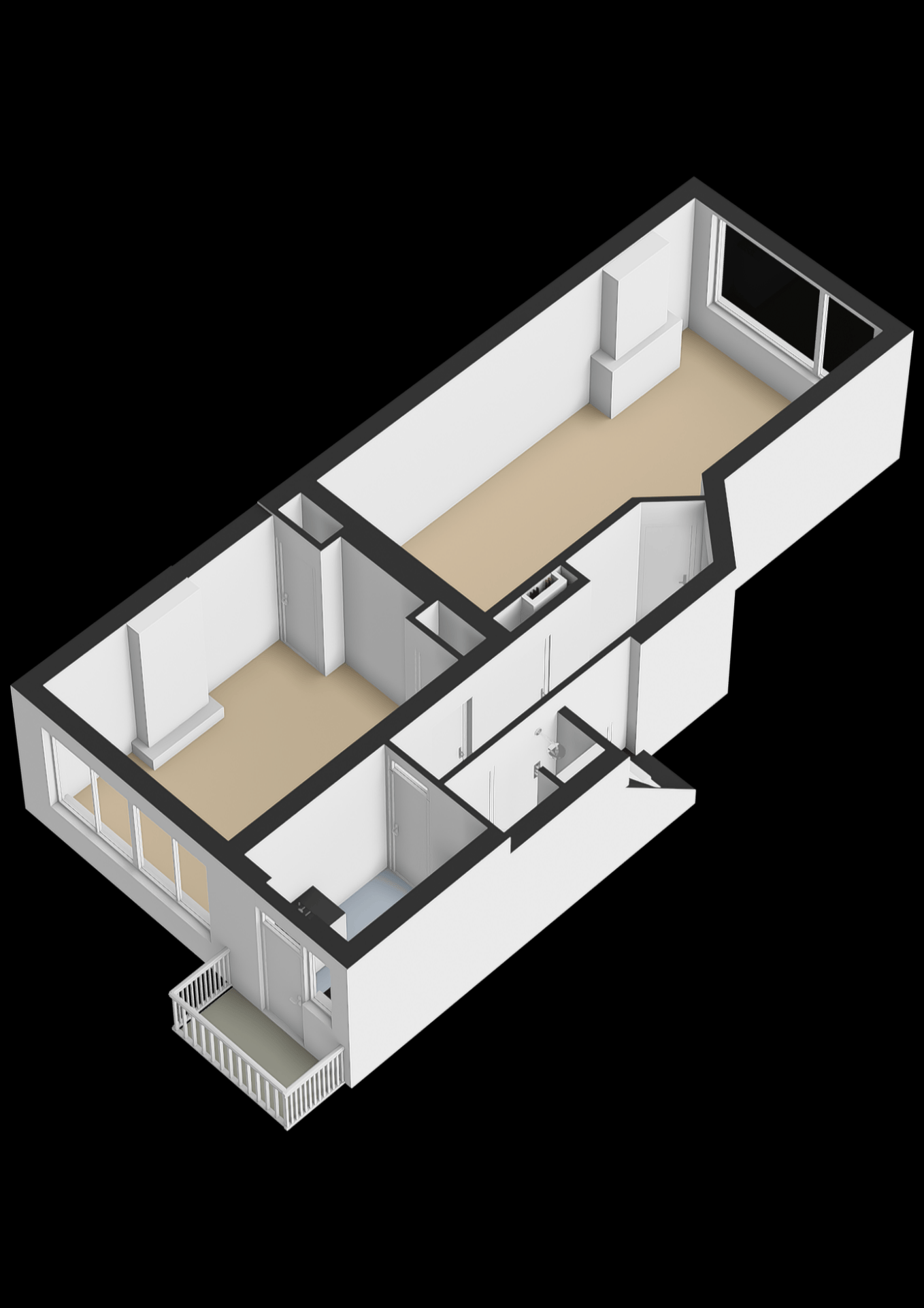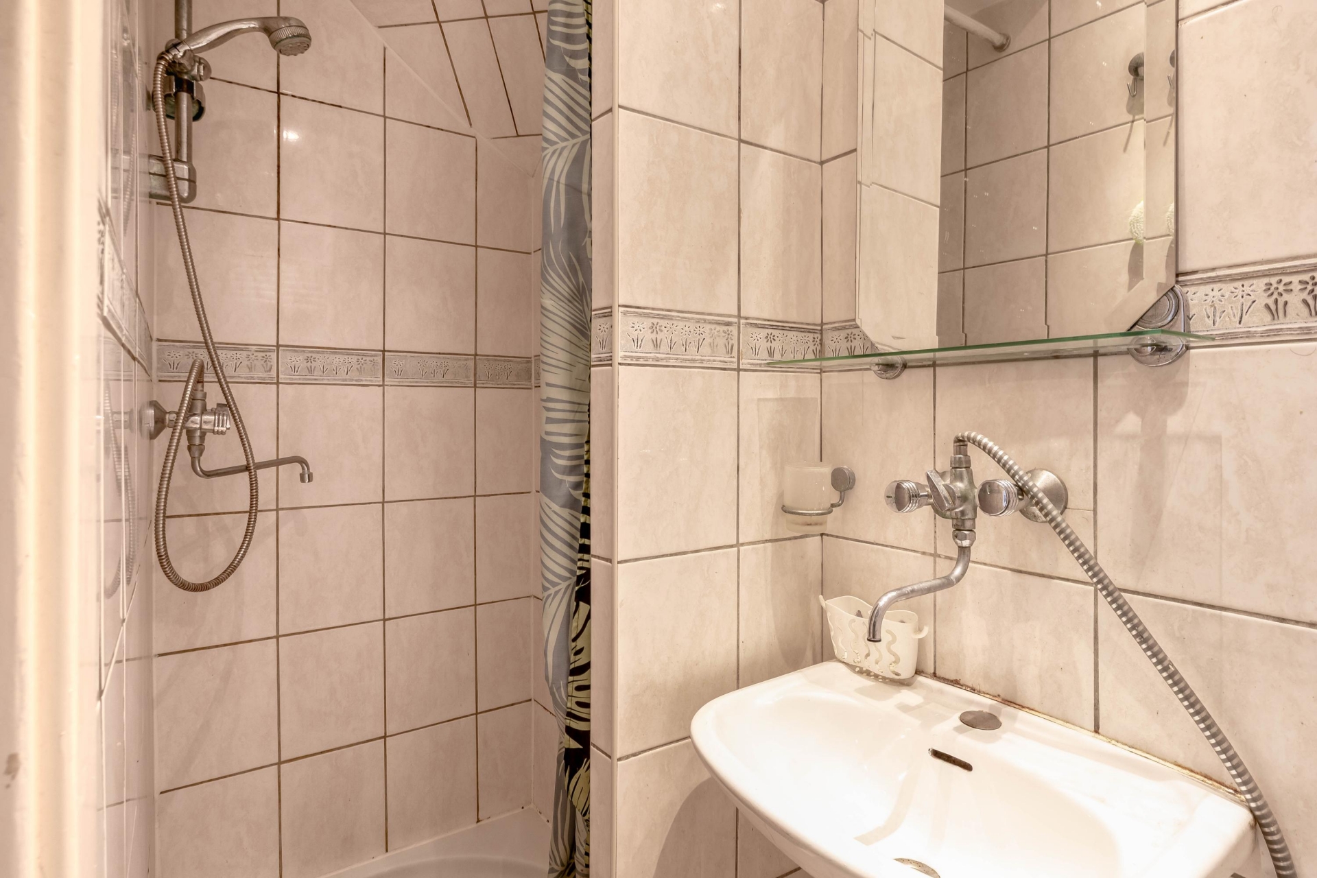De slaapkamer ligt aan de achterzijde van de woning en beschikt over twee vaste opbergkasten en een schouw. De badkamer is geheel betegeld en voorzien van een toilet, douche en wastafel.