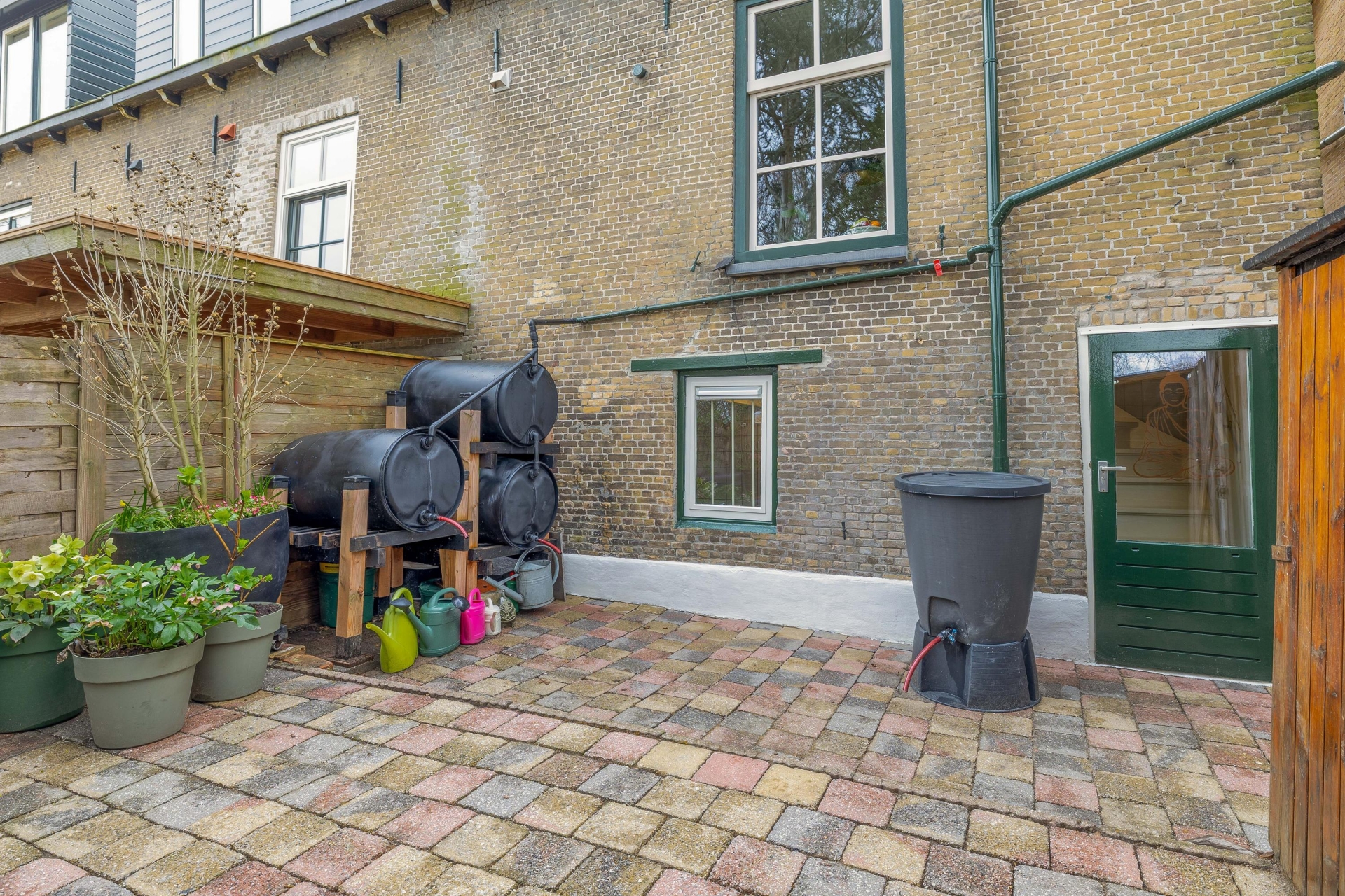 De tuin ligt beschut en biedt volop privacy. De bestrating maakt het onderhoudsvriendelijk, terwijl het groen en de omliggende beplanting zorgen voor een gezellige sfeer.