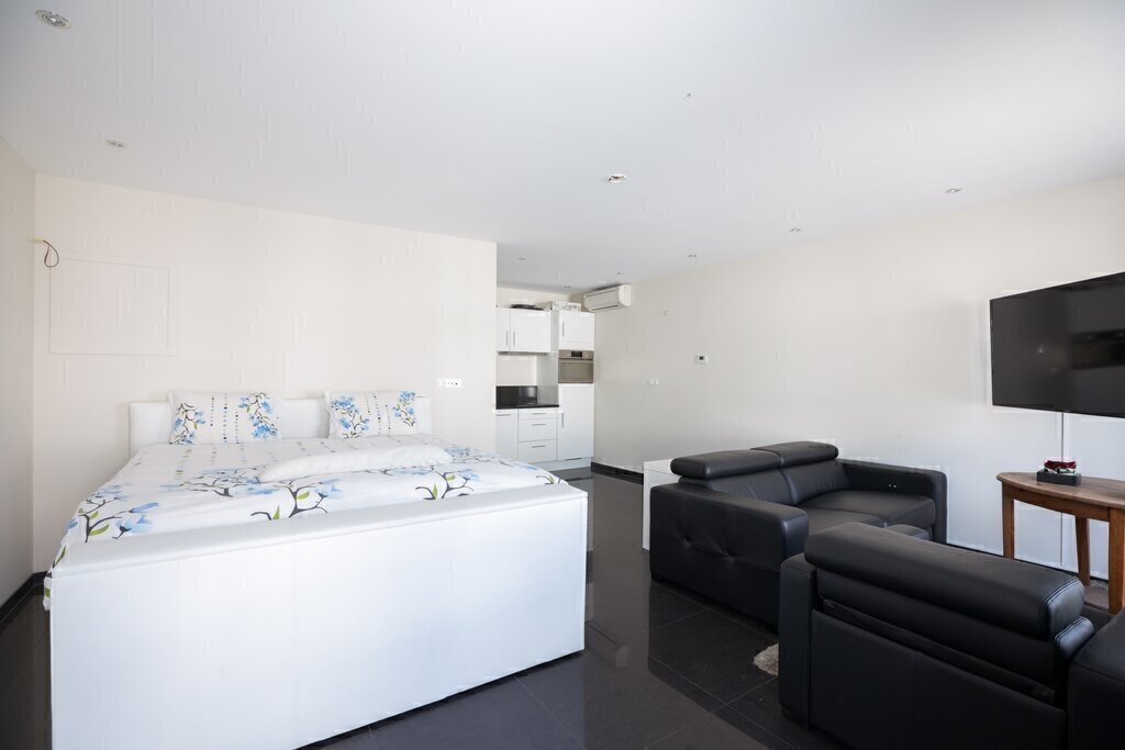 Beide studio's zijn in spiegelbeeld gebouwd en v.v. moderne keuken, luxe badkamer, airco, vloerverwarming, dubbele openslaande deuren (naar patio) en een slaap-/woonkamer. Beide keukens zijn v.v. spoelbak, vaatwassers, koelkast met vriesvak en combimagnetron. Beide badkamers zijn v.v. inloopdouche, dubbele spoelbakken en een hangend toilet.