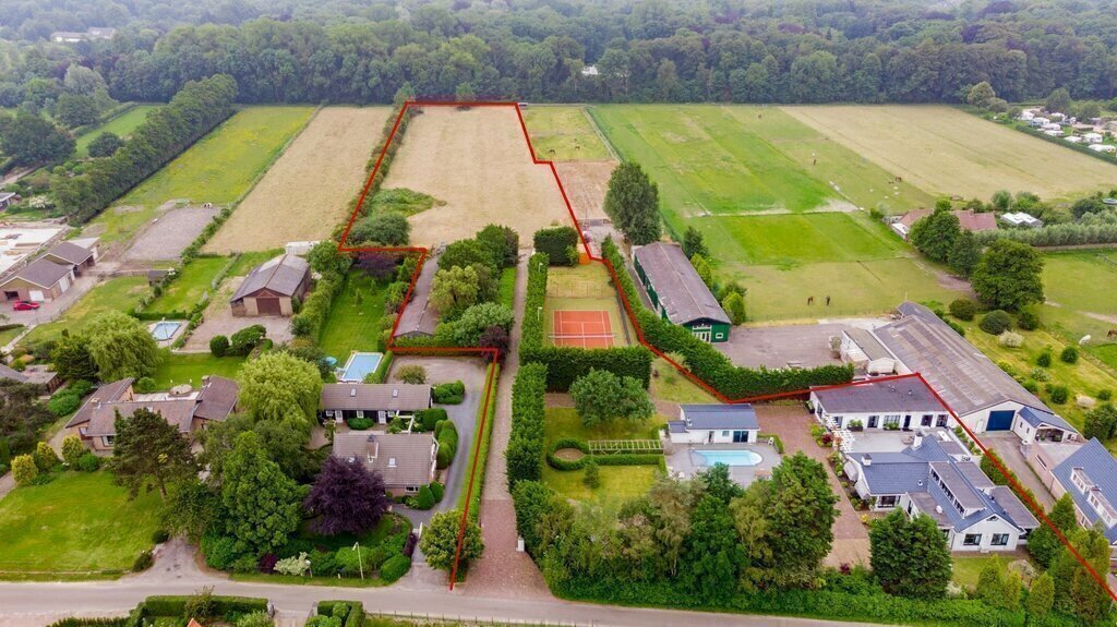 Uitgebouwde en compleet gerenoveerde woonvilla (2012/2013) voorzien van alle comfort en luxe zoals: een luxe open woonkeuken met kookeiland en sfeervolle gashaard, mooi aangelegde tuin met verwarmd zwembad, jacuzzi, zwambadhuis met sauna, bar en douches, buiten bar, 30 zonnepanelen, eigen tennisbaan, weiland, 2 bijgebouwde studio's/appartementen, Engelse kroeg etc. etc.