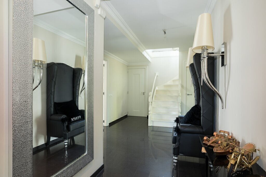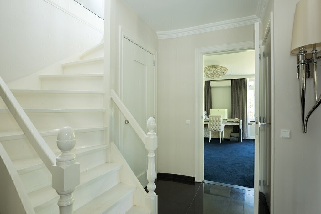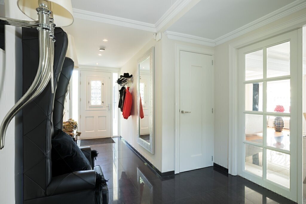 U betreed de woning via de mooie hal met meterkast, alarmkast, luxe toilet, trapopgang, trapkast, slaapkamer met badkamer en inloopkast en toegang tot de woonkeuken en woonkamer.