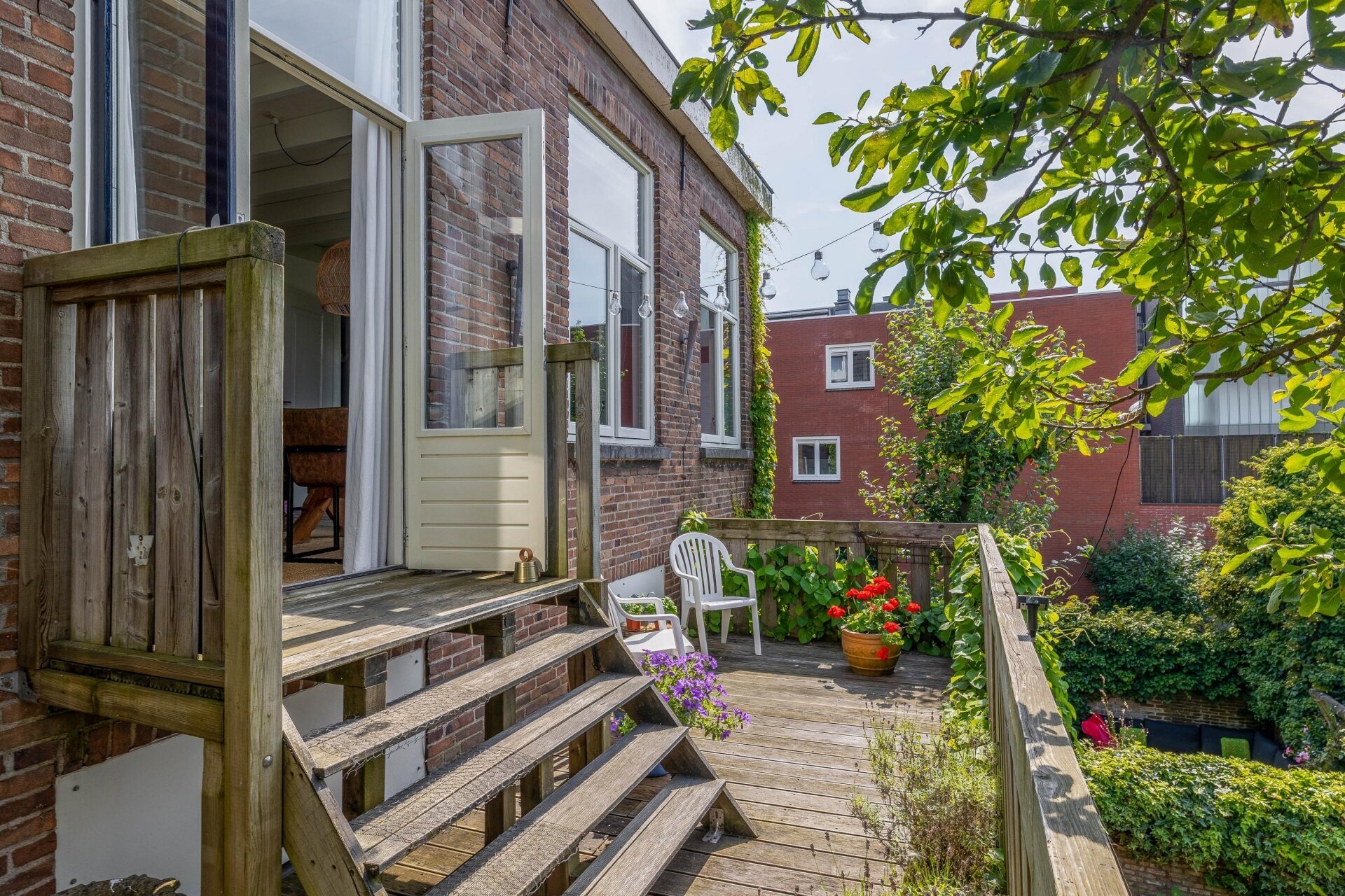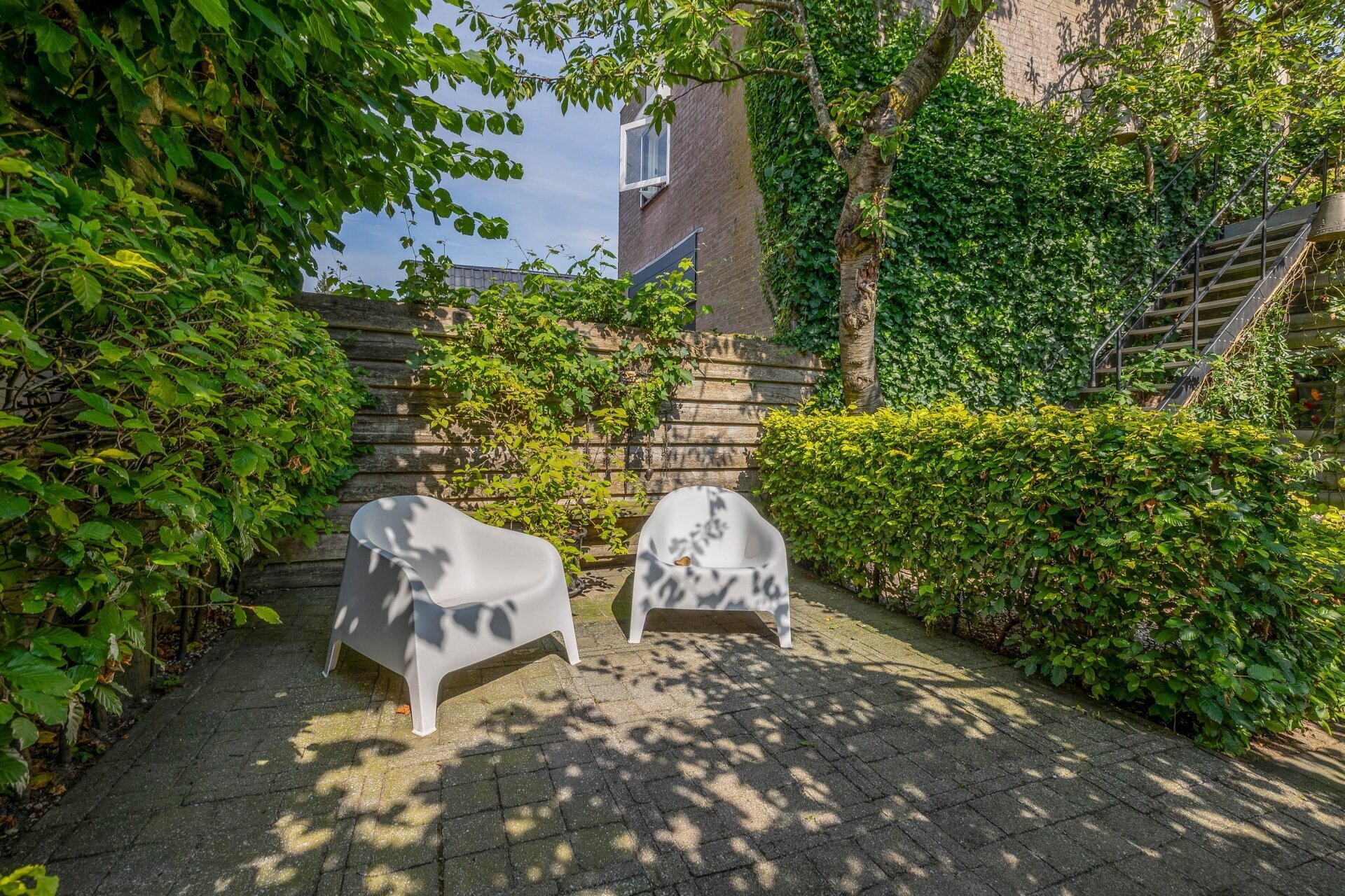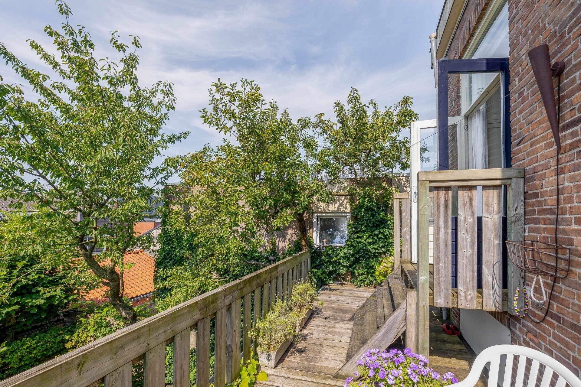 De gezellige en beschutte achtertuin op het noordwesten is netjes aangelegd en biedt voldoende ruimte voor het hele gezin. Er kan een knusse zithoek worden gecreëerd onder het balkon, terwijl er ook ruimte is voor de tuinliefhebber om te hobbyen. Het balkon biedt ook een heerlijke plek om na het eten in de keuken te genieten van de avondzon. Via een afgesloten zijportaal is de straat gemakkelijk te bereiken vanuit de tuin, waar ook ruimte is om spullen op te bergen of fietsen te stallen.