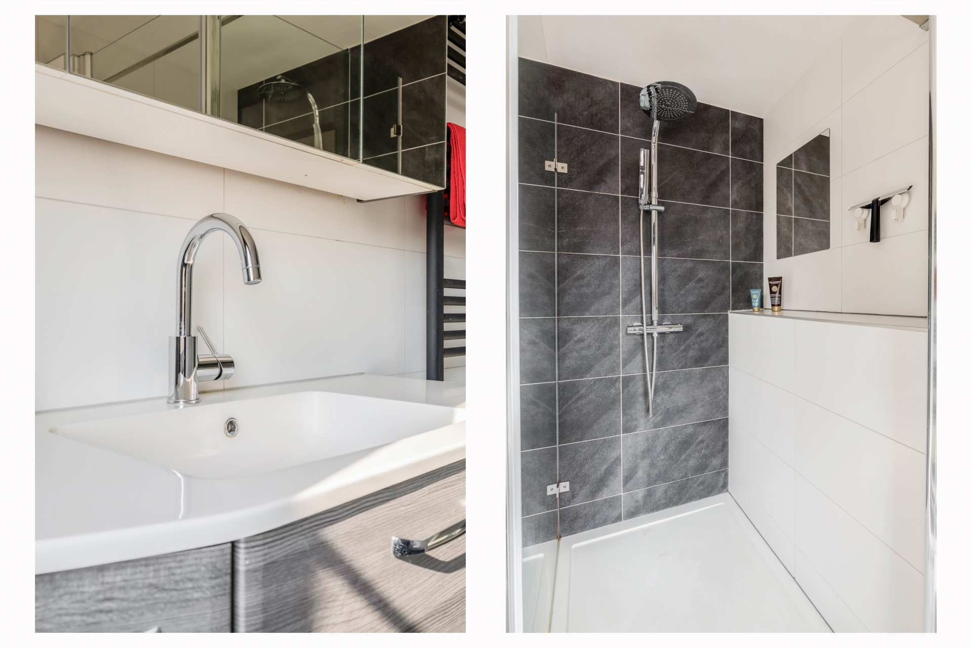 nog twee extra slaapkamers die bijvoorbeeld gebruikt kunnen worden als kinderkamer, logeerkamer of thuiskantoor. De badkamer is in 2018 vernieuwd en heeft een nette en moderne uitstraling. De ruimte is voorzien van een douche, wastafelmeubel en een toilet. Dankzij het aanwezige raam kan de badkamer goed worden geventileerd en komt er
