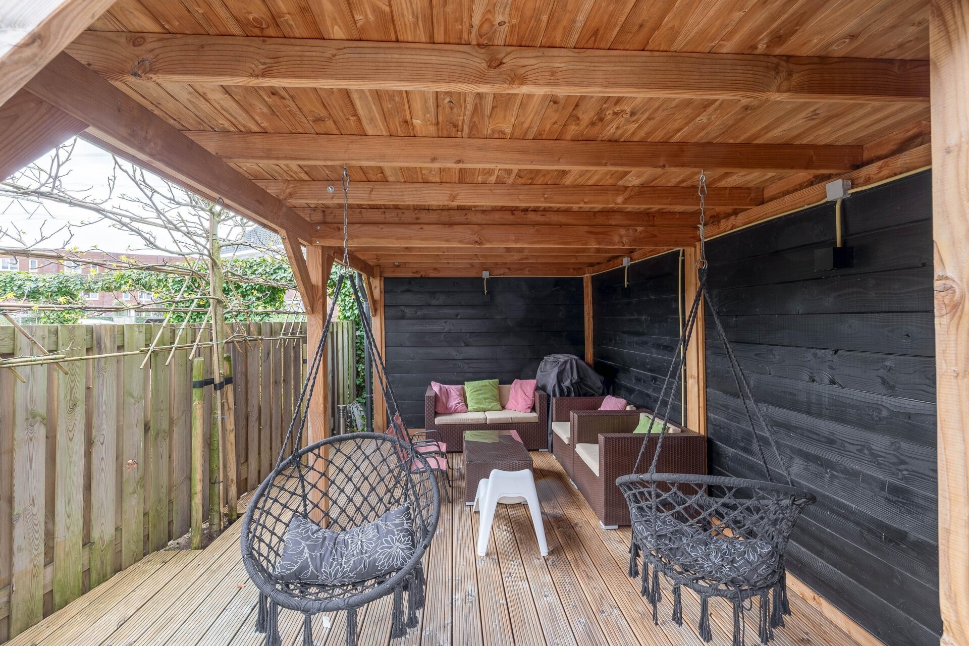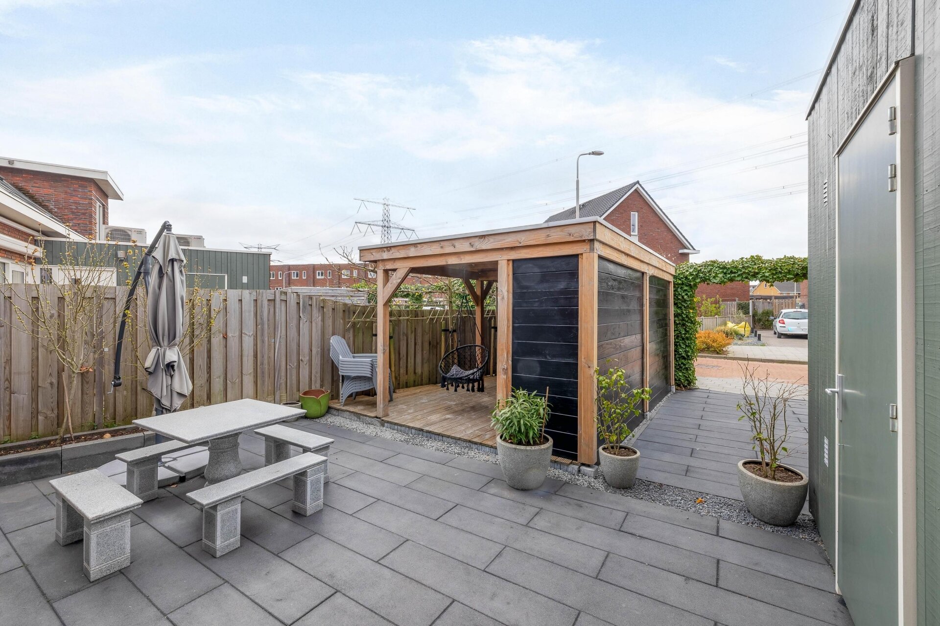 De fraai aangelegde tuin op het zonnige zuiden, inclusief een sfeervolle overkapping, is de ideale plek om te ontspannen of gezellig te borrelen met vrienden en familie.