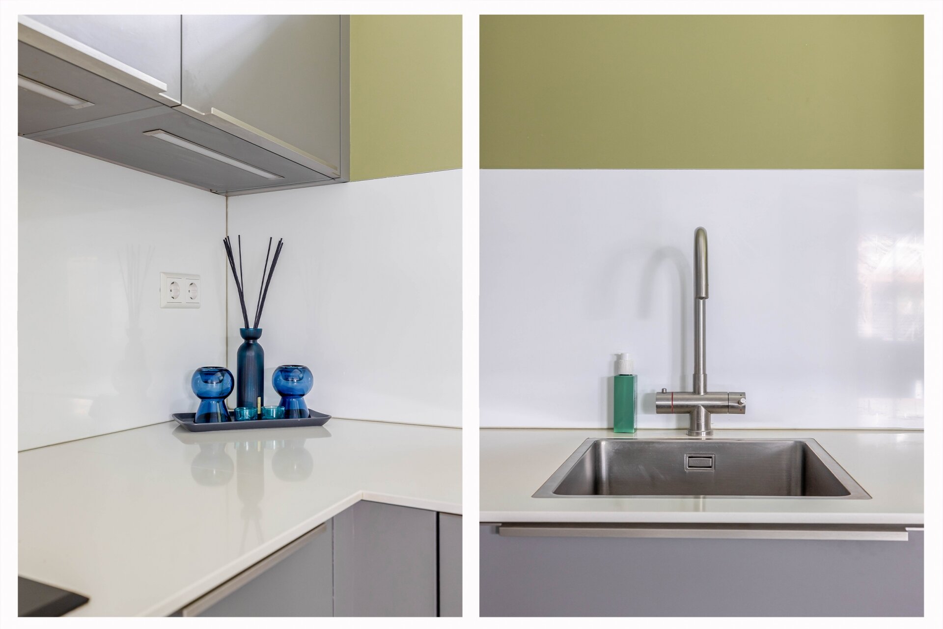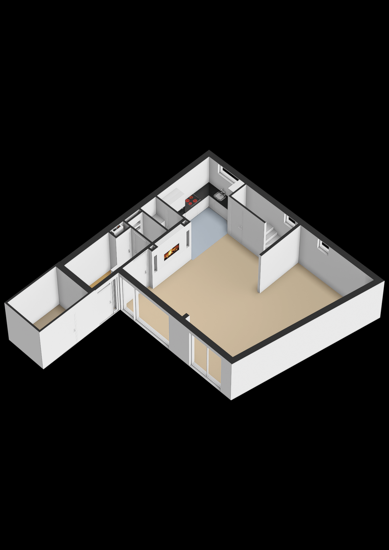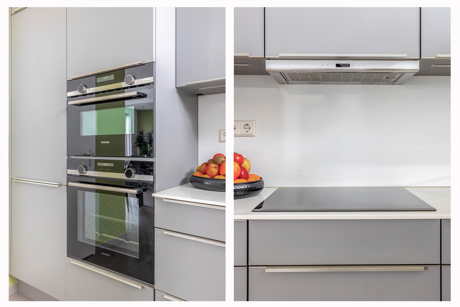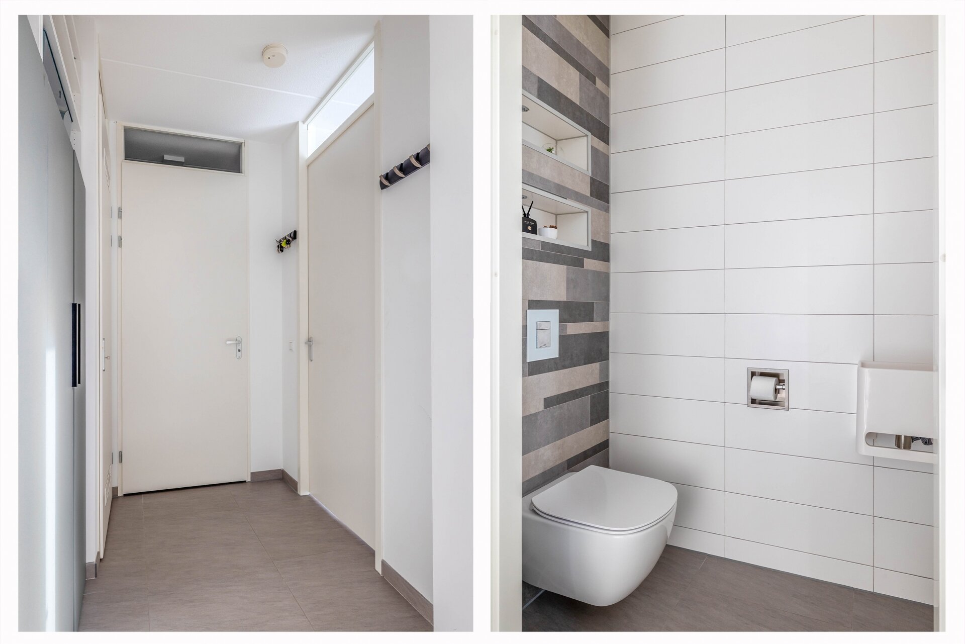 Op de begane grond word je verwelkomd in een lichte en open leefruimte, waar de keuken en woonkamer naadloos in elkaar overlopen. De open keuken is eigentijds en praktisch ingedeeld, met voldoende werkruimte en zicht op de woonkamer, waardoor koken en samenzijn perfect samengaan. De woonkamer biedt volop ruimte voor een gezellige zithoek én een ruime eettafel. De vloer is volledig betegeld en de muren zijn strak gestuct. In de hal vind je het toilet, volledig betegeld en voorzien van een hangend toilet.
