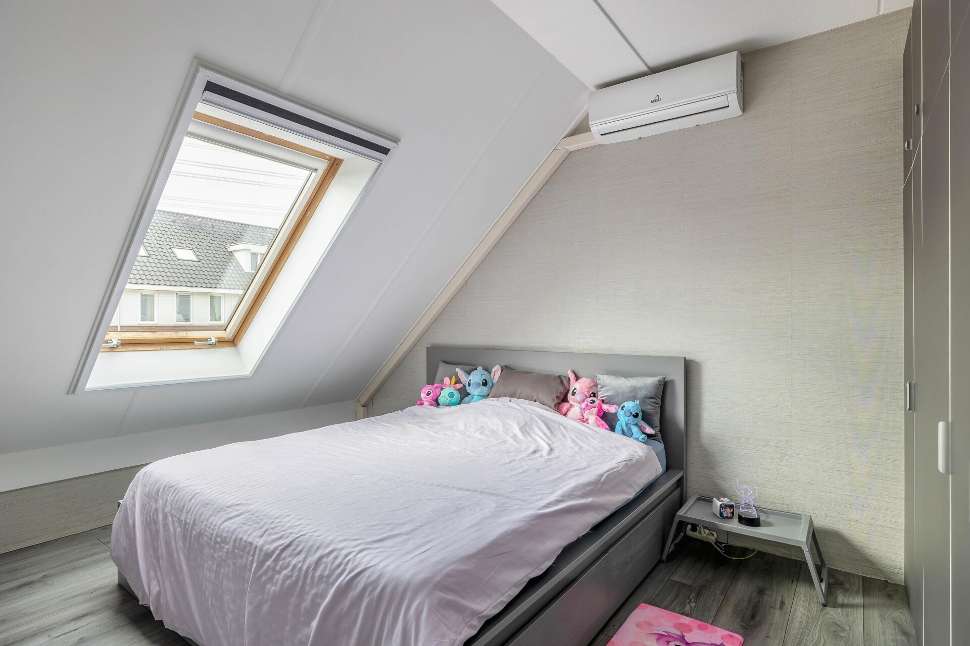 De tweede verdieping is net zo indrukwekkend. Hier bevindt zich een royale vierde slaapkamer, eveneens voorzien van een laminaatvloer en airco. Daarnaast is er voldoende ruimte voor het plaatsen van een bureau/sportapparatuur. Dankzij de afmetingen en de nette afwerking is ook deze verdieping volledig in lijn met de rest van het huis.