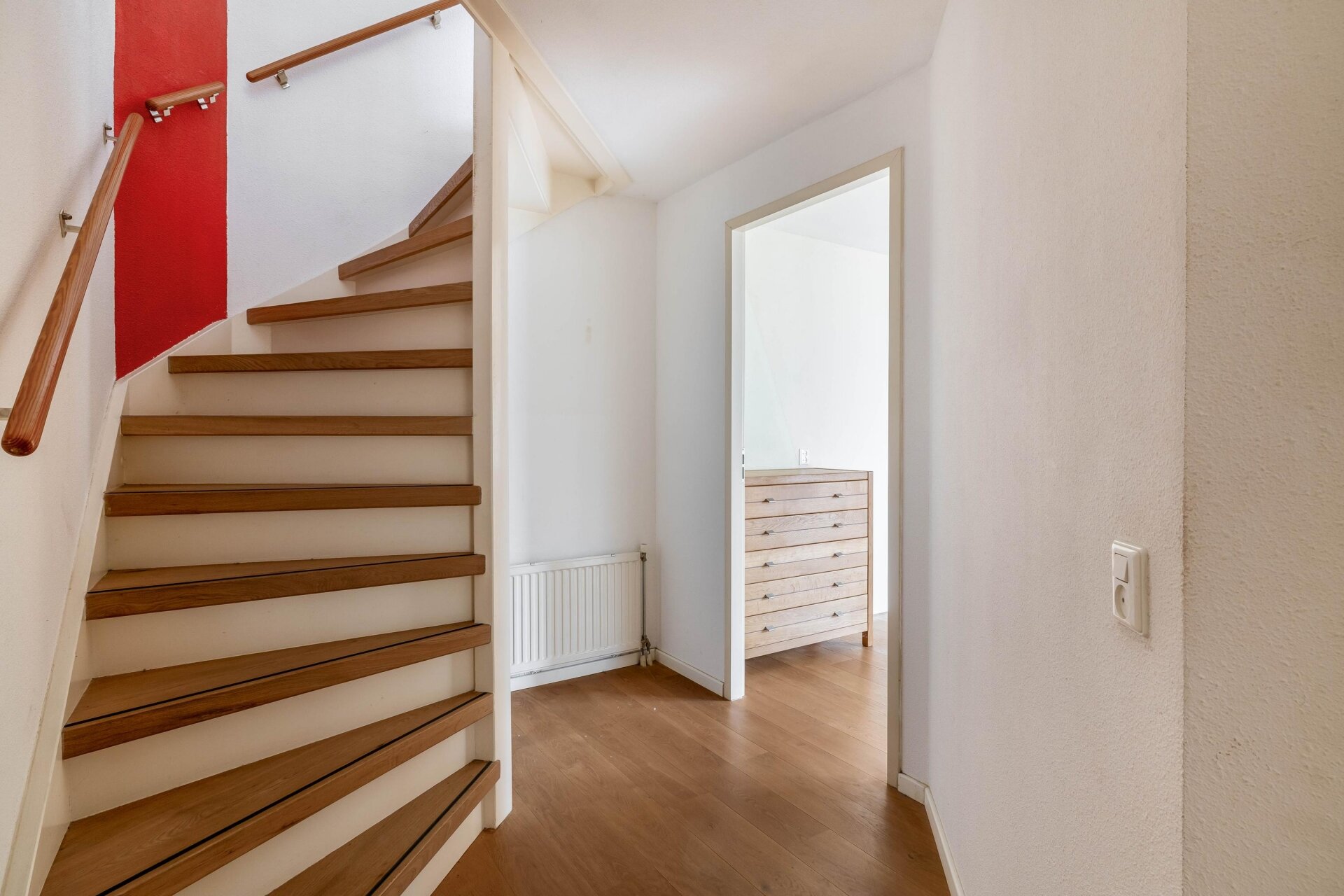Middels een vaste trap is de eerste verdieping te betreden. Hier zijn nog 2 ruime slaapkamers (voorzien van een laminaatvloer) en de 2e badkamer te vinden. De badkamer is volledig betegeld en beschikt over een douchecabine, wastafel en een toilet. Vanuit de badkamer is er een berging toegankelijk. Hier bevindt zich de cv-ketel (2024) en de aansluiting voor de wasmachine en droger.