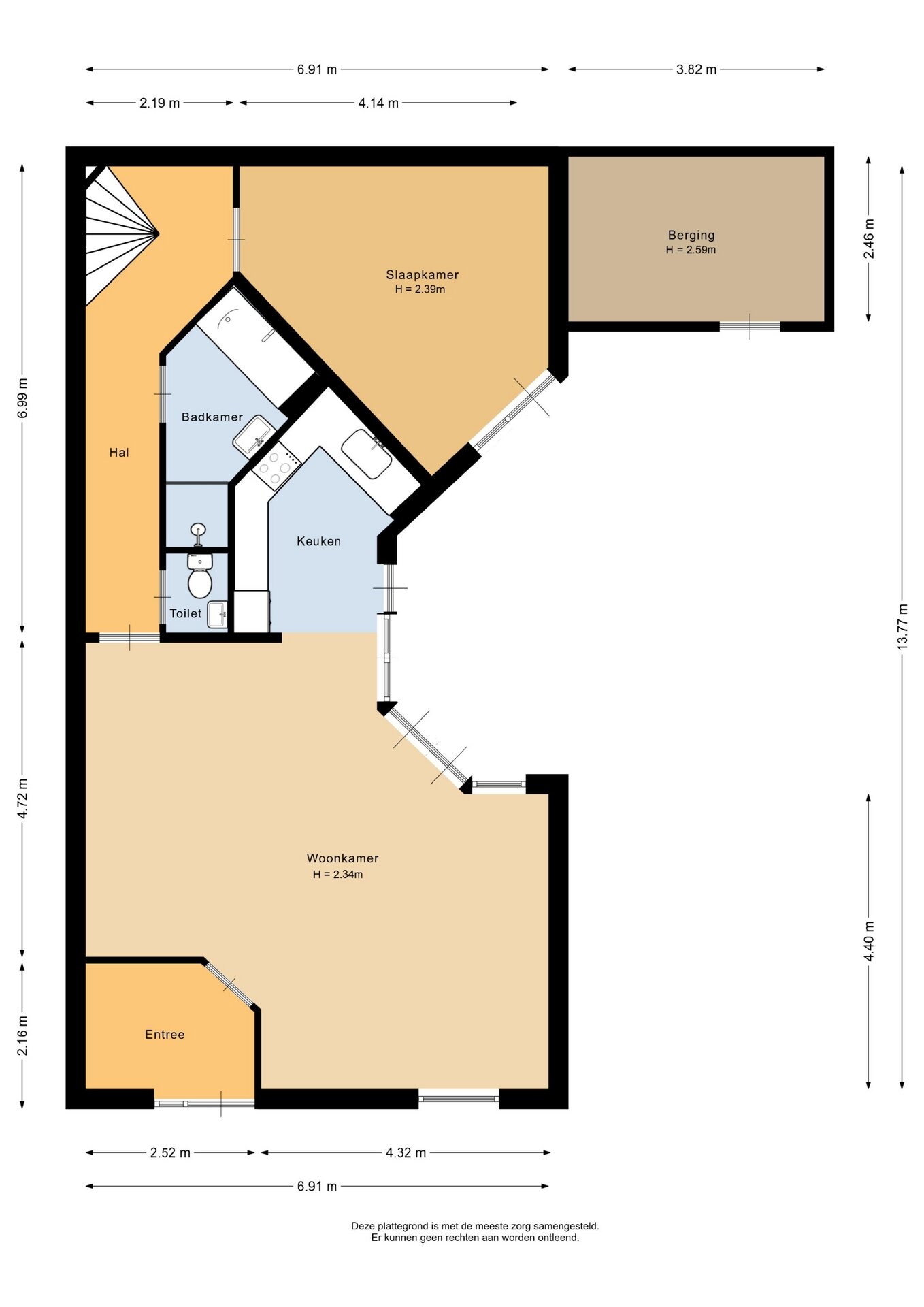 “Deze informatie is door ons met de nodige zorgvuldigheid samengesteld. Onzerzijds wordt echter geen enkele aansprakelijkheid aanvaard voor enige onvolledigheid, onjuistheid of anderszins, dan wel de gevolgen daarvan. Alle opgegeven maten en oppervlakten zijn indicatief.”