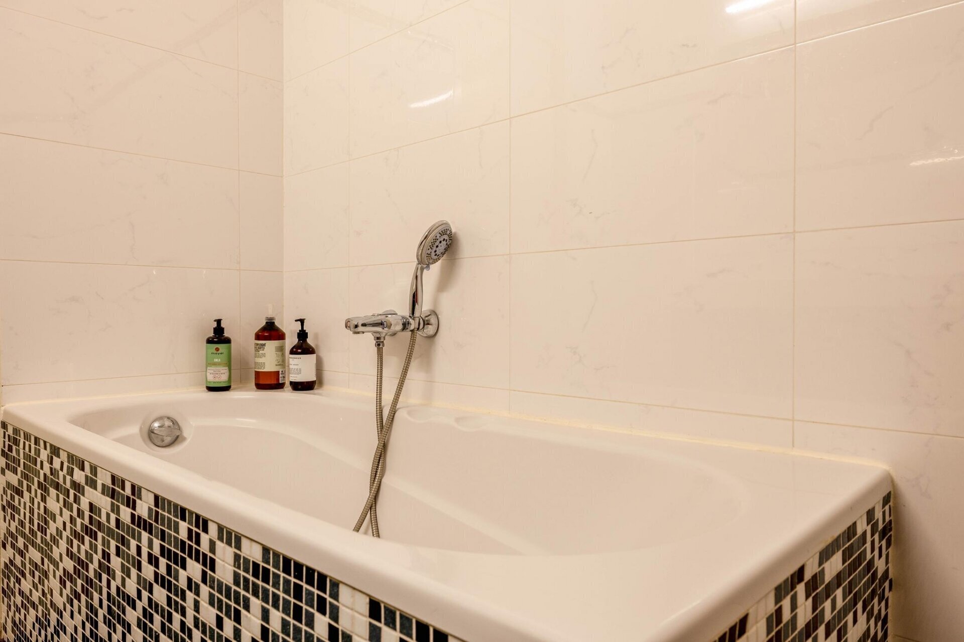 • Hoofdbadkamer: Onlangs gerenoveerd met een ligbad, aparte inloopdouche, dubbele wastafel en een grote spiegel.