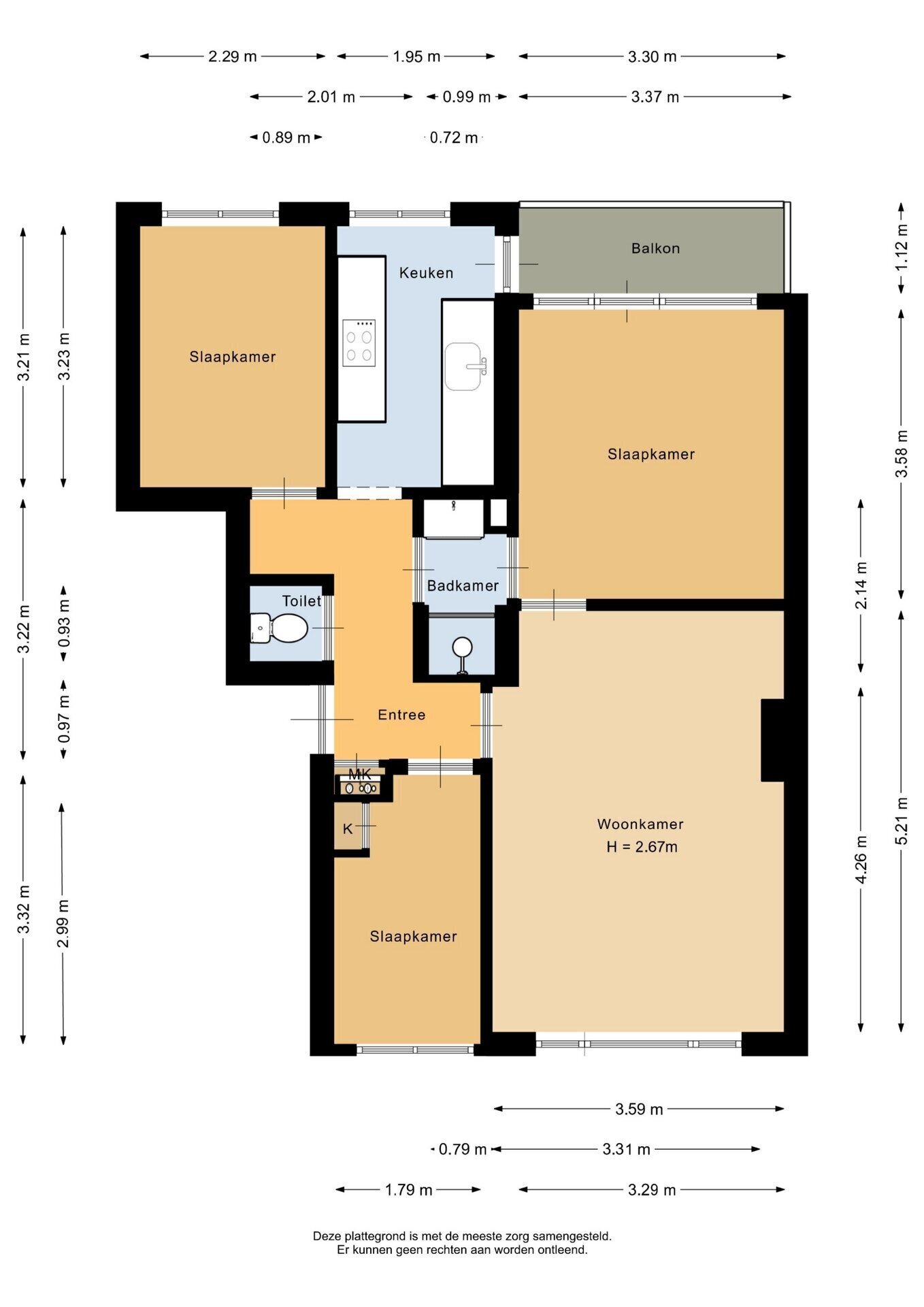 “Deze informatie is door ons met de nodige zorgvuldigheid samengesteld. Onzerzijds wordt echter geen enkele aansprakelijkheid aanvaard voor enige onvolledigheid, onjuistheid of anderszins, dan wel de gevolgen daarvan. Alle opgegeven maten en oppervlakten zijn indicatief.”