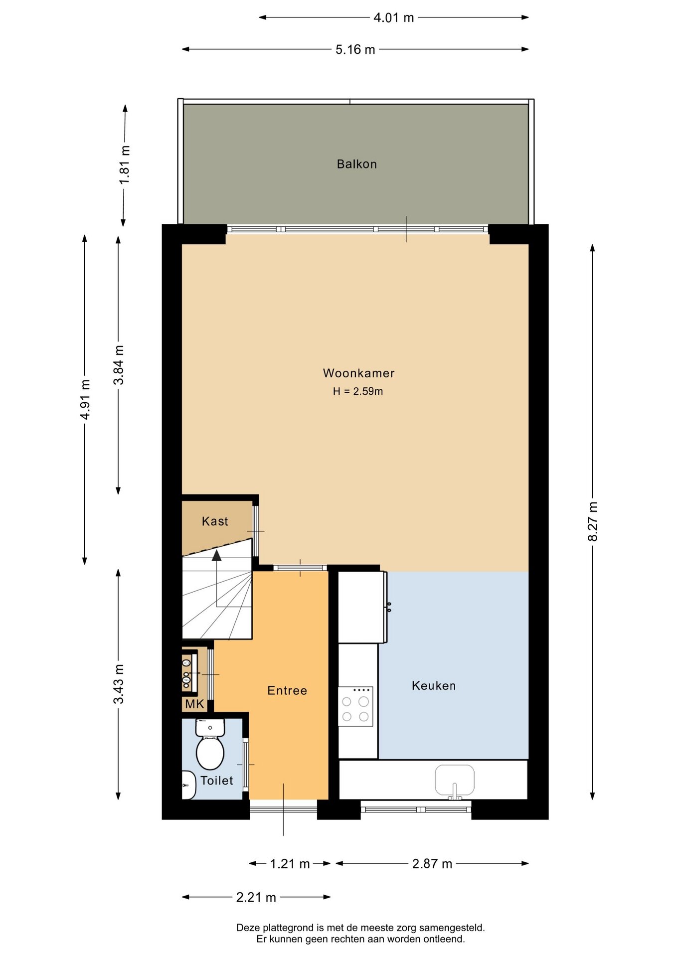 “Deze informatie is door ons met de nodige zorgvuldigheid samengesteld. Onzerzijds wordt echter geen enkele aansprakelijkheid aanvaard voor enige onvolledigheid, onjuistheid of anderszins, dan wel de gevolgen daarvan. Alle opgegeven maten en oppervlakten zijn indicatief.”
