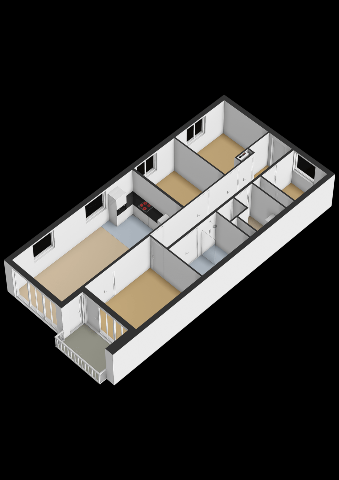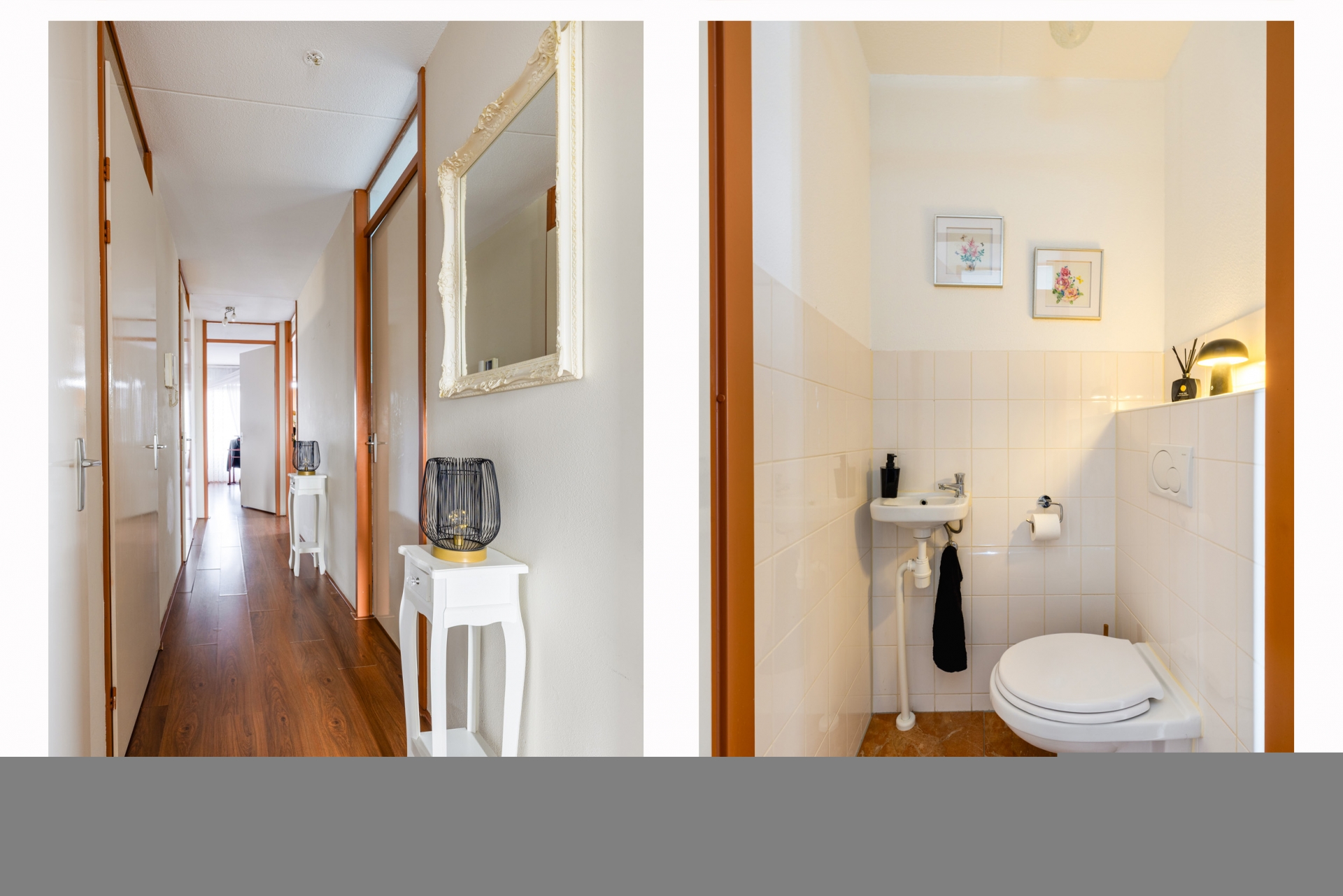 De indeling is praktisch en overzichtelijk, met een duidelijke scheiding tussen wonen en slapen. Dankzij de grote raampartijen komt er veel daglicht binnen, wat het appartement een lichte en aangename sfeer geeft. Dit is zo’n plek waar je je snel thuis voelt.