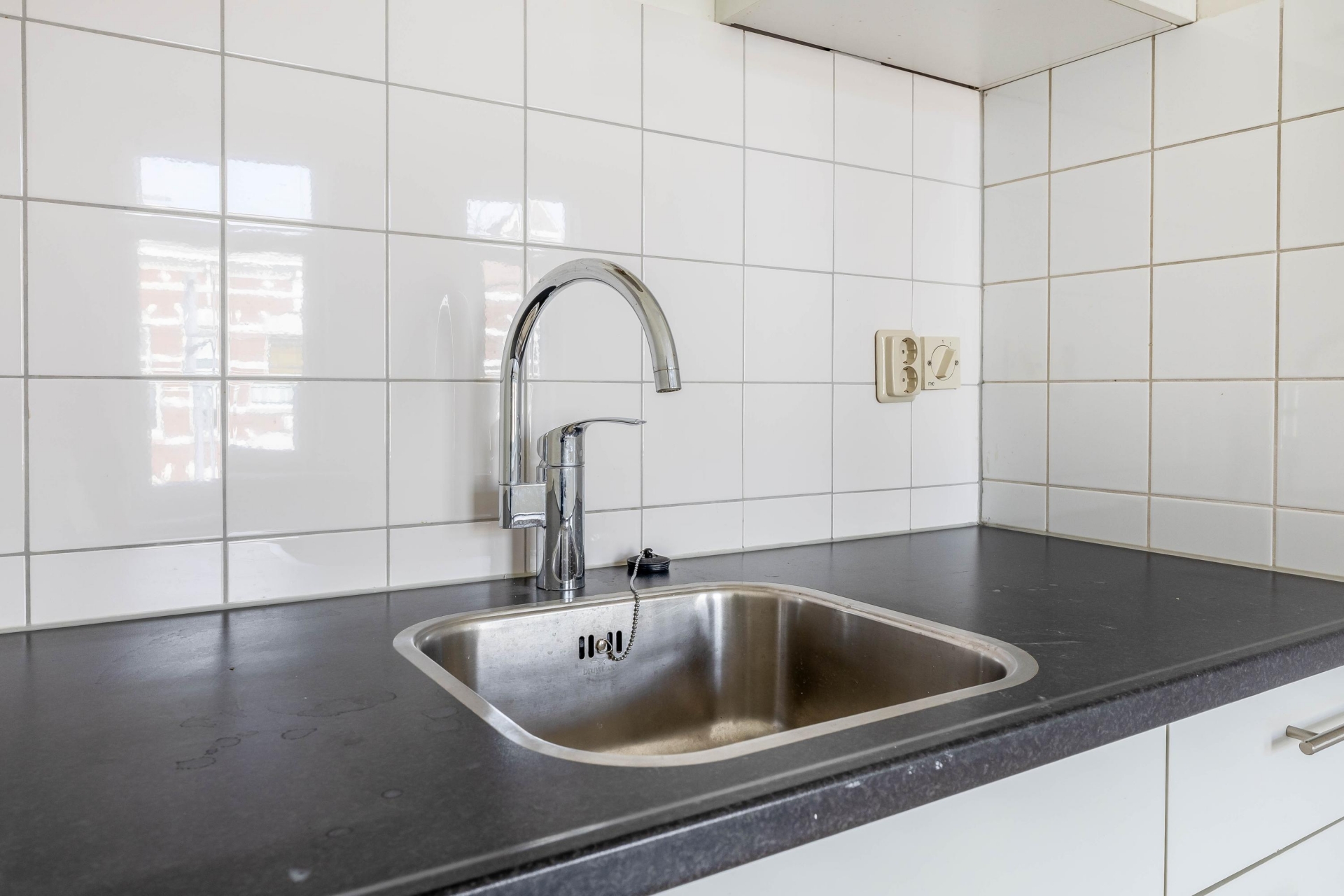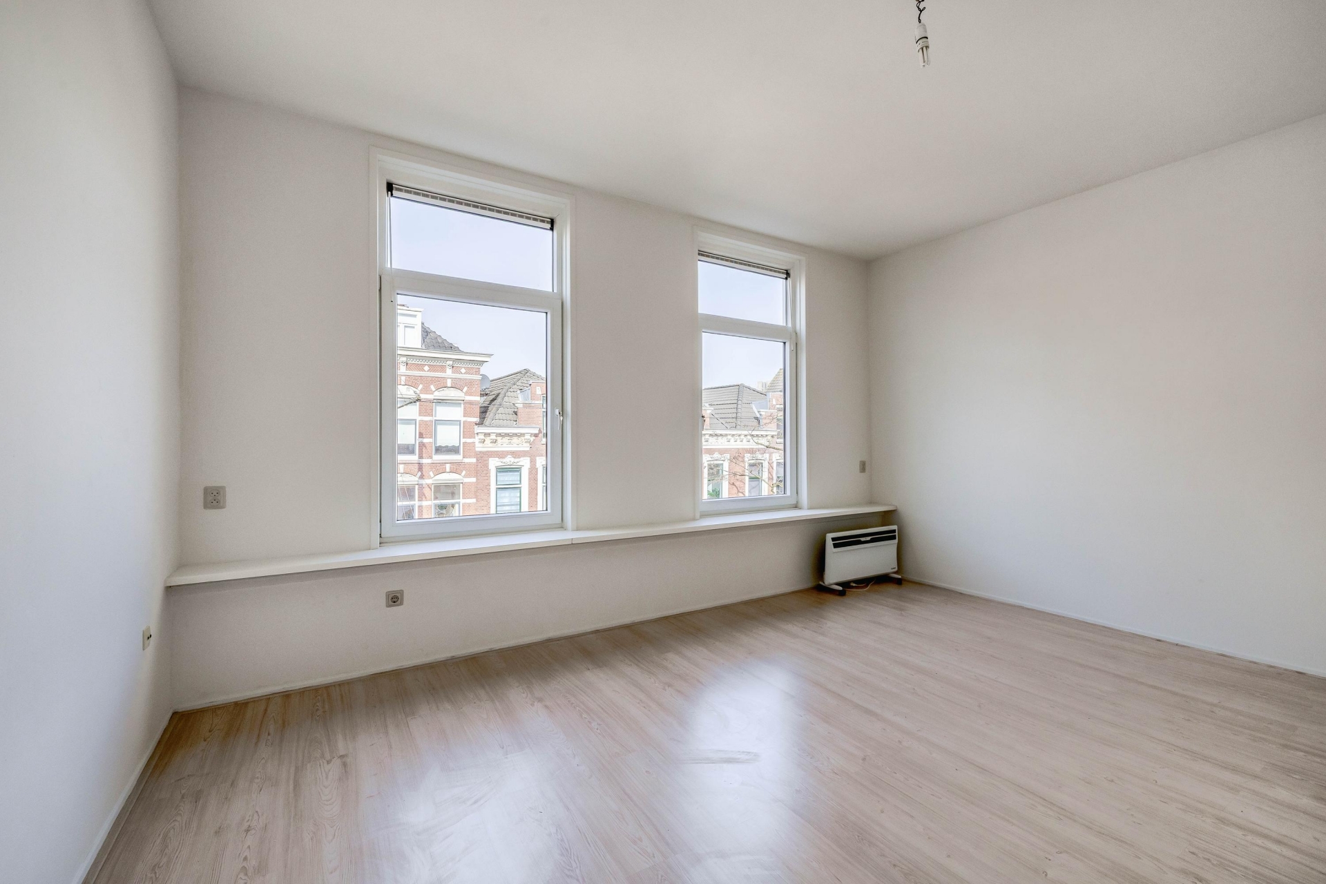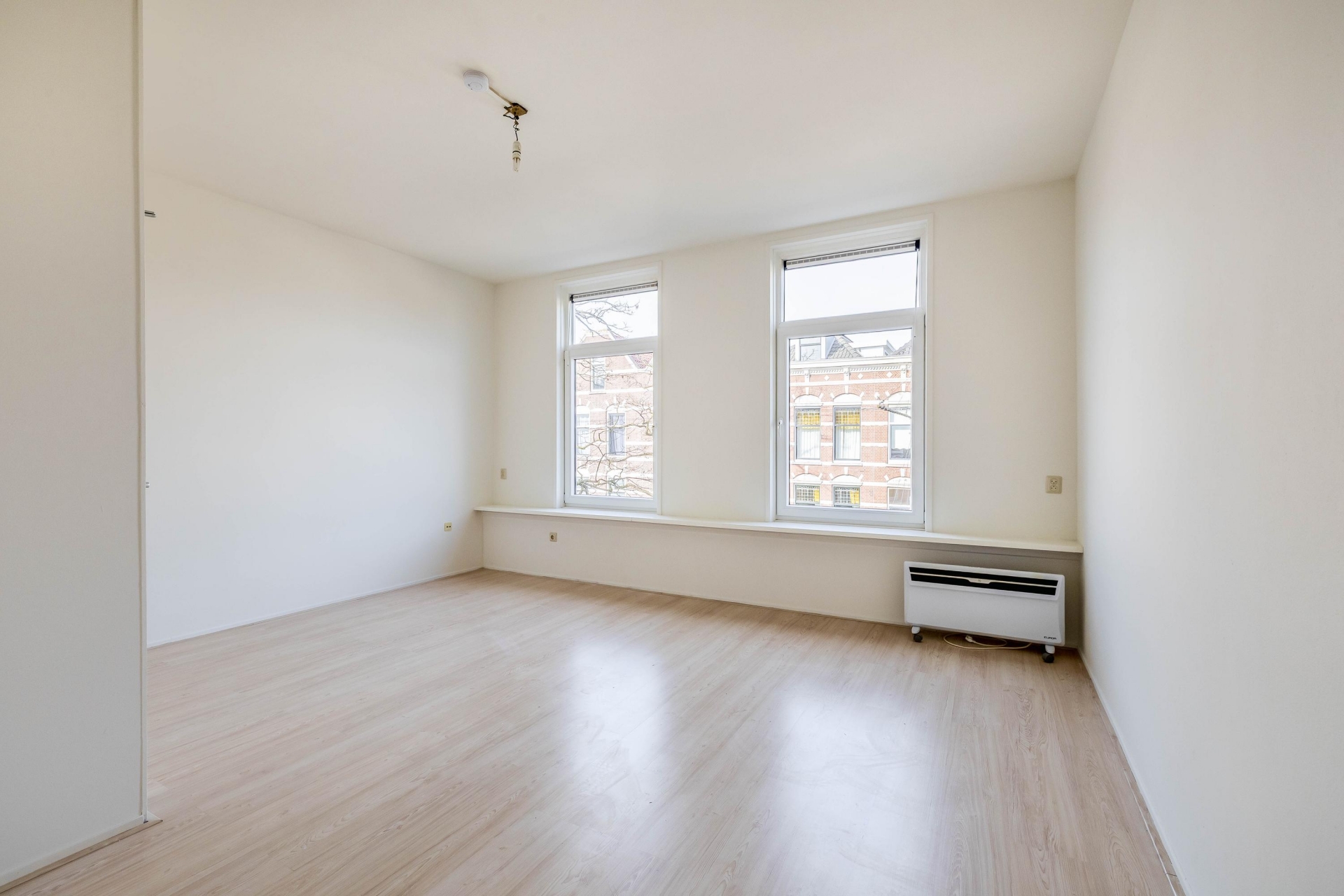 De woon-/slaapruimte is praktisch ingedeeld en voelt dankzij de open opzet prettig en overzichtelijk aan. De grote raampartij zorgt voor veel daglicht en maakt het een fijne plek om thuis te komen na een dag in de stad.