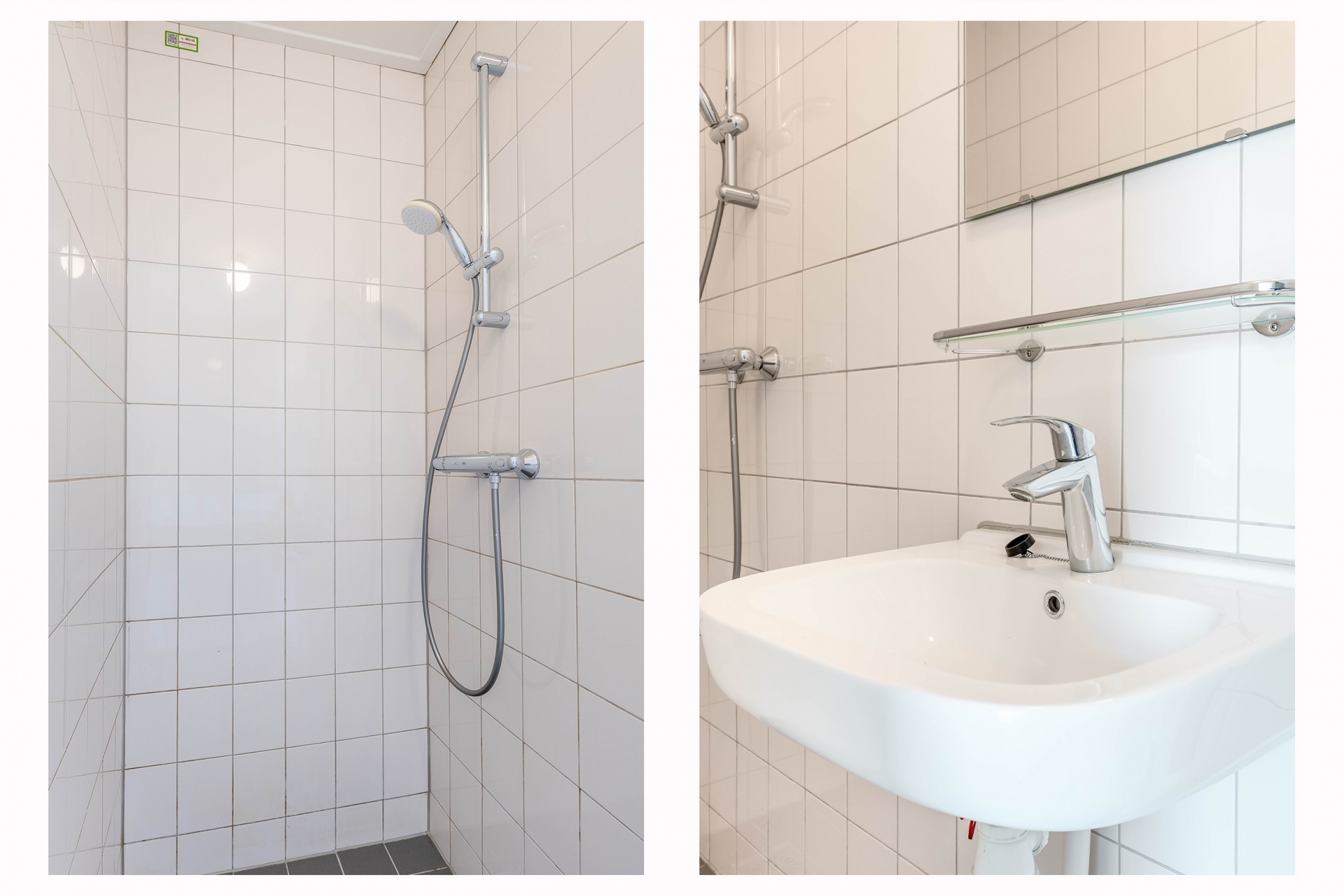 De badkamer is compact maar functioneel ingericht en beschikt over de benodigde voorzieningen.