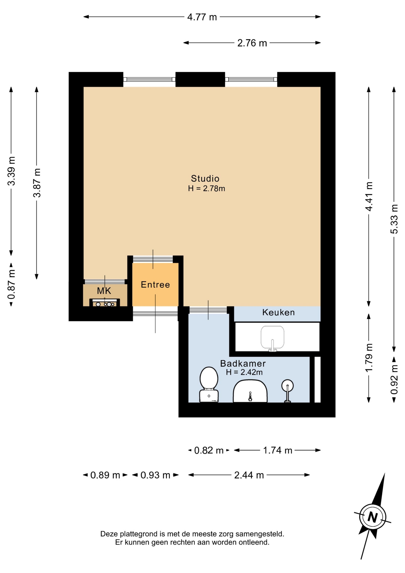 “Deze informatie is door ons met de nodige zorgvuldigheid samengesteld. Onzerzijds wordt echter geen enkele aansprakelijkheid aanvaard voor enige onvolledigheid, onjuistheid of anderszins, dan wel de gevolgen daarvan. Alle opgegeven maten en oppervlakten zijn indicatief.”