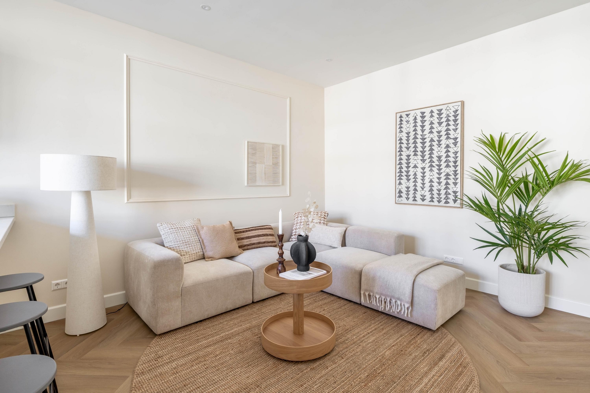 De hal verbindt alle ruimtes op een rustige en praktische manier.