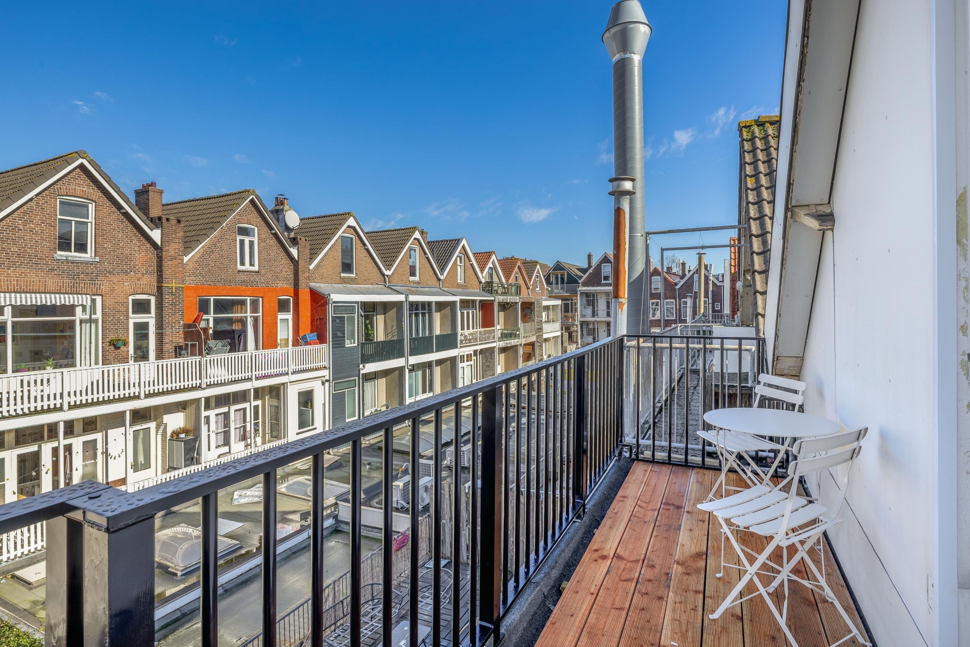 Het balkon aan de achterzijde vormt een waardevolle toevoeging aan het wooncomfort. Een prettige buitenruimte midden in de stad, ideaal voor een kop koffie in de ochtend of een ontspannen moment na een werkdag.