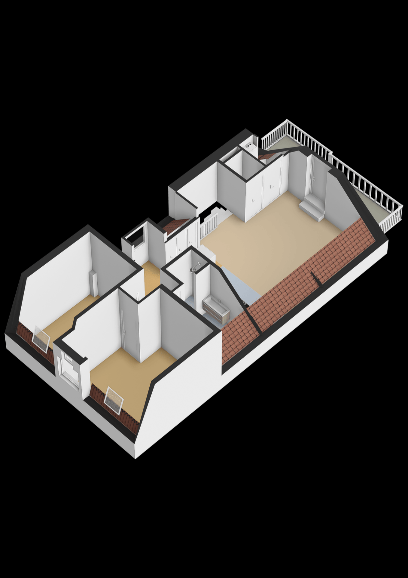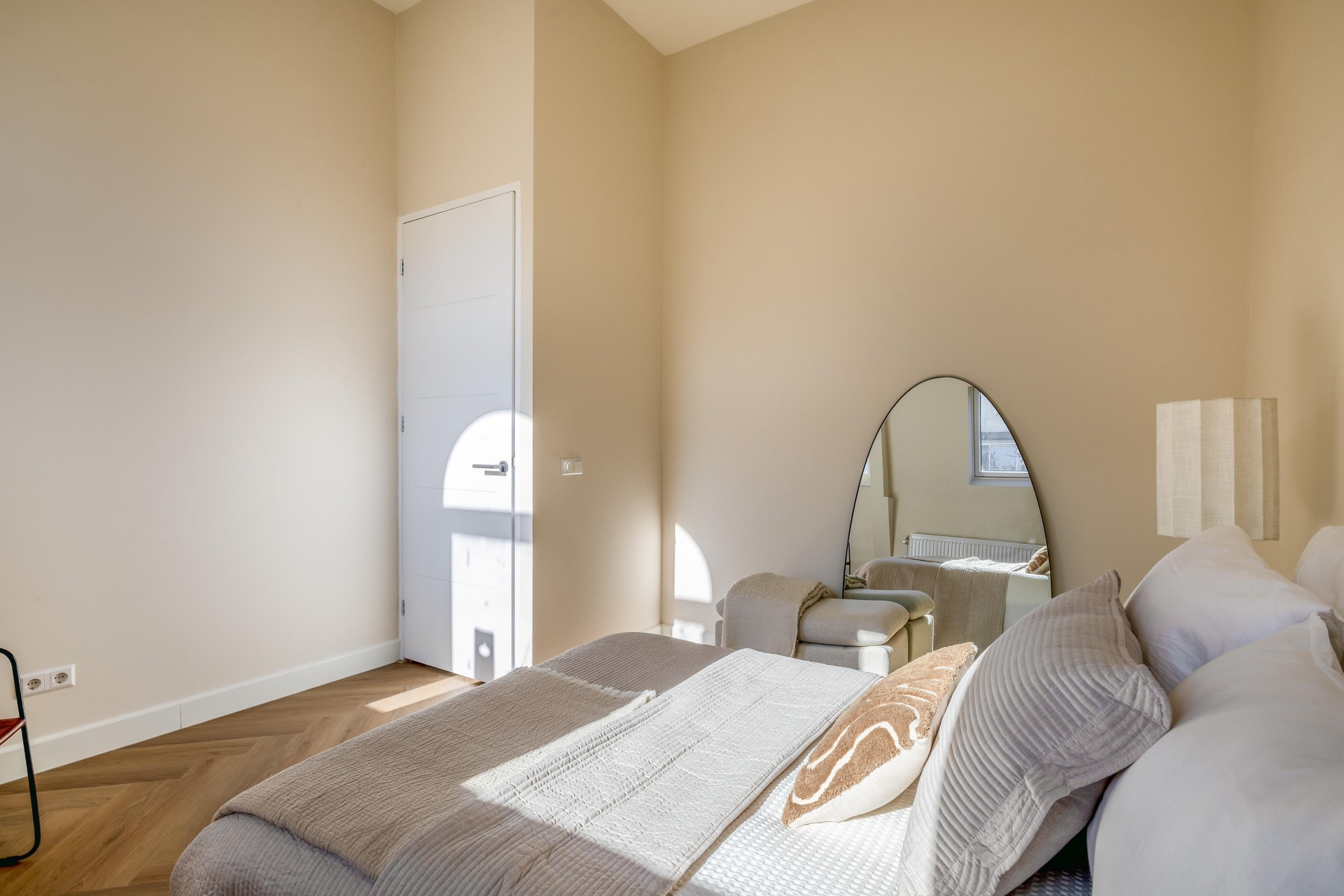 Aan de voorzijde twee slaapkamers gesitueerd. Deze zijn flexibel in te richten als hoofdslaapkamer, werkkamer of kinderkamer.