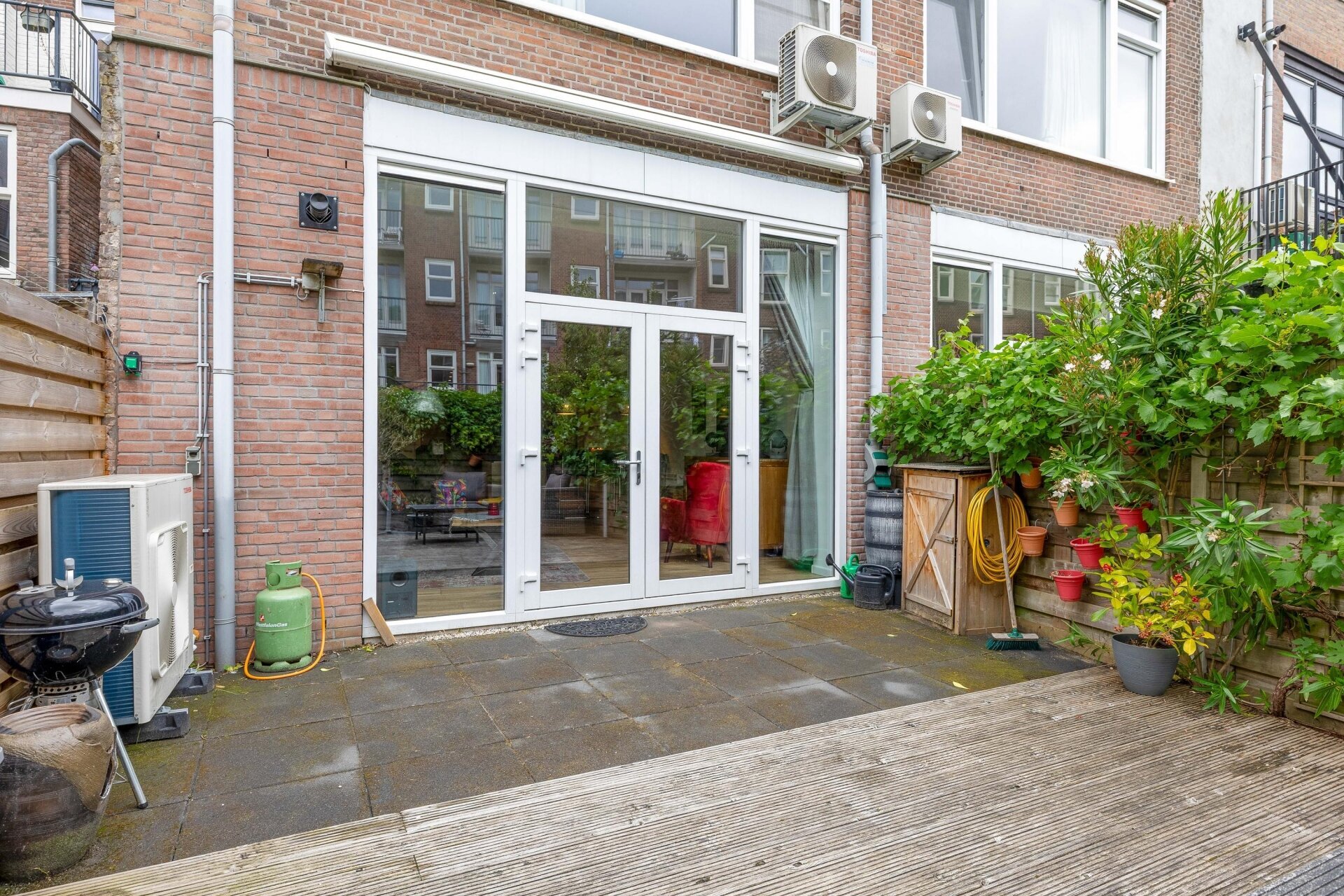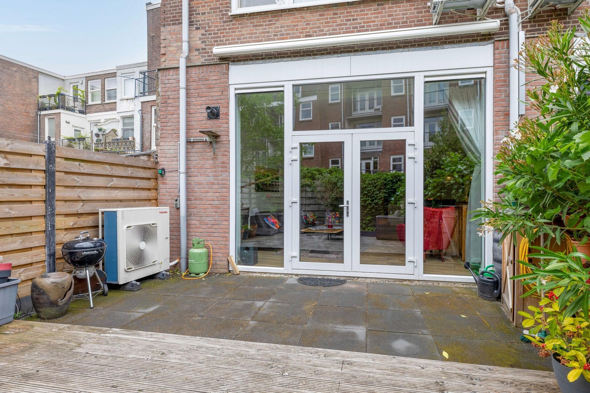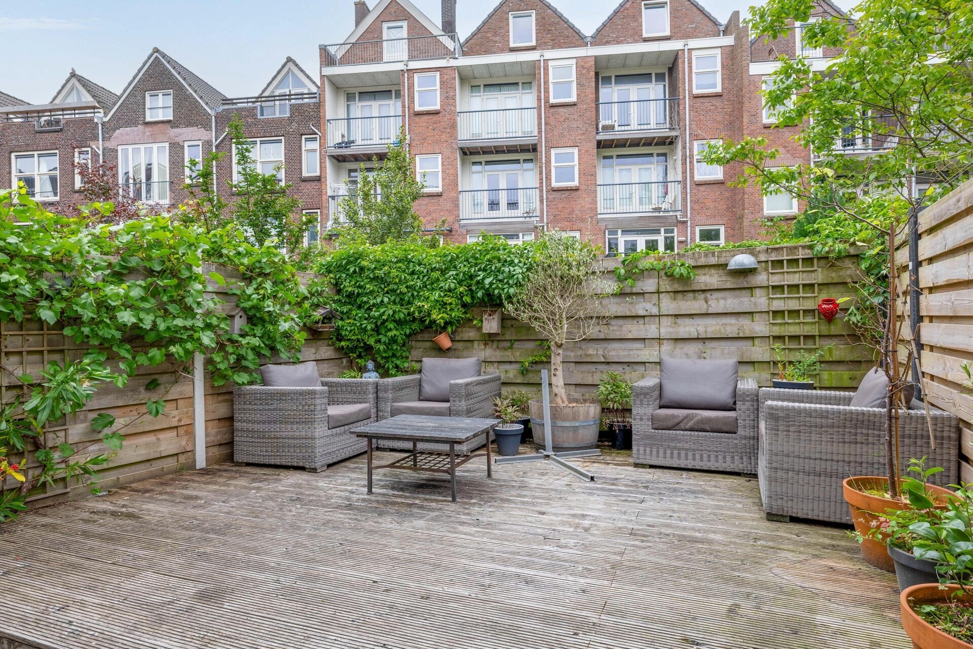 De tuin aan de achterzijde is een heerlijke plek om tot rust te komen. Dankzij de ligging op het zuidoosten kun je hier van de ochtend tot de namiddag volop van de zon genieten. De houten vlonders en het vele groen zorgen voor een ontspannen sfeer. Zet een loungeset neer, steek de barbecue aan en je hebt je eigen stads-oase binnen handbereik. En dat midden in Rotterdam!