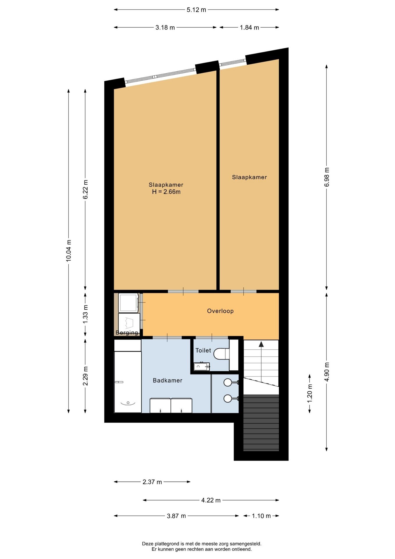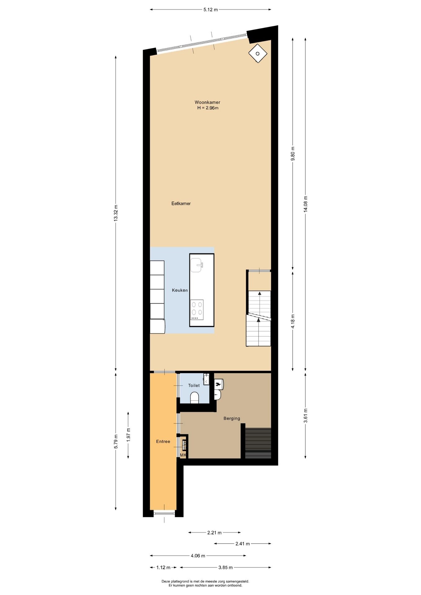 “Deze informatie is door ons met de nodige zorgvuldigheid samengesteld. Onzerzijds wordt echter geen enkele aansprakelijkheid aanvaard voor enige onvolledigheid, onjuistheid of anderszins, dan wel de gevolgen daarvan. Alle opgegeven maten en oppervlakten zijn indicatief.”