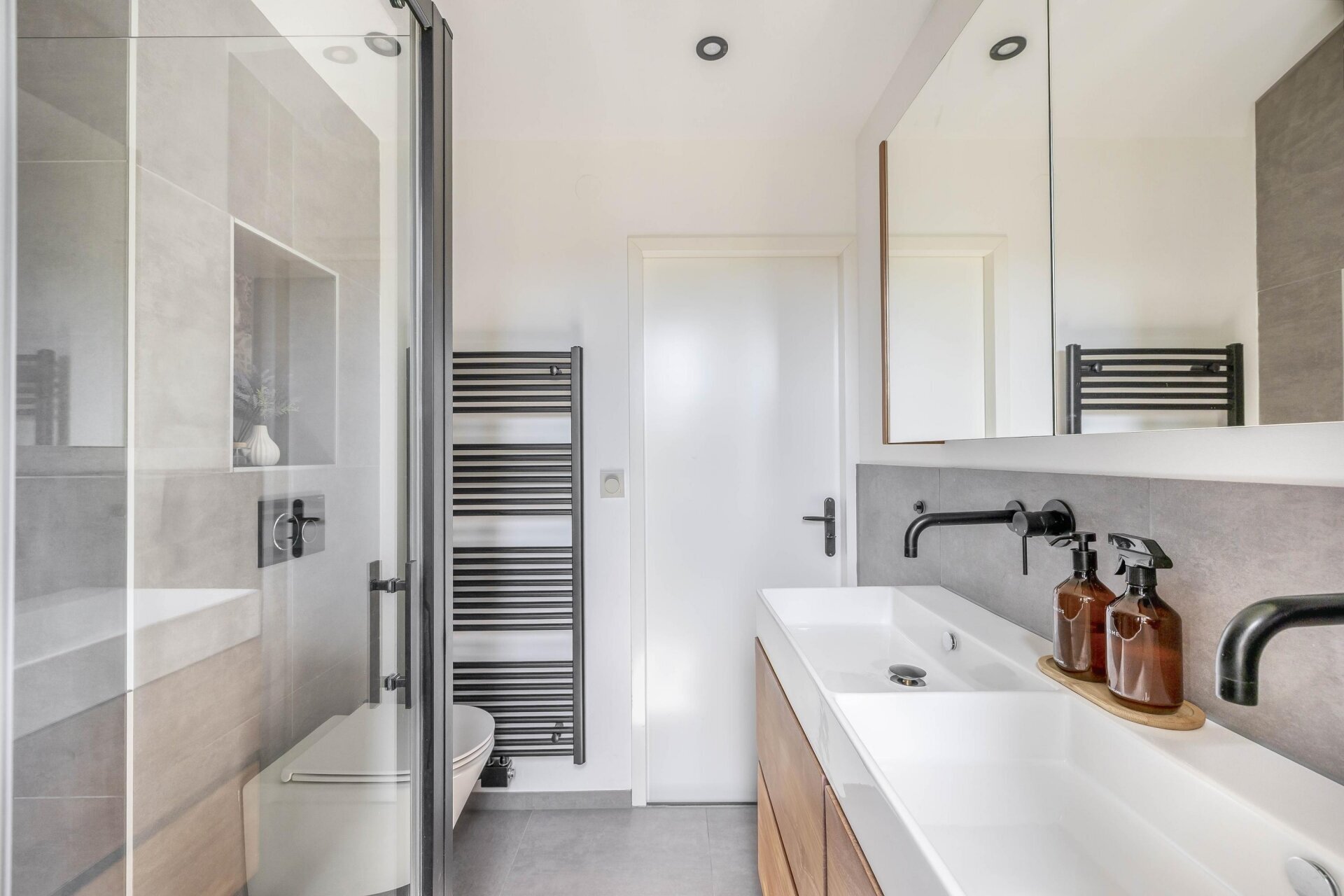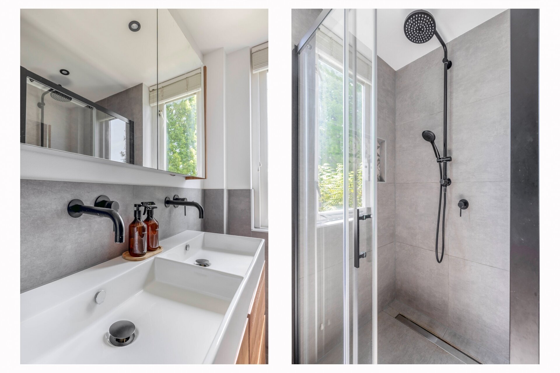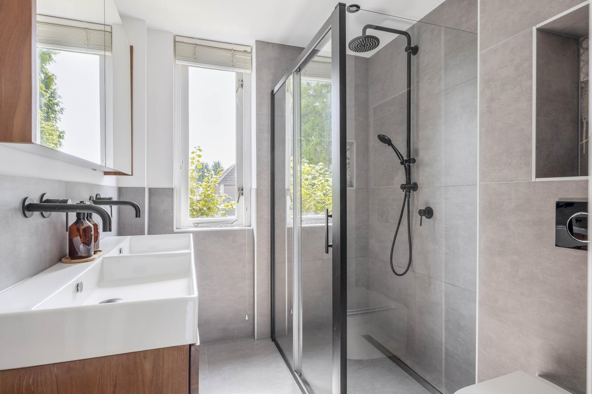 Ook boven is er geen gebrek aan ruimte. Met vier slaapkamers verdeeld over twee verdiepingen is er plek voor iedereen, én dan is er nog ruimte over voor de wasmachine en veel opbergruimte. De badkamer is modern betegeld en ingericht met een ruime douchehoek, dubbele wastafel en tweede toilet. Wat wens je nog meer?!