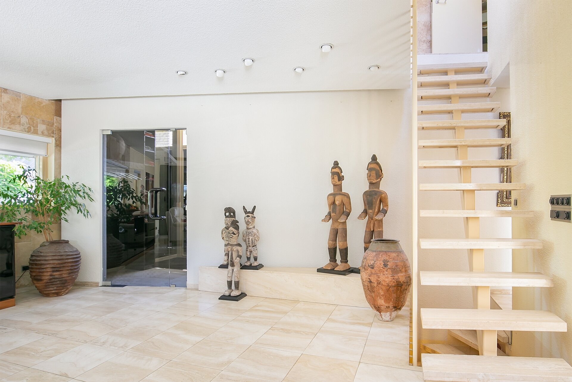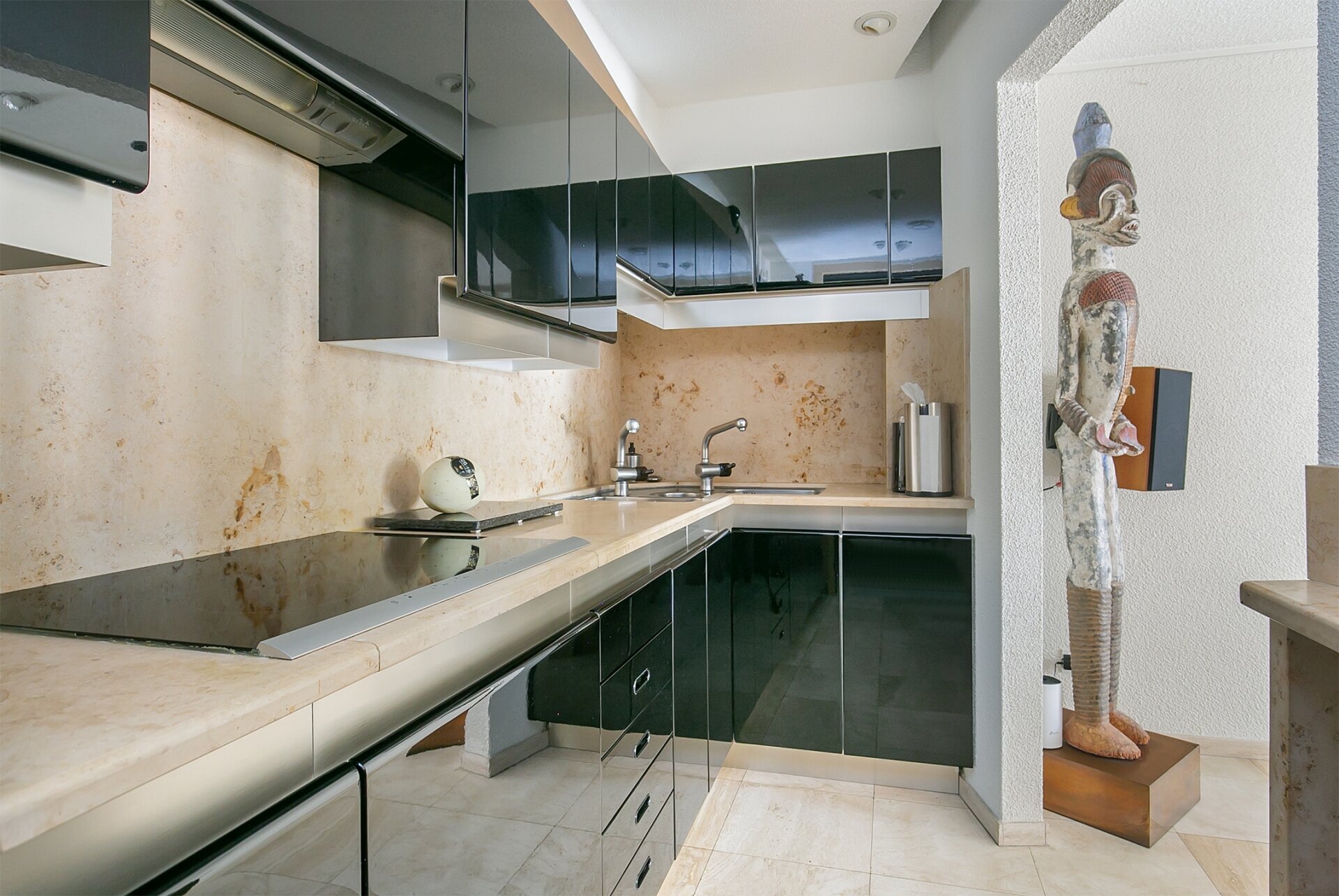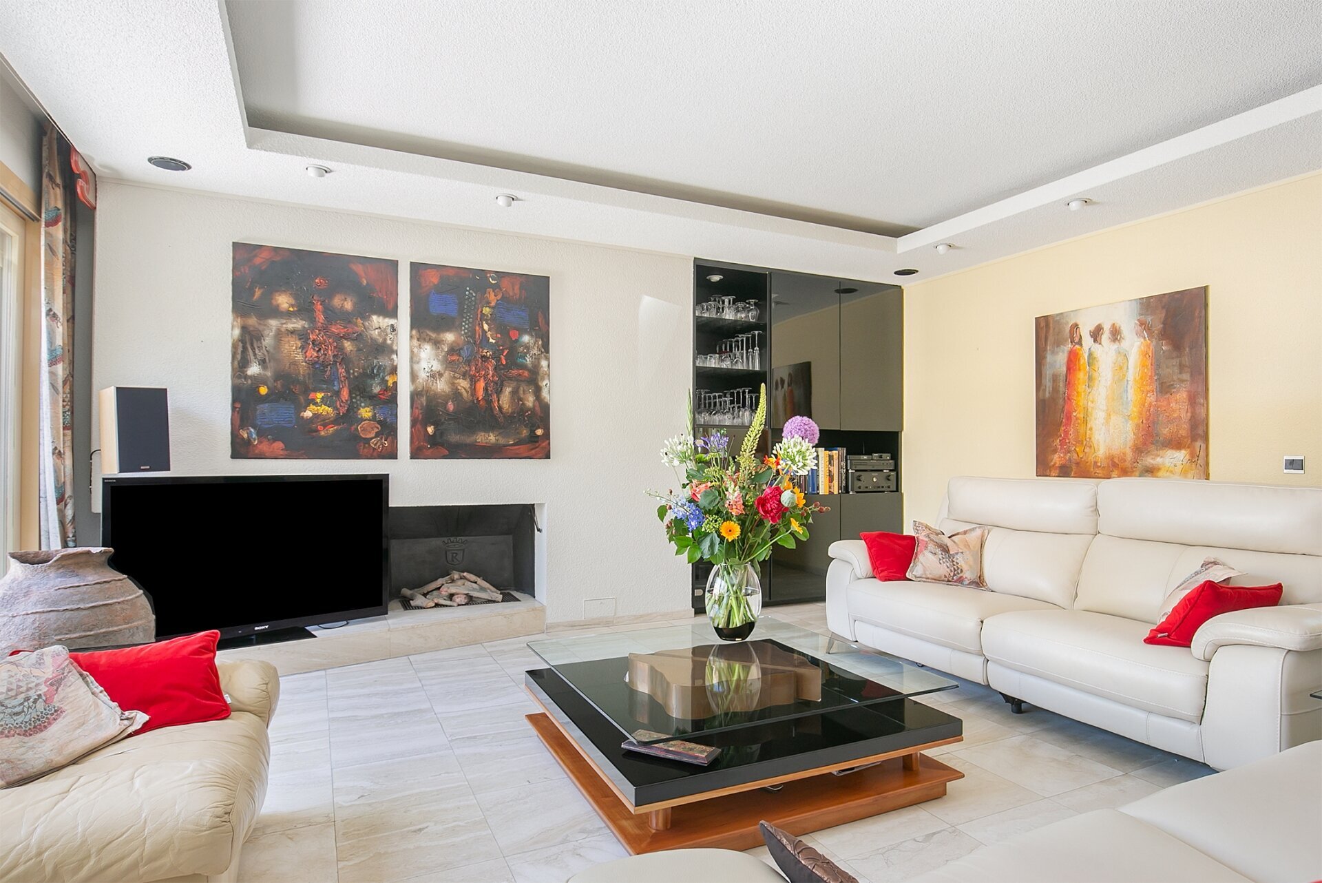 From the living room and dining room there is a good connection to the subtropical garden with many container plants. You can also sit on the patio when the sun is shining. Even when it rains, the patio doors can remain open and you can experience the pleasant pattering rain on the patio roof.