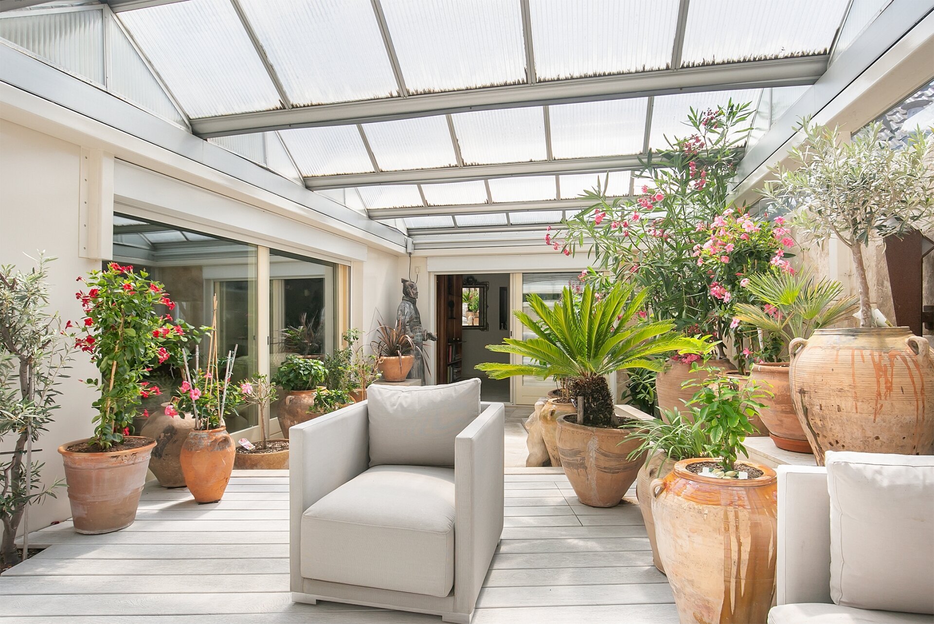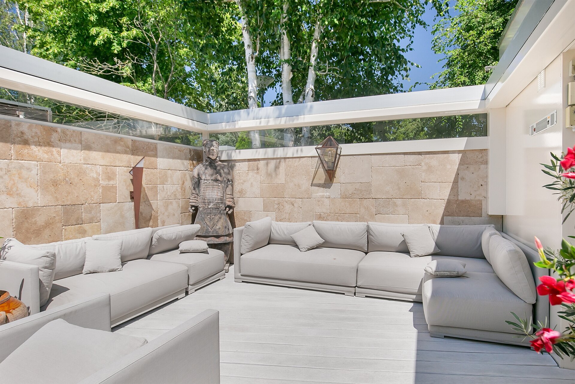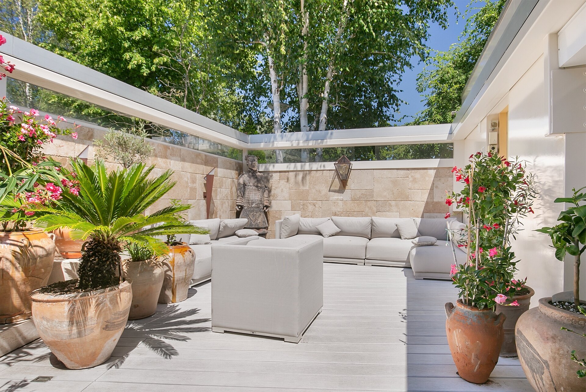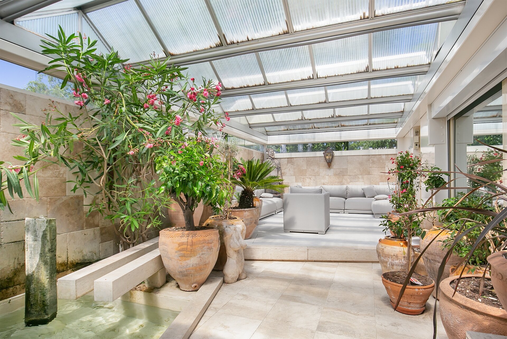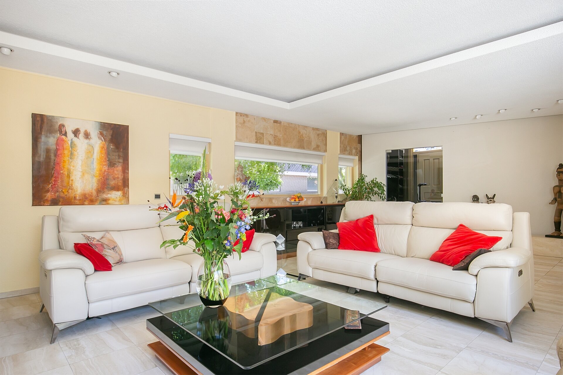 The total living area is no less than 172 m2. The living room of 41 m2 is connected to the dining room of 15 m2, so that the basic living area is already 56 m2. There is also a patio and conservatory of 35 m2 with an electrically operated sliding roof. With a little temperature, the sliding doors of the living and dining room can open so that the living area becomes no less than 91 m2!