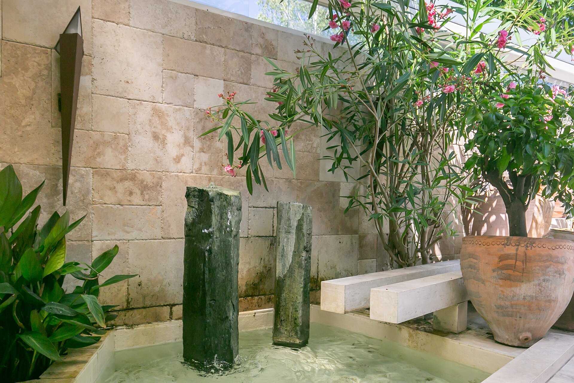Vanuit de woonkamer en eetkamer is er goede verbinding met de subtropische tuin met veel kuipplanten. Met een zonnetje kun je ook heerlijk in de patio zitten. Zelfs met regen kunnen de patiodeuren open blijven en ervaar je de gezellig kletterende regen op het patiodak.