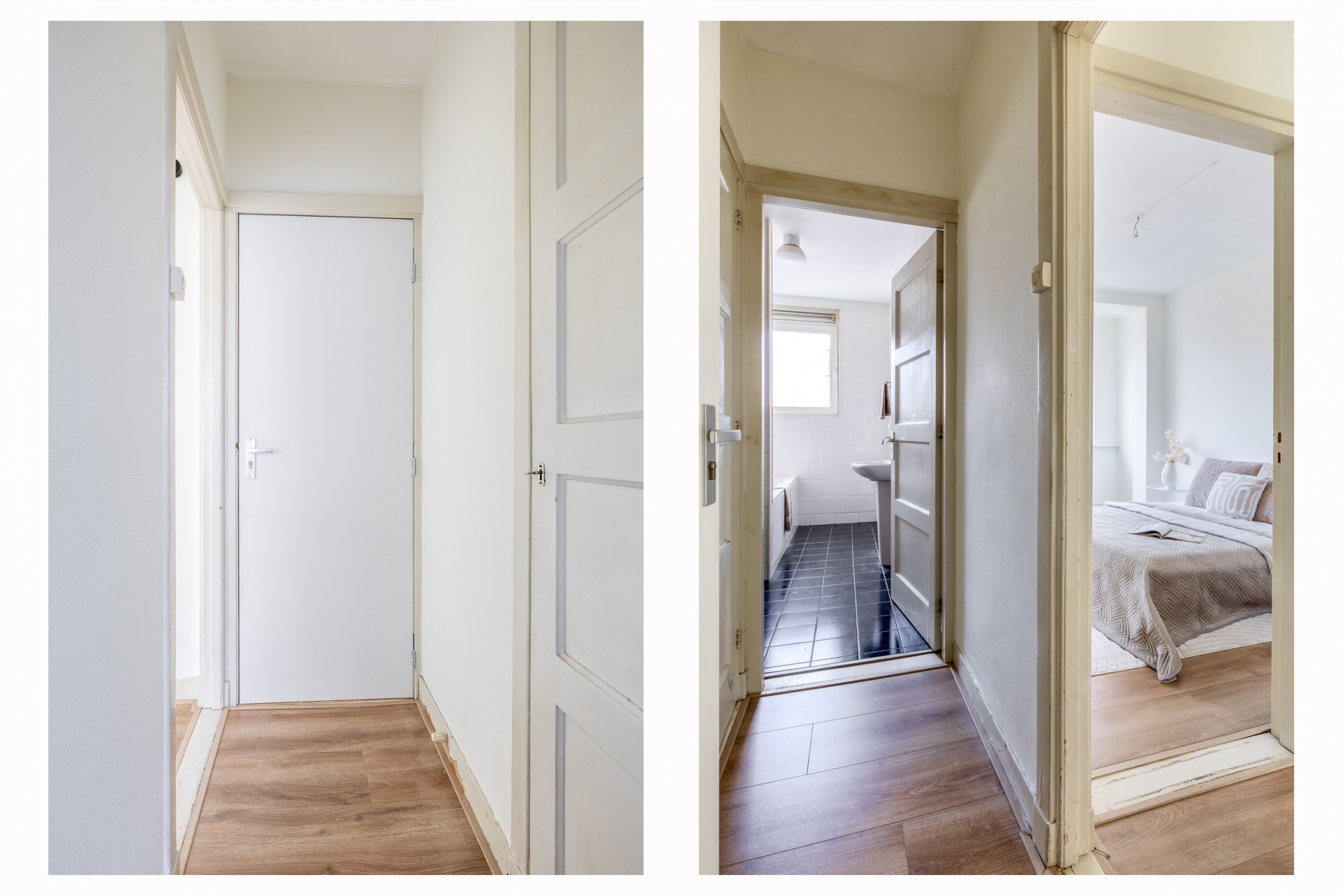 Het appartement ligt op de eerste verdieping van een karakteristiek pand uit 1936. De combinatie van de uitstraling van het gebouw en het comfort van nu maakt dit een interessante plek voor starters.