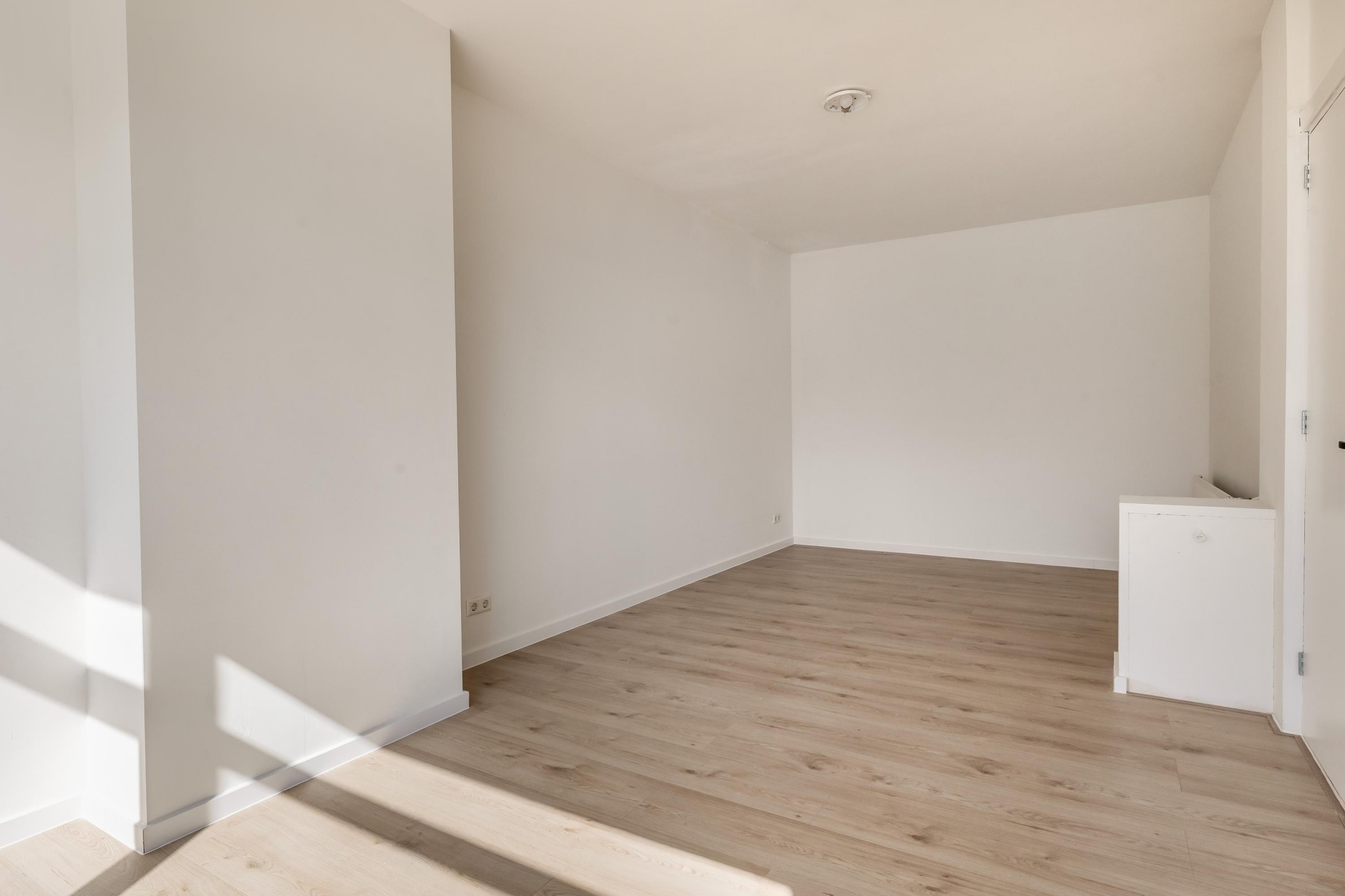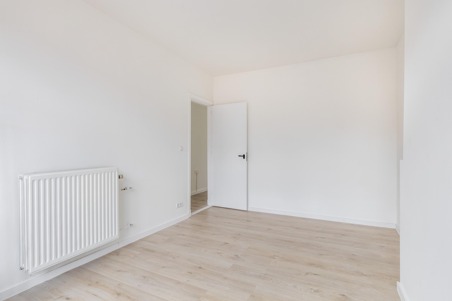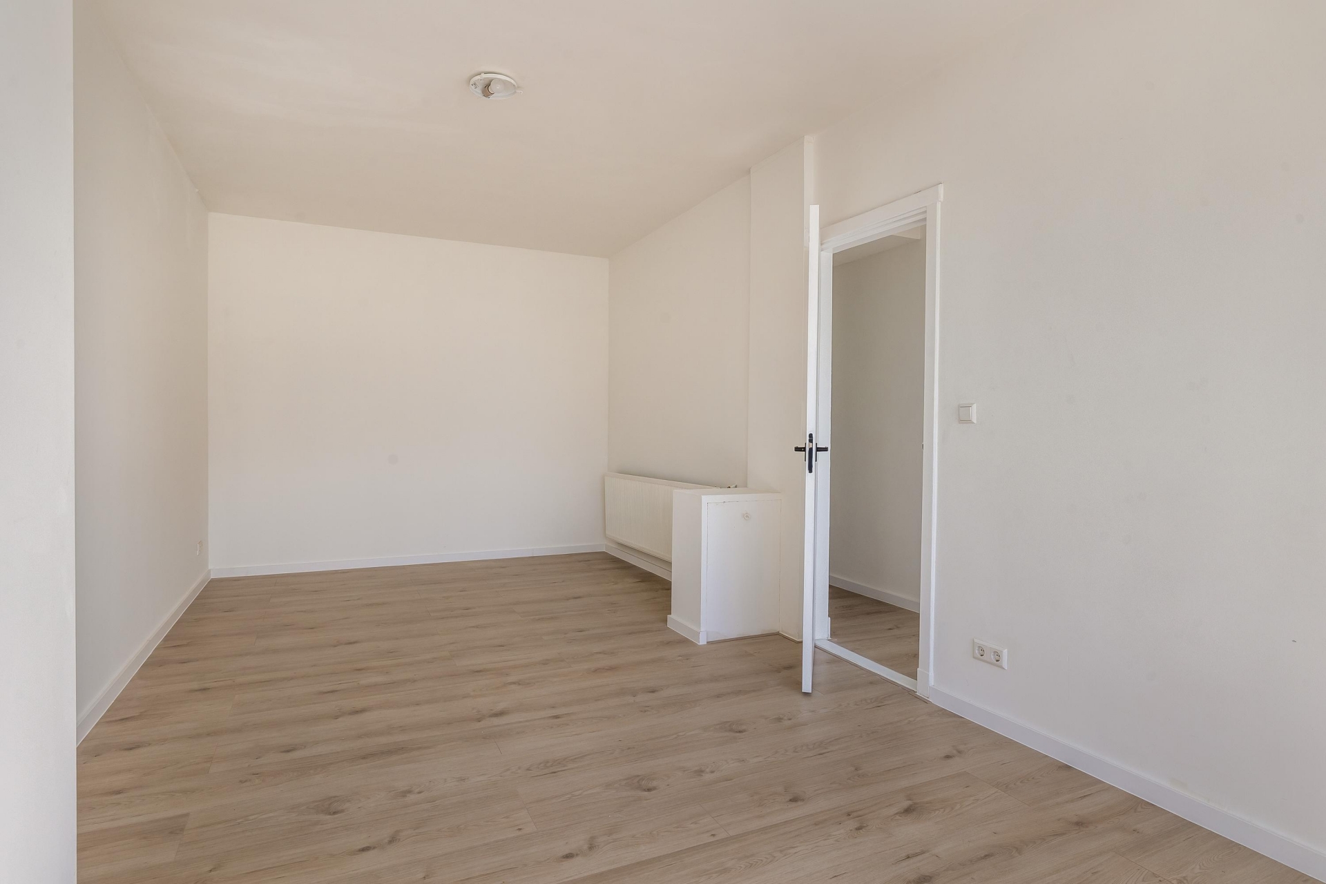 De woonkamer loopt over de volle diepte van het huis en voelt daardoor ruim en prettig aan. Aan de voorzijde geniet je van vrij uitzicht, terwijl de achterzijde aansluit op het balkon. Hier creëer je eenvoudig een fijne zit- en eethoek. De keukenruimte bevindt zich aan de achterzijde en is voorbereid met alle benodigde aansluitingen. Je hebt hier de mogelijkheid om een keuken volledig naar eigen smaak te plaatsen, zonder dat er eerst gesloopt hoeft te worden.