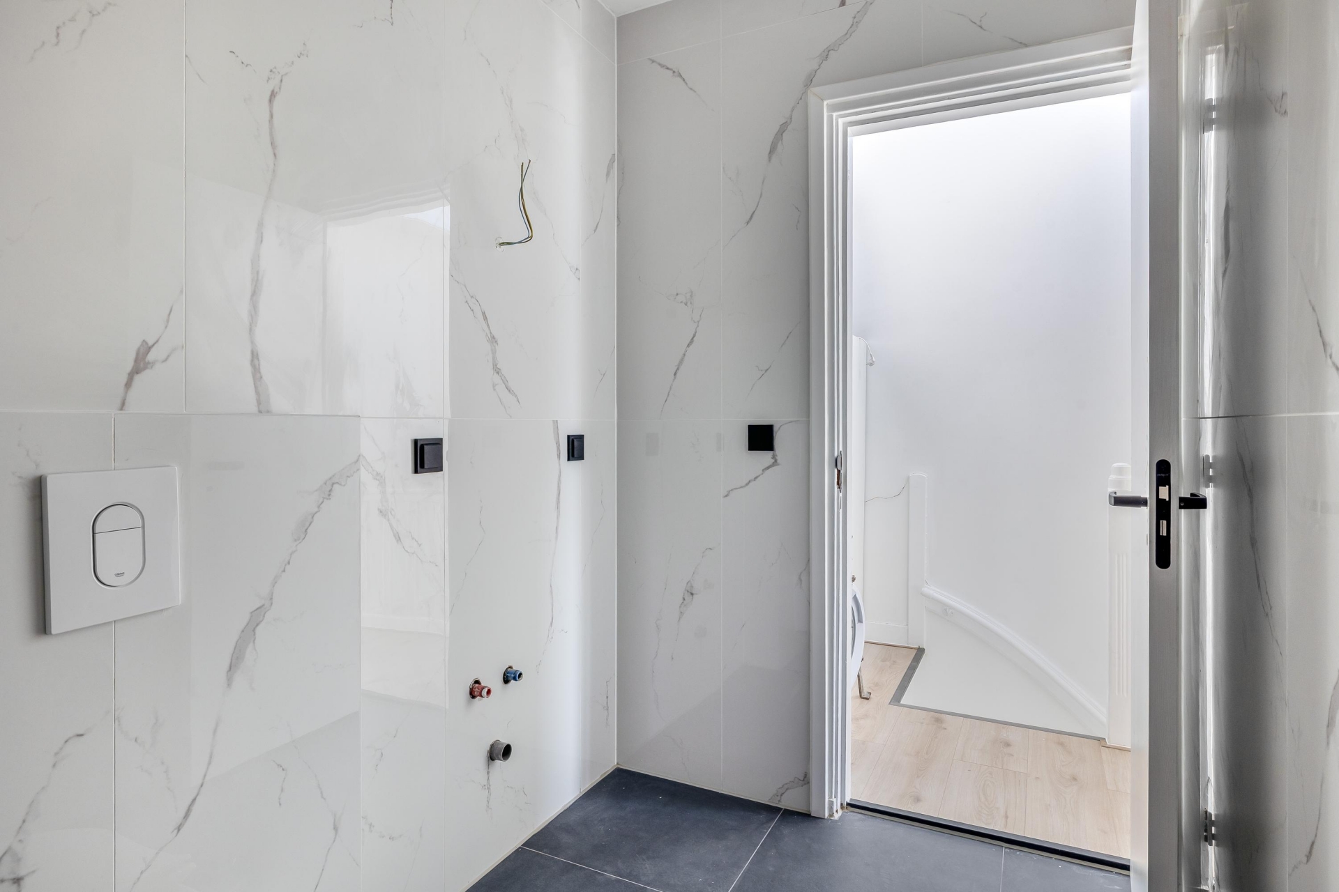 Het appartement beschikt over drie slaapkamers verdeeld over twee woonlagen. De grootste slaapkamer ligt aan de achterzijde en heeft toegang tot het balkon. De overige kamers zijn ideaal als werk-, logeer- of kinderkamer. De badkamer is modern afgewerkt met een inloopdouche en strak tegelwerk. Het badkamermeubel is bewust nog niet geplaatst, zodat je dit zelf kunt invullen. De aansluitingen zijn al aanwezig. Daarnaast is er op beide verdiepingen een separaat toilet, wat zorgt voor extra comfort.