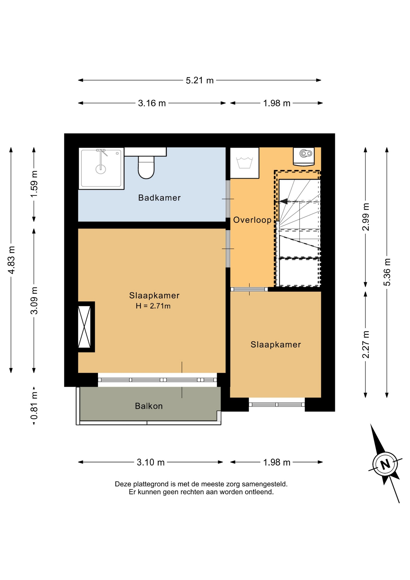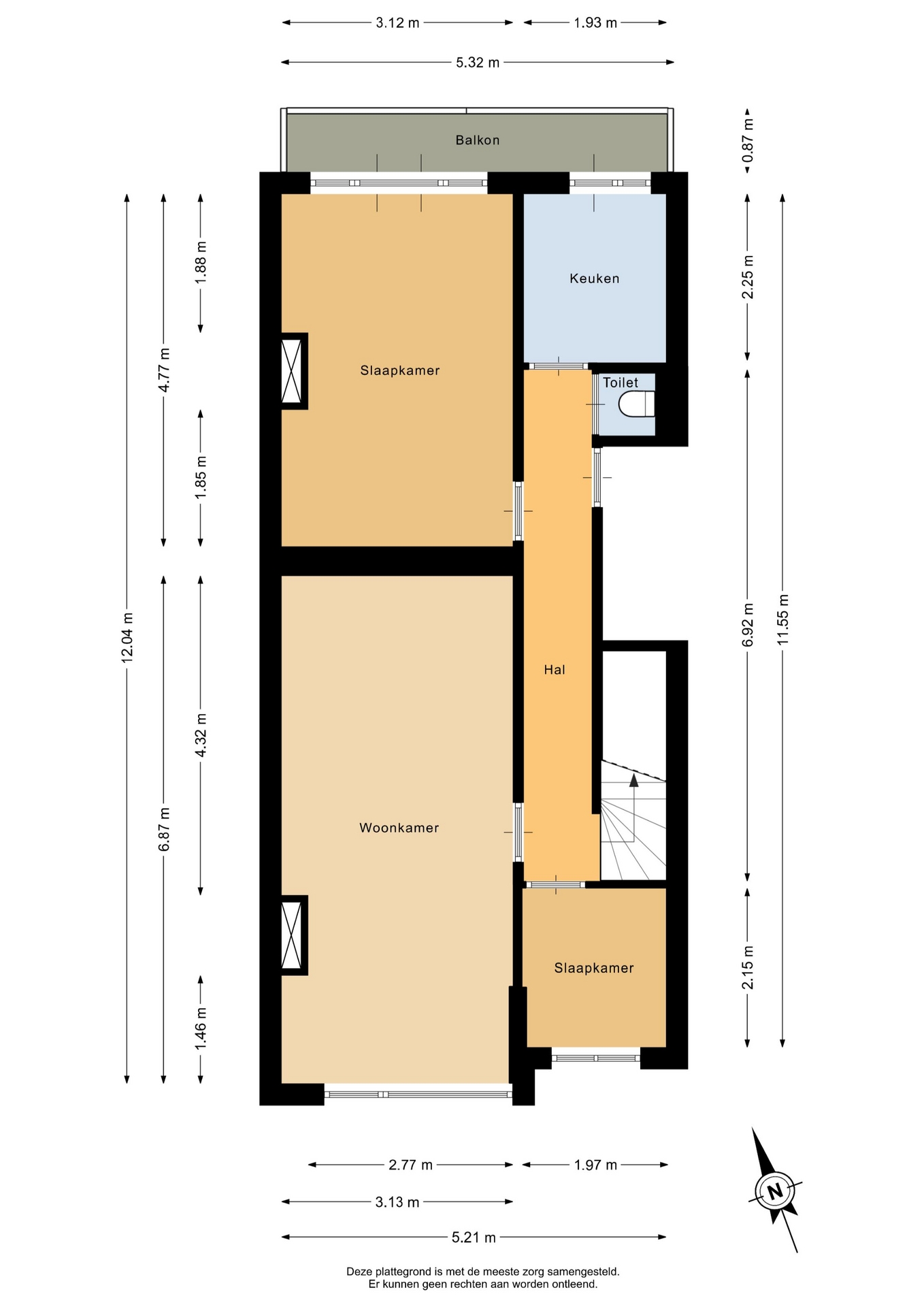 “Deze informatie is door ons met de nodige zorgvuldigheid samengesteld. Onzerzijds wordt echter geen enkele aansprakelijkheid aanvaard voor enige onvolledigheid, onjuistheid of anderszins, dan wel de gevolgen daarvan. Alle opgegeven maten en oppervlakten zijn indicatief.”