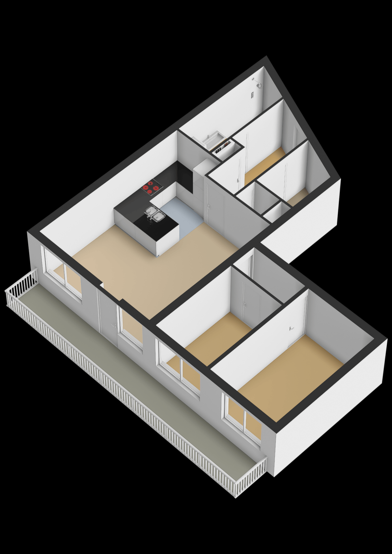 - Aantal kamers 3 (waarvan 2 slaapkamers)