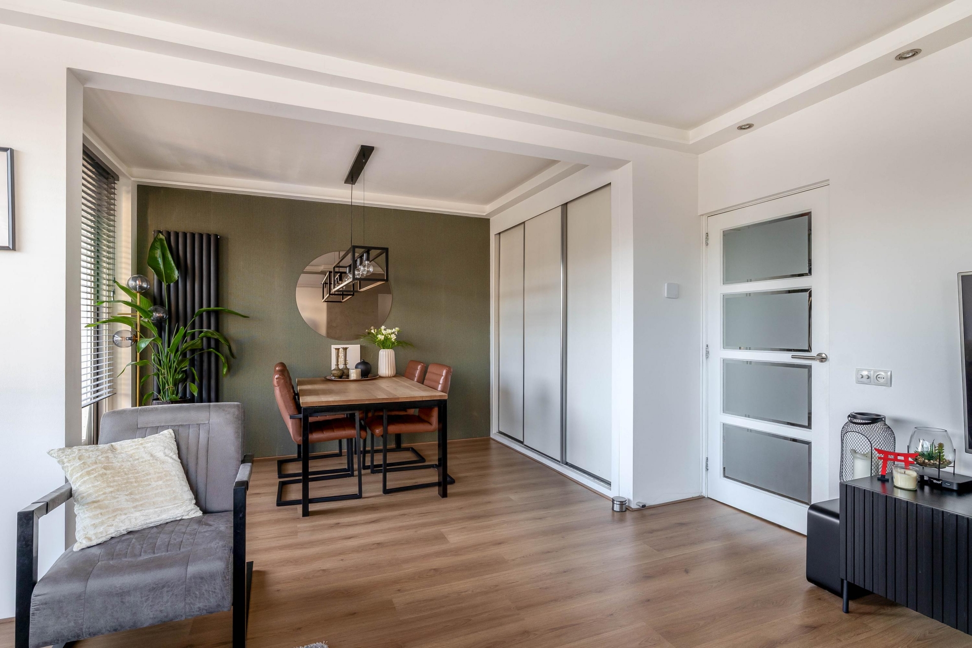 De woonkamer is een echte eyecatcher: licht, ruim en met een fijne sfeer dankzij de grote raampartijen, het hoekraam en de aanwezigheid van een sfeerhaard. De strakke afwerking en warme vloer maken het geheel af. Hier is het elke dag fijn thuiskomen. Of je nu lekker onderuit zakt op de bank, of vrienden uitnodigt voor een avondje samen. De twee airco's zorgen op warme dagen voor extra comfort en koelte.