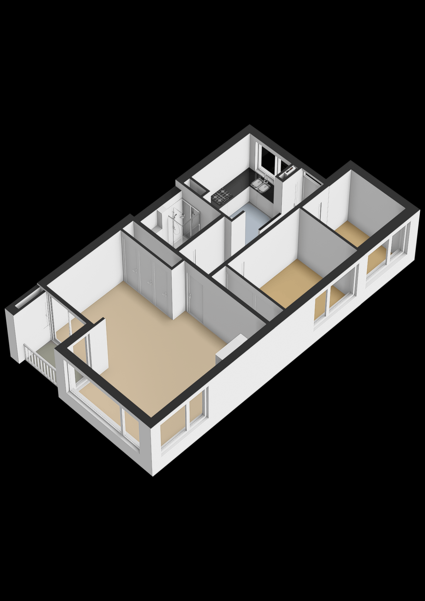 De keuken is netjes en praktisch ingericht met voldoende werkruimte en een moderne uitstraling. Dankzij het grote raam boven het aanrecht heb je hier veel daglicht, wat het een prettige plek maakt om te koken. De opstelling is functioneel, met voldoende kastruimte en apparatuur en sluit mooi aan op de rest van het appartement.
