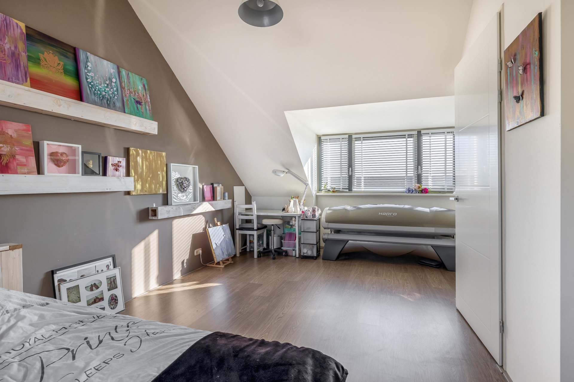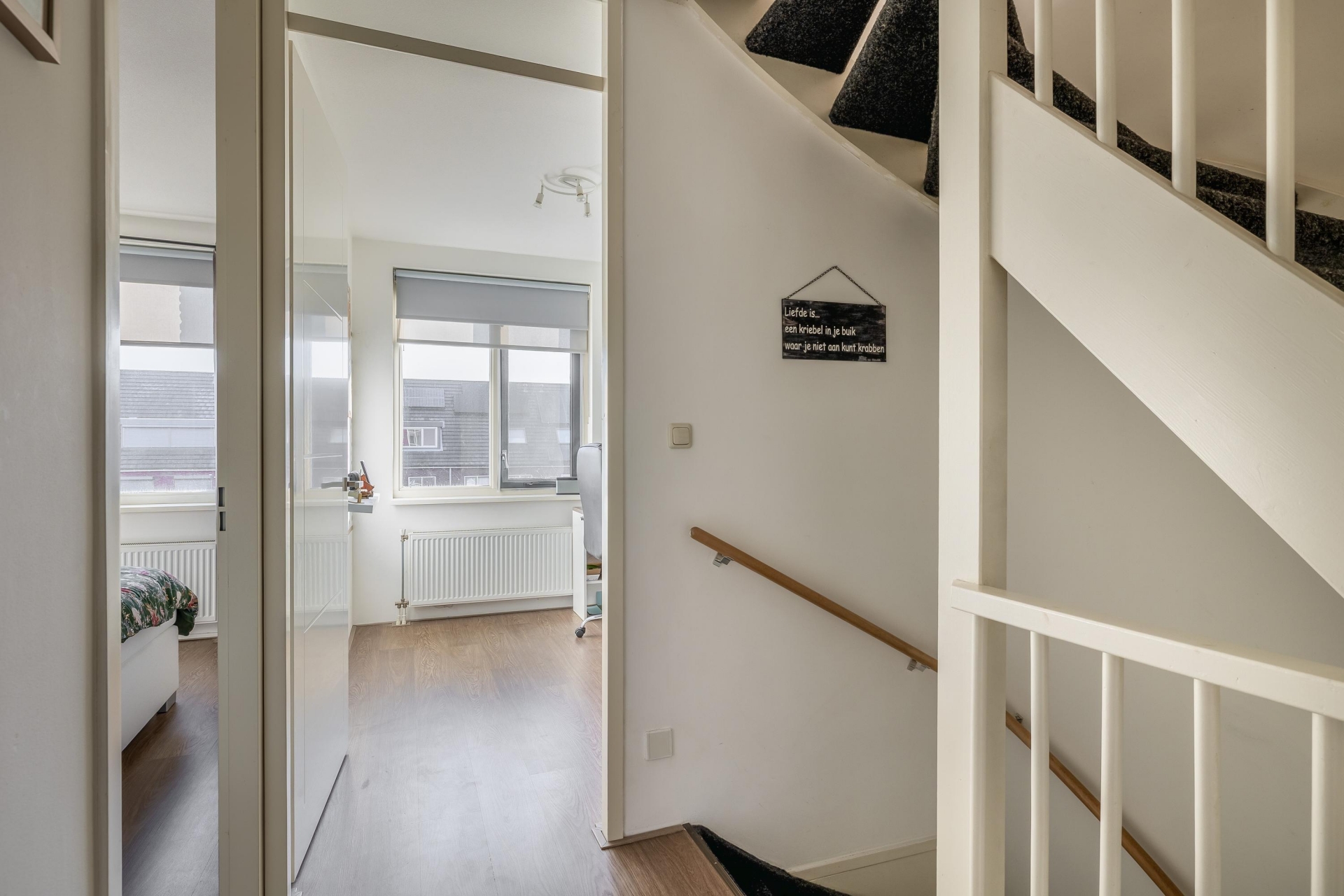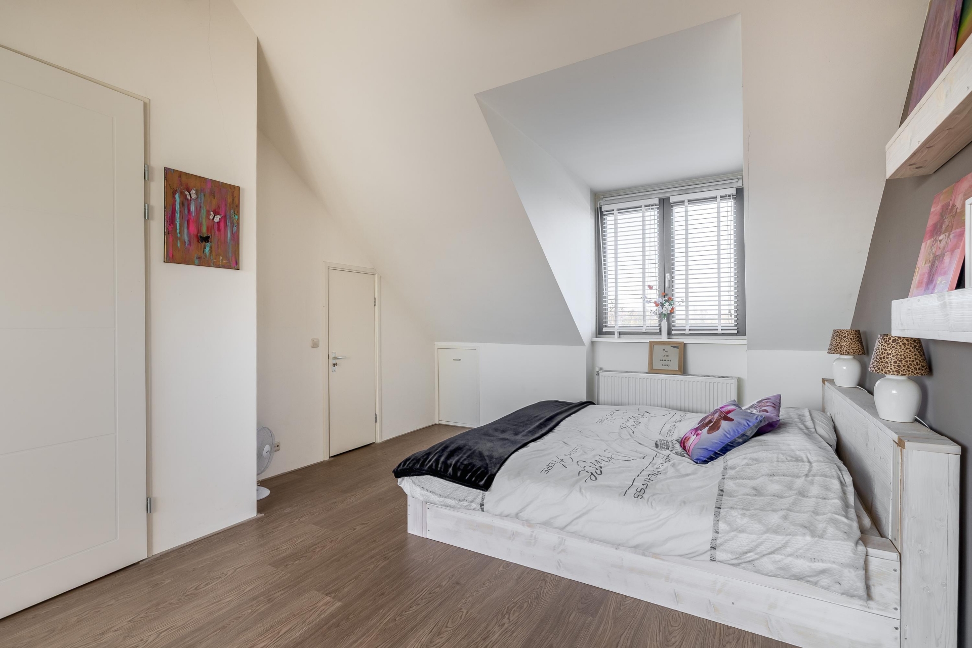 Met 4 volwaardige etages biedt deze woning verrassend veel ruimte. De 3 slaapkamers zijn verdeeld over de verdiepingen, met de grootste slaapkamer aan de achterzijde van het huis. Hier is bovendien een ruime en-suite inloopkast gecreëerd – een echte luxe. Airconditioning zorgt ervoor dat je hier ook tijdens warme zomernachten comfortabel slaapt. Op de overige etages zijn er nog twee slaapkamers en extra ruimte voor bijvoorbeeld een thuiskantoor, logeerkamer of hobbyruimte. Ook de badkamer is modern afgewerkt en beschikt over alle gemakken. De woning heeft in totaal zes kamers, verdeeld over vier woonlagen – dit is absoluut geen standaard tussenwoning.