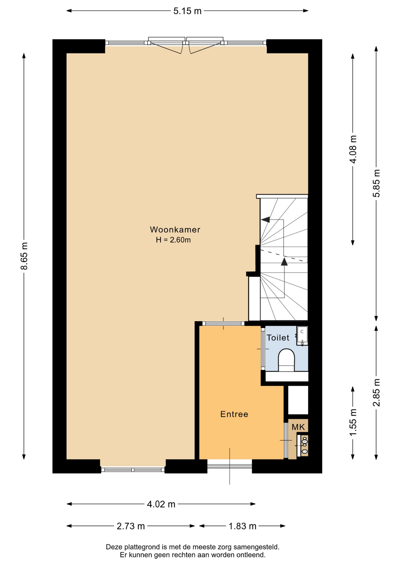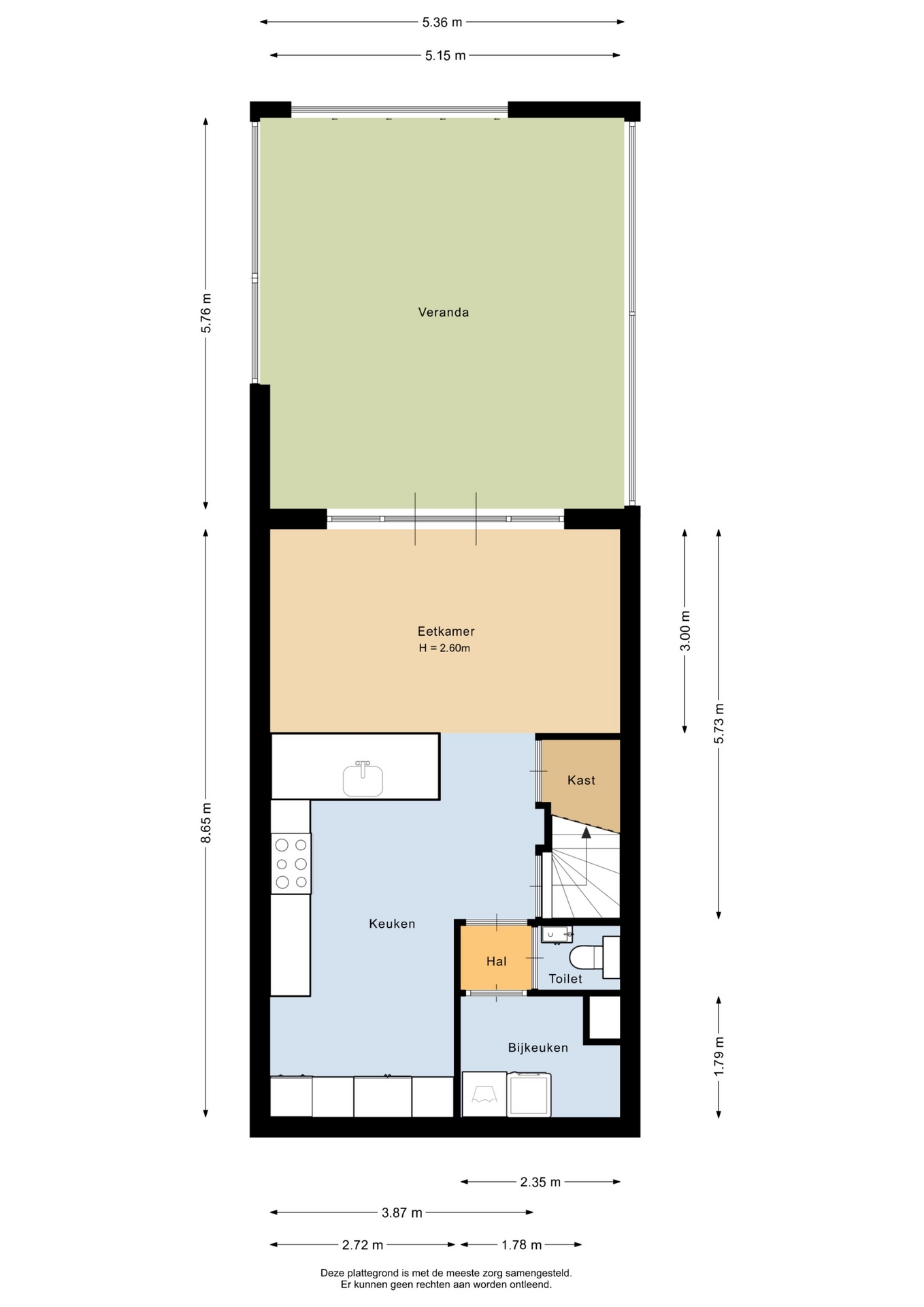 “Deze informatie is door ons met de nodige zorgvuldigheid samengesteld. Onzerzijds wordt echter geen enkele aansprakelijkheid aanvaard voor enige onvolledigheid, onjuistheid of anderszins, dan wel de gevolgen daarvan. Alle opgegeven maten en oppervlakten zijn indicatief.”