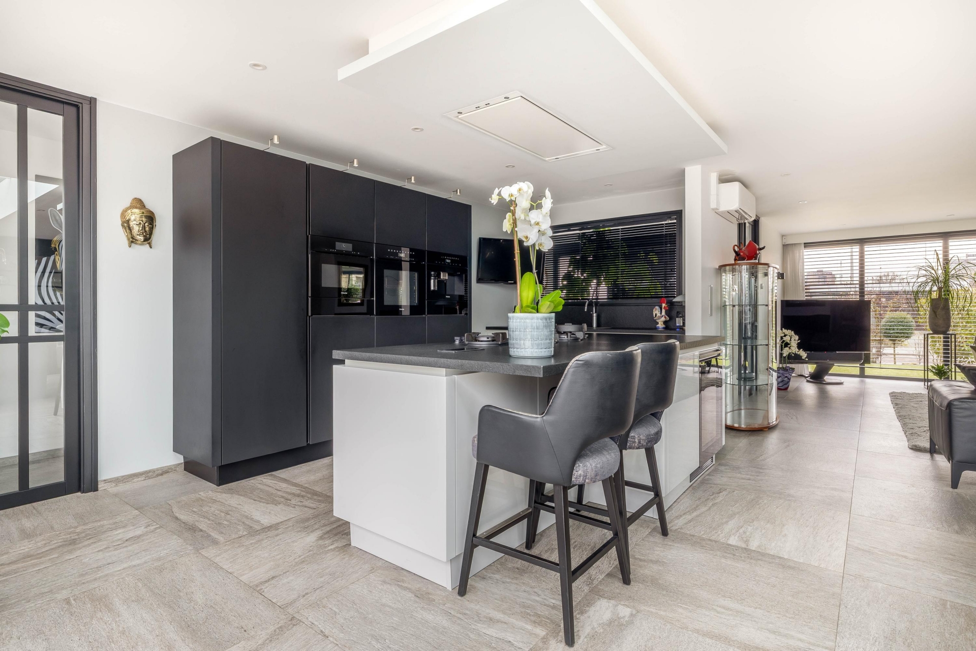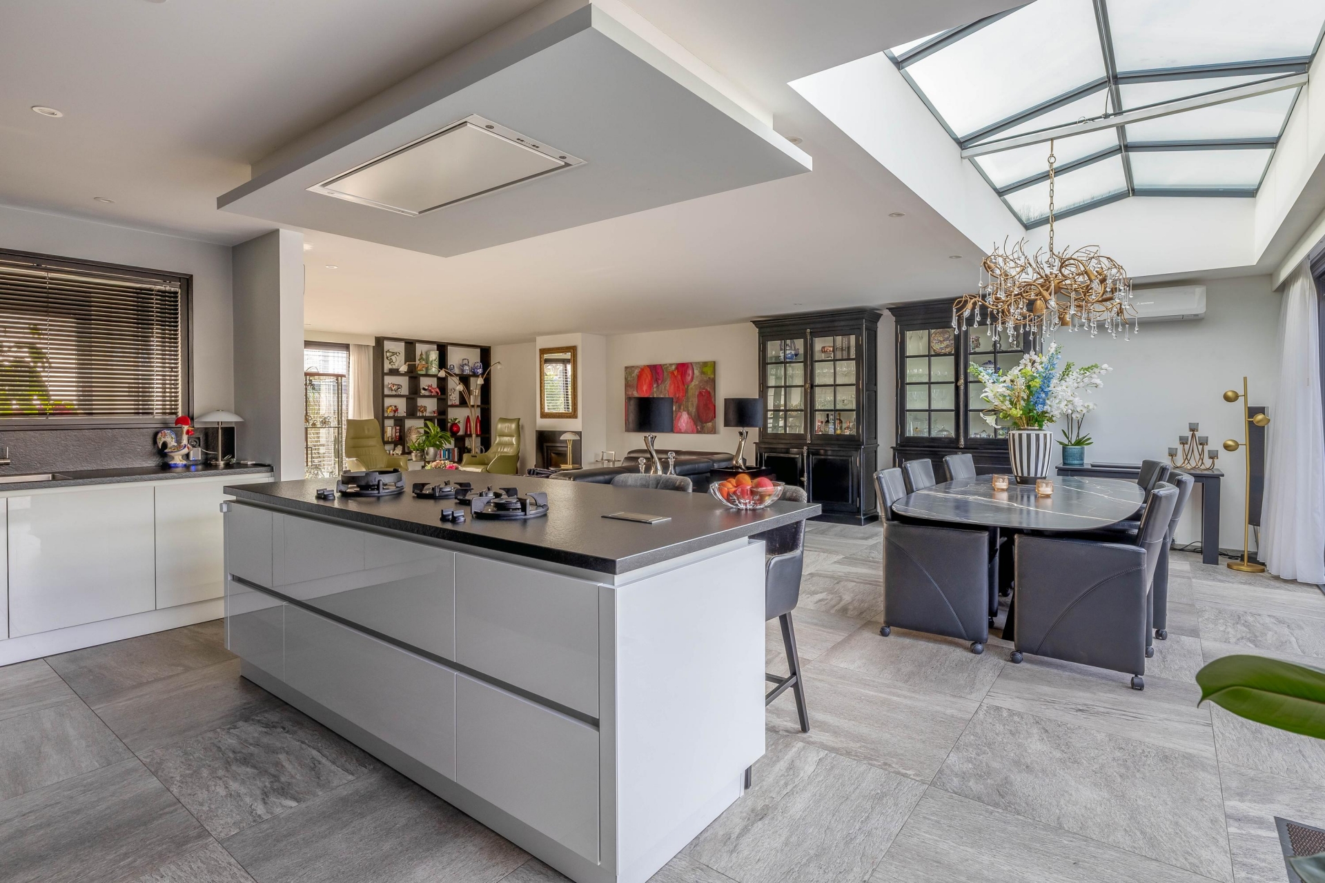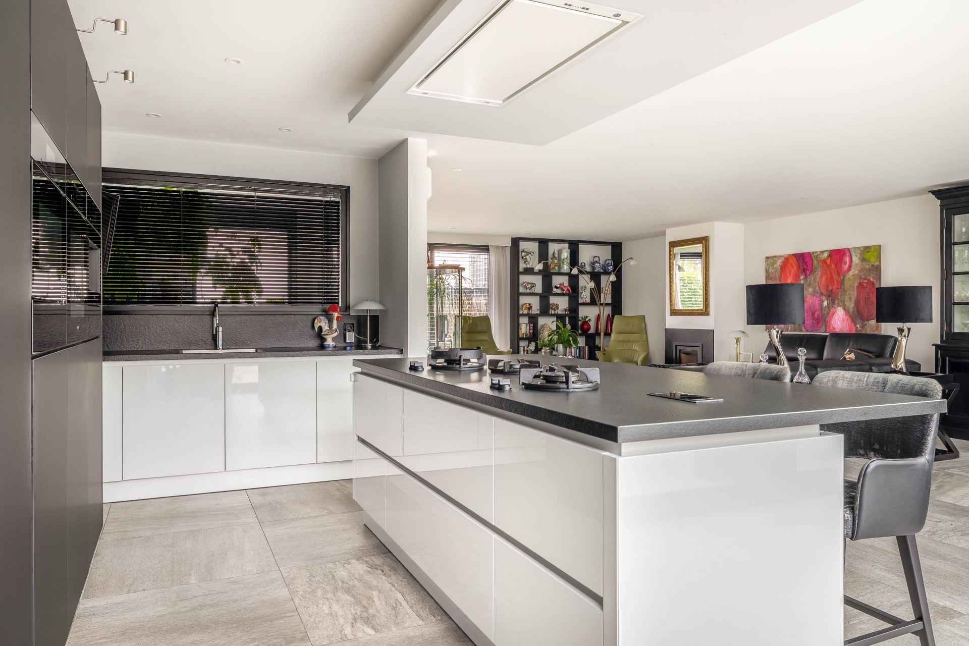 - Royale woonkamer met luxe open keuken;
