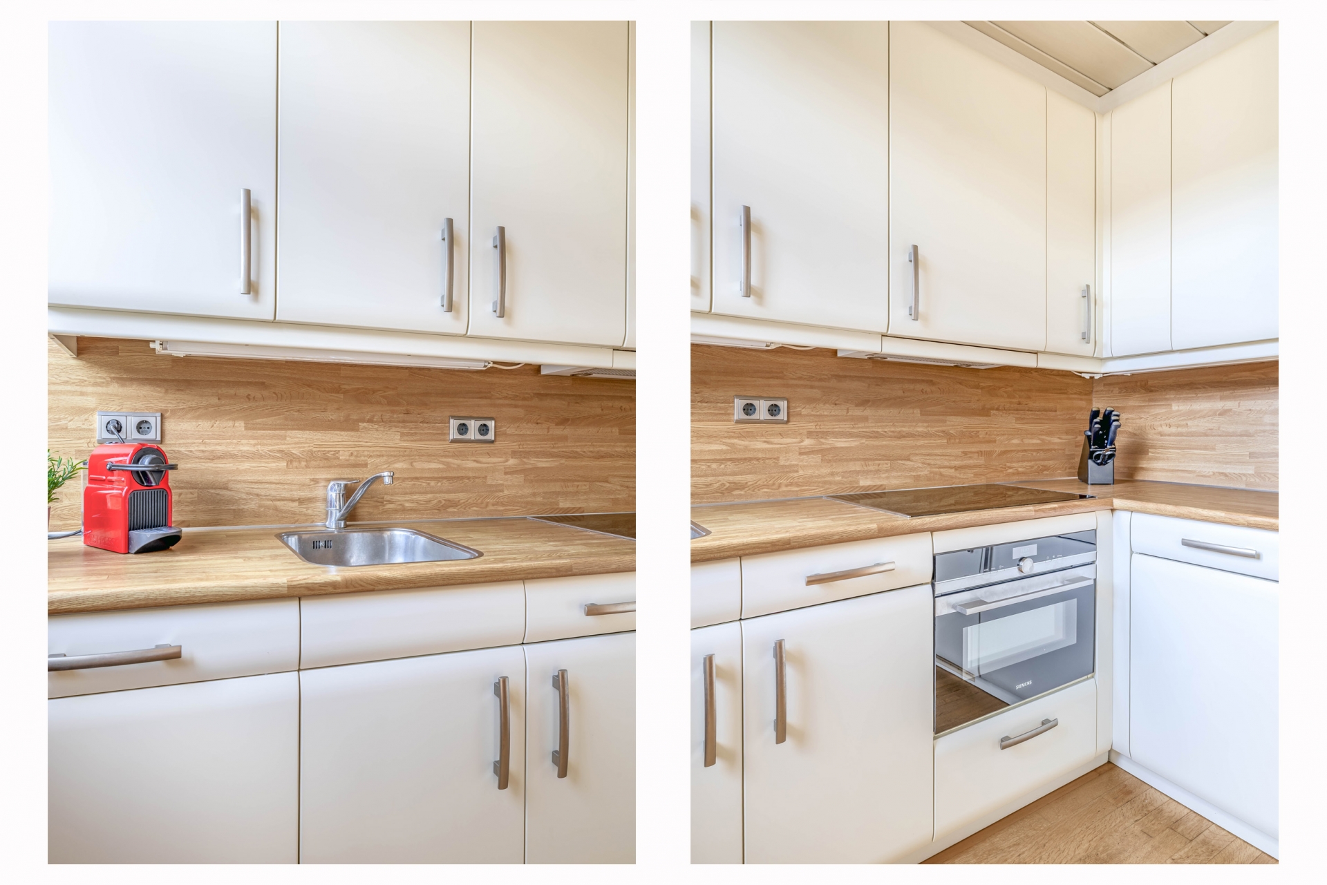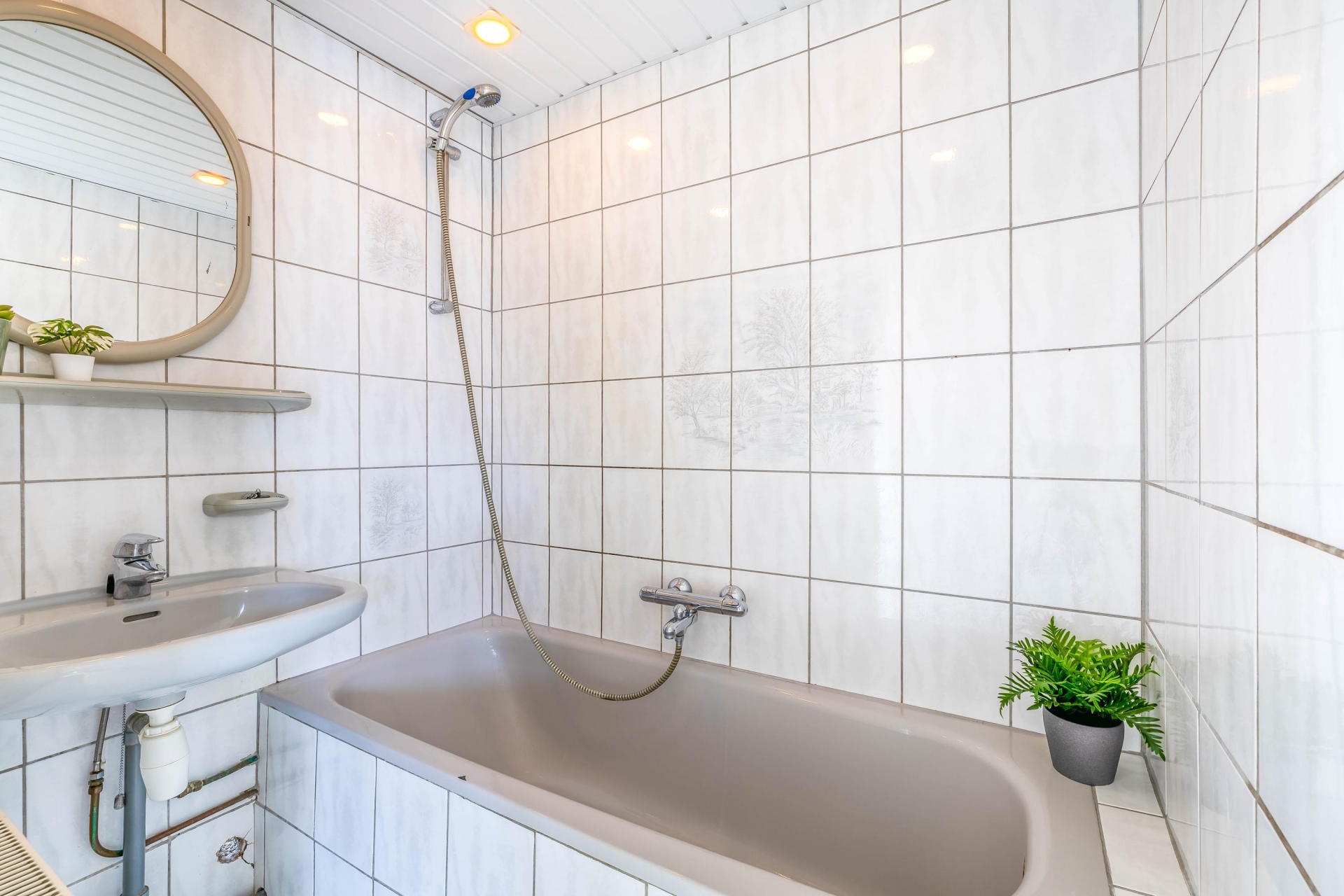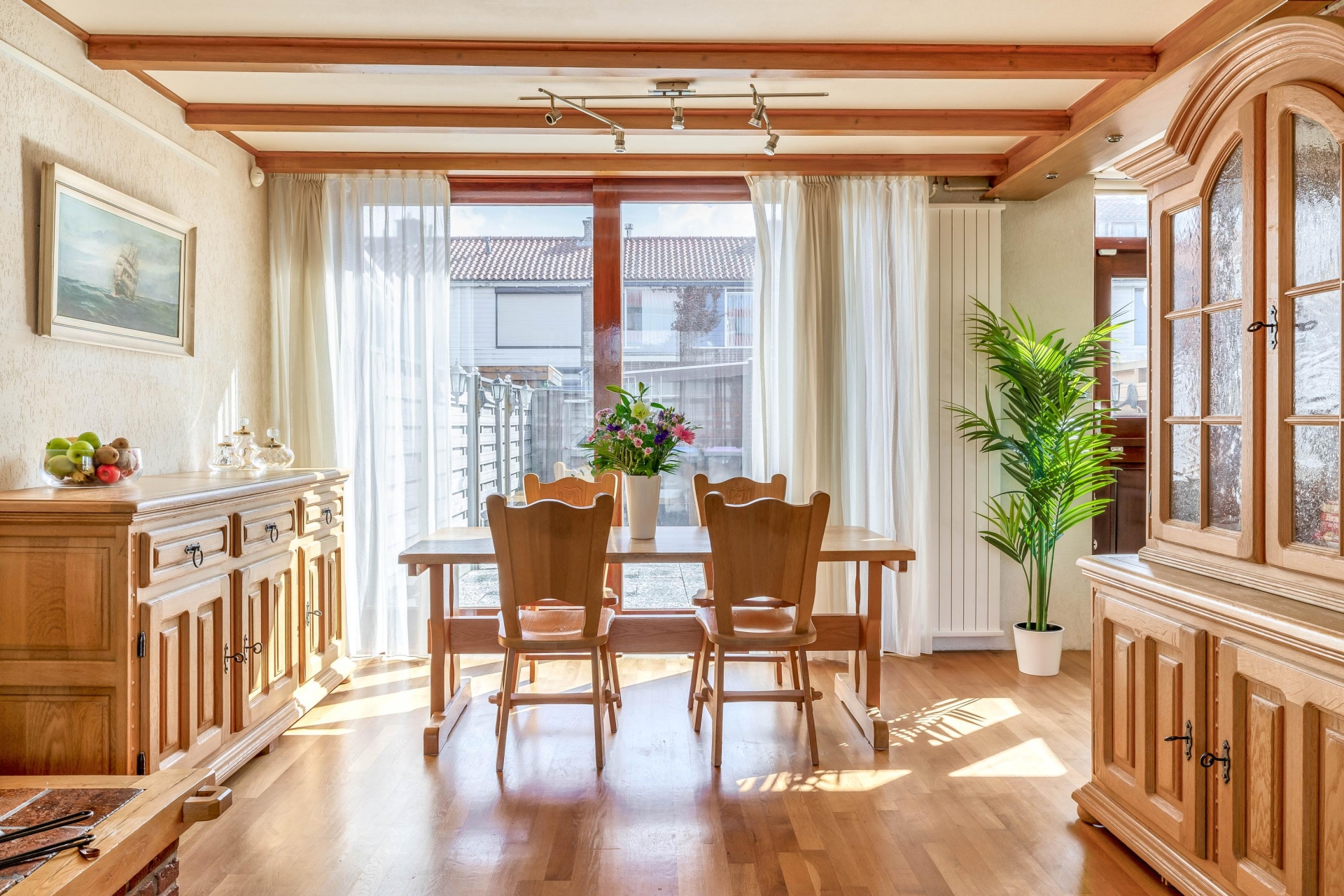 De keuken ligt aan de achterzijde en is netjes en functioneel ingericht. Vanuit hier heb je direct zicht op de tuin, wat het een prettige plek maakt tijdens het koken. De opstelling biedt alles wat je nodig hebt en tegelijkertijd zie je hier direct de kans om het geheel te vernieuwen en bijvoorbeeld open te trekken richting de woonkamer.