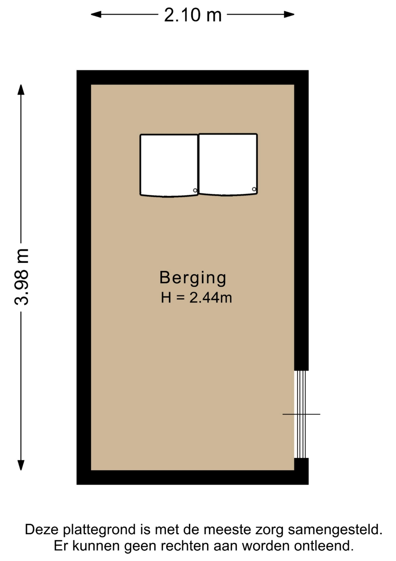 “Deze informatie is door ons met de nodige zorgvuldigheid samengesteld. Onzerzijds wordt echter geen enkele aansprakelijkheid aanvaard voor enige onvolledigheid, onjuistheid of anderszins, dan wel de gevolgen daarvan. Alle opgegeven maten en oppervlakten zijn indicatief.”