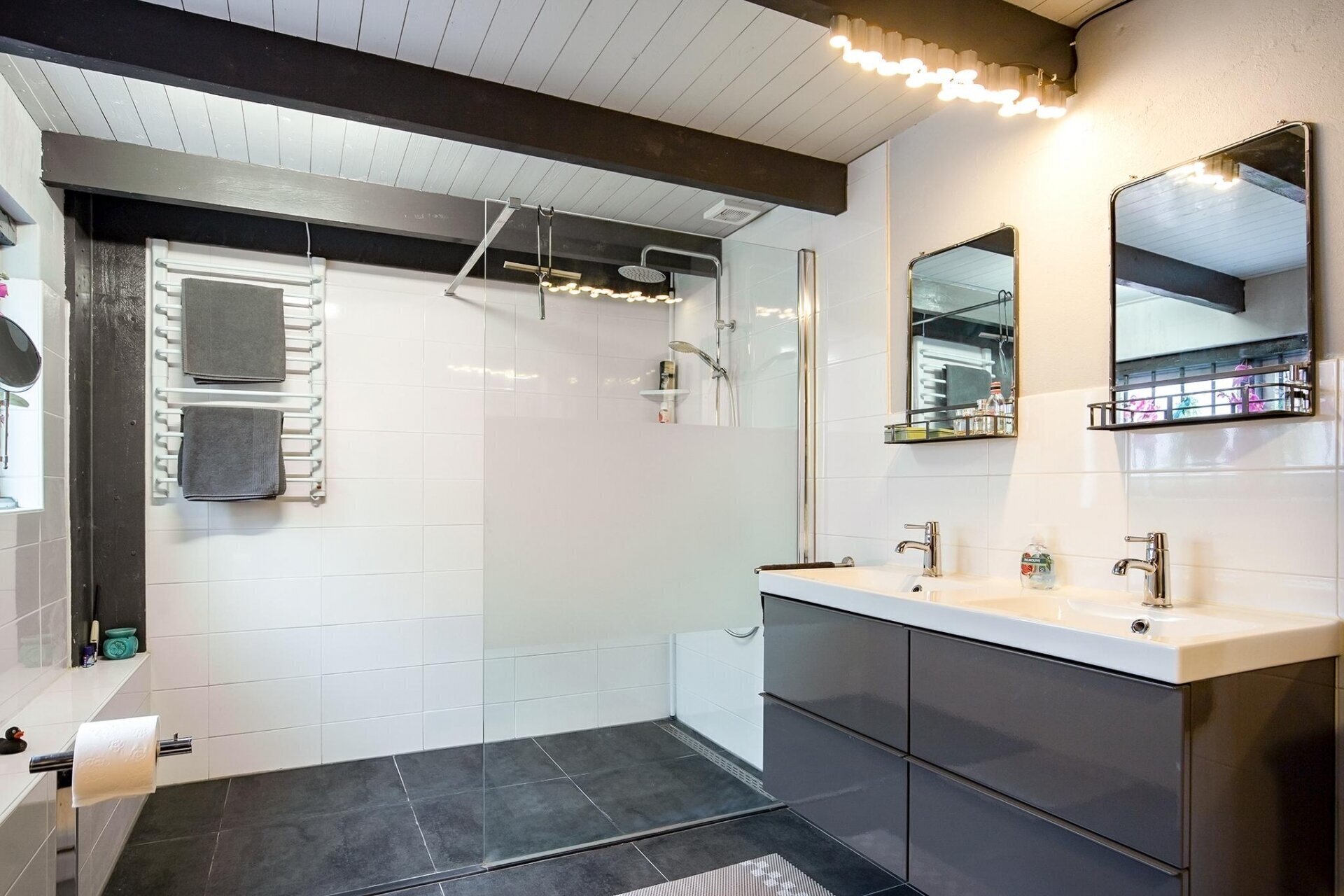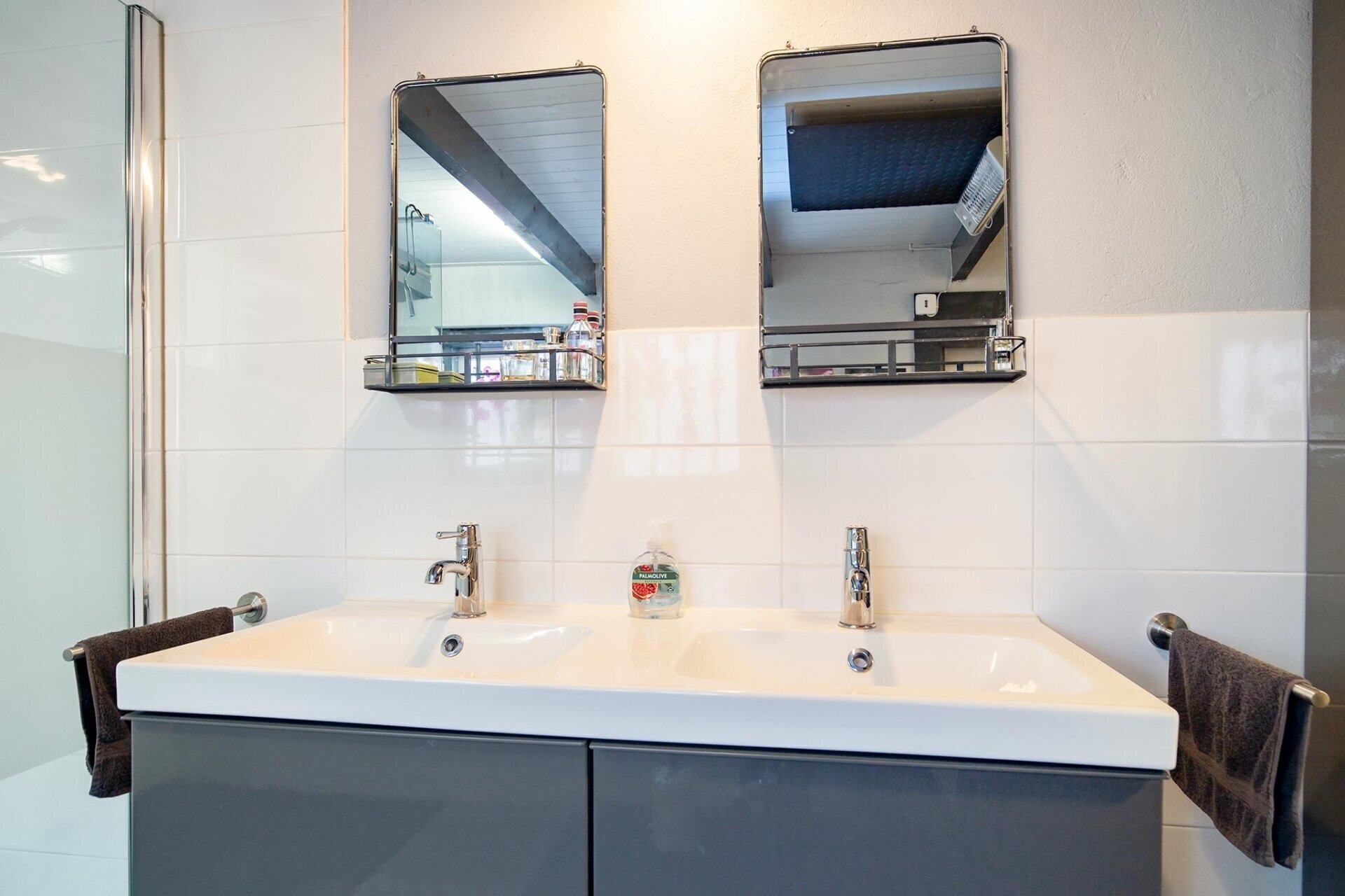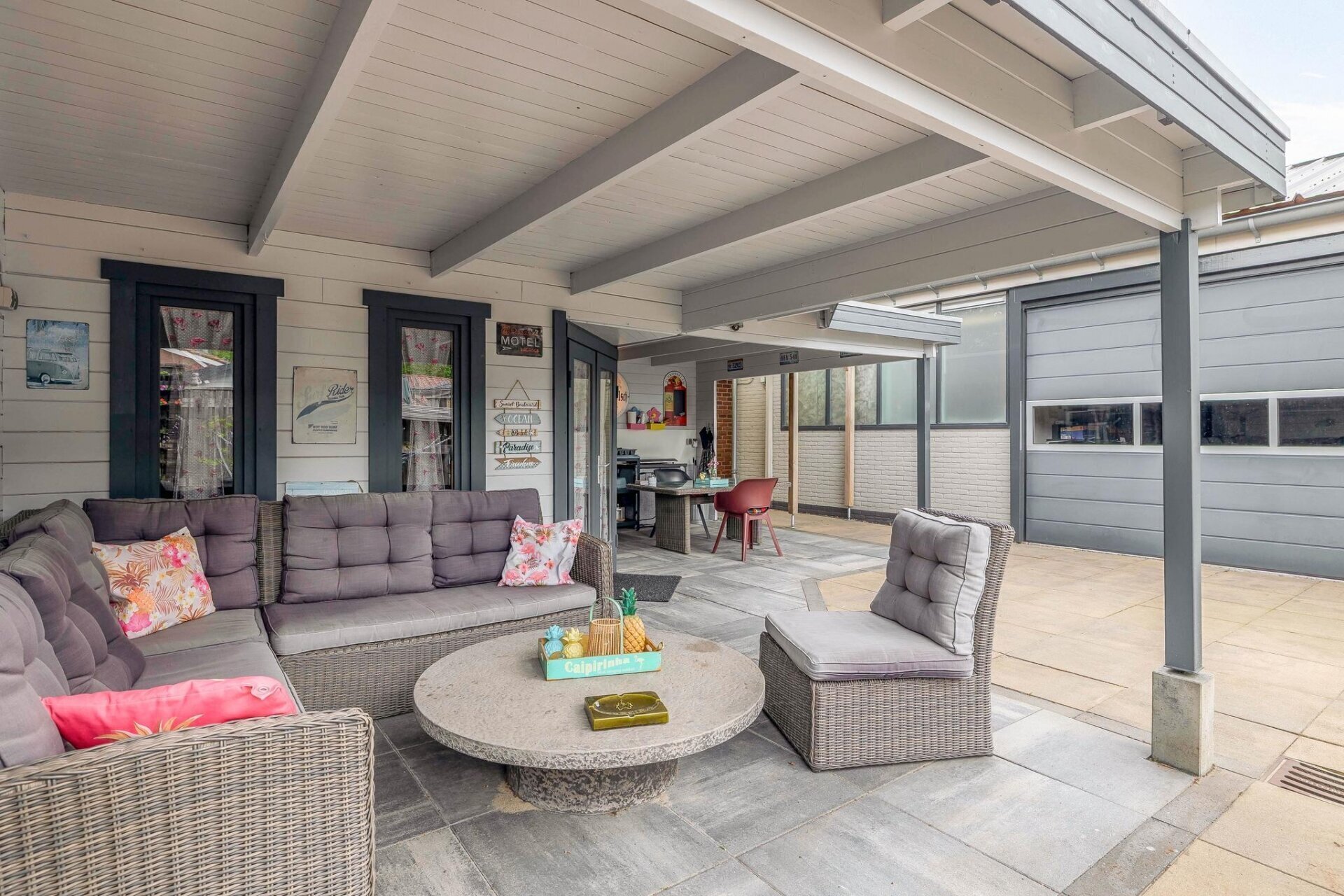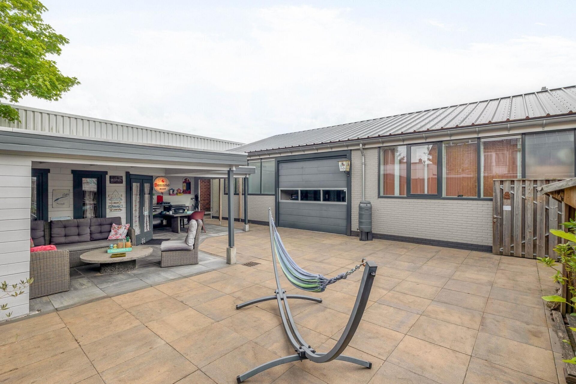 - Twee inpandige garages met elektrische overhead-deuren;