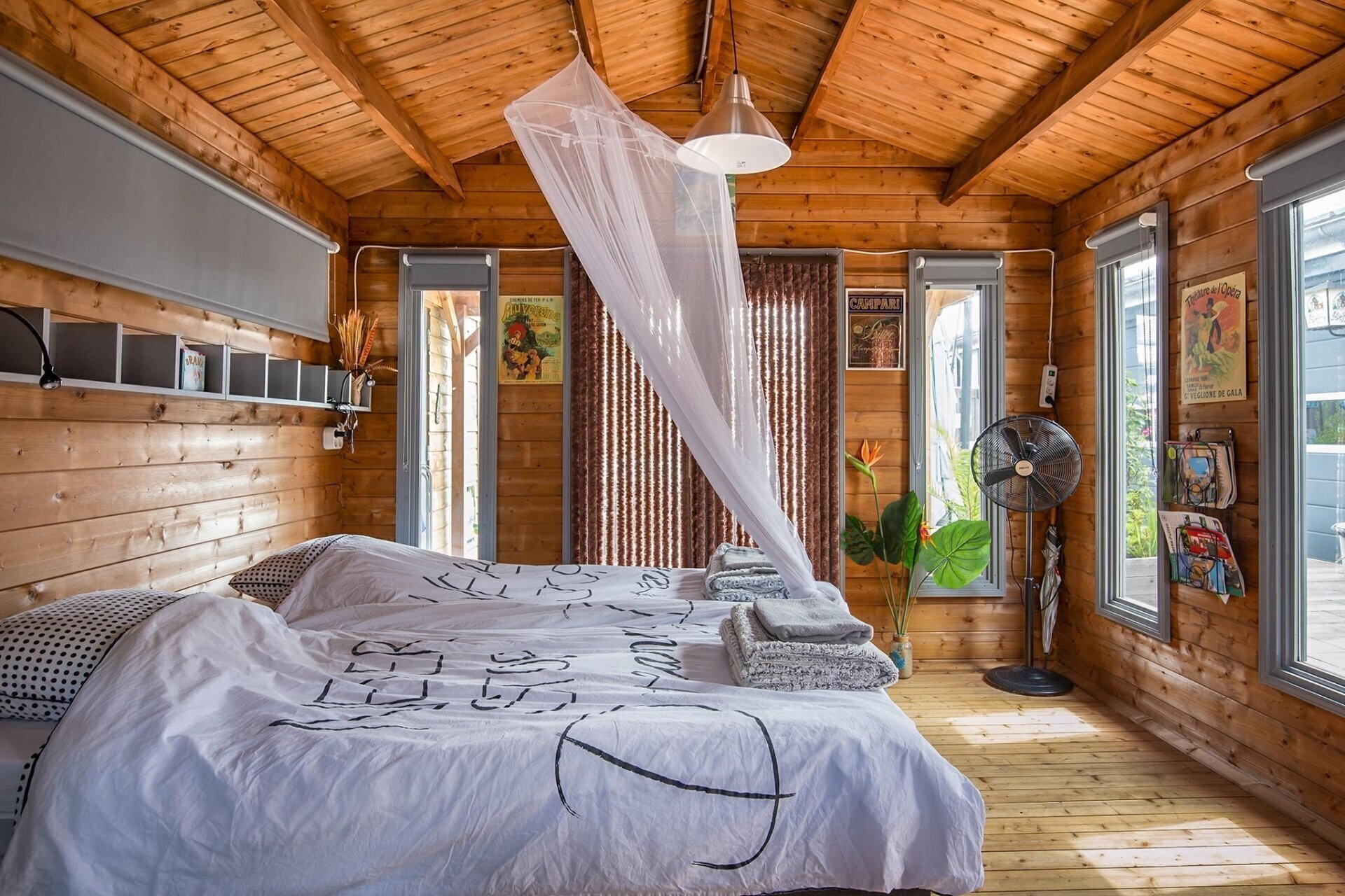 Betreft een geïsoleerd chalet (2016) met aangebouwde overkapping en buitenkeuken. Deze logeer accommodatie is circa 12m2 groot en is in 2020 voorzien van een eigen sanitair blok met douche en toilet.