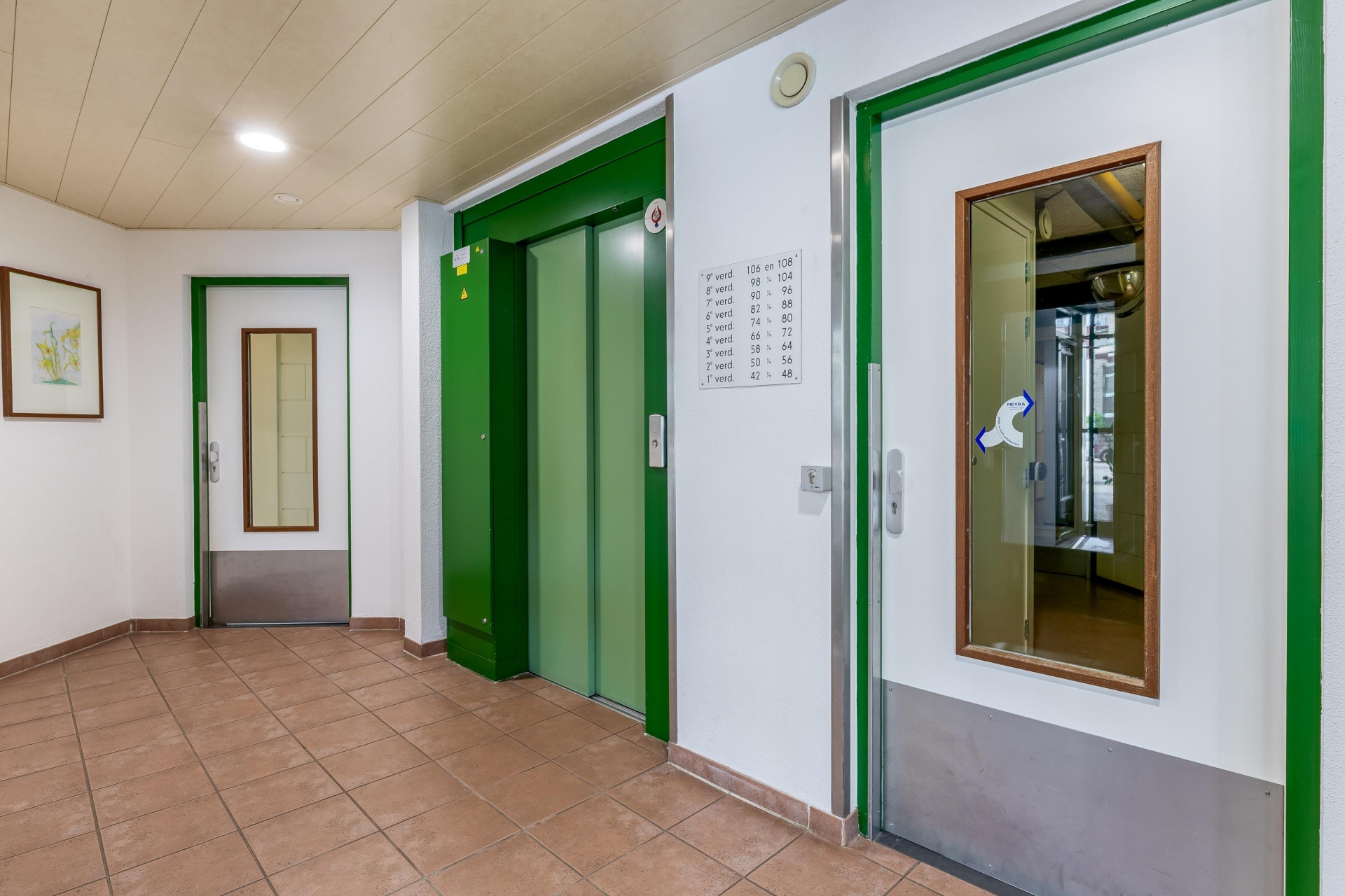 Afgesloten entree met brievenbussen, bellentableau/videofoon, liftinstallatie, trappenhuis en toegang tot bergingen.