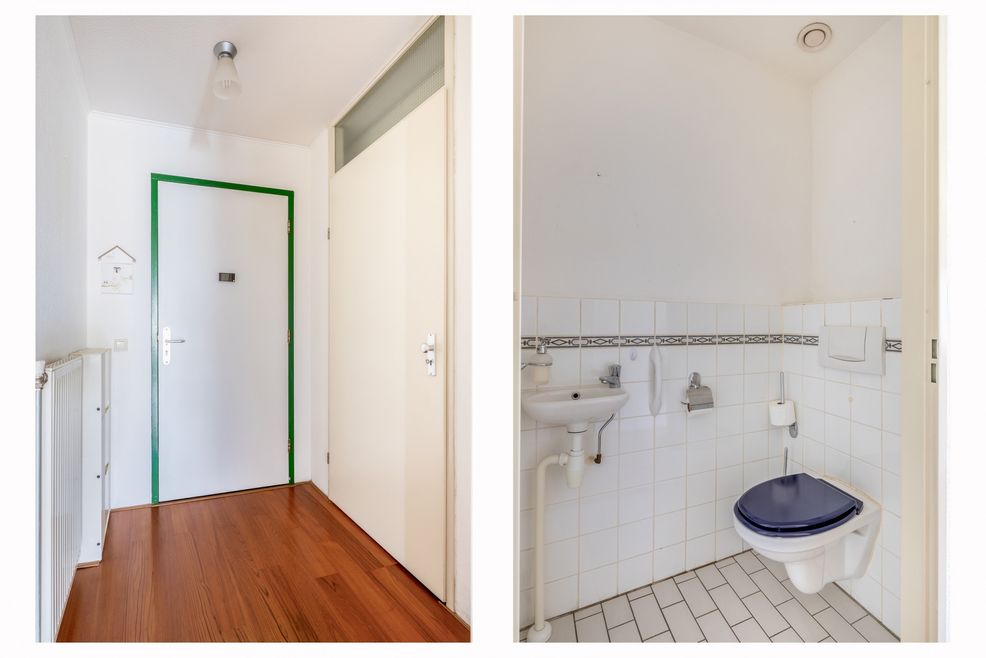 Op de 5 etage treffen we de entree/hal met videofoon, garderobekast, toilet met fontein en berging.