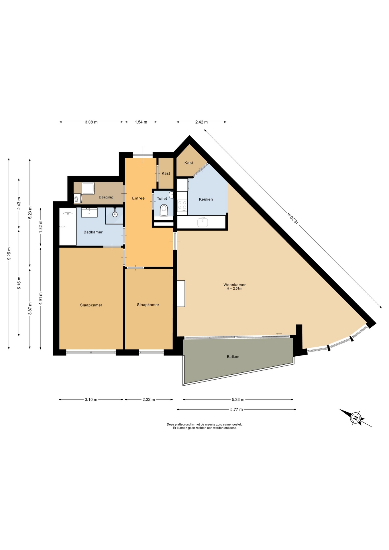 “Deze informatie is door ons met de nodige zorgvuldigheid samengesteld. Onzerzijds wordt echter geen enkele aansprakelijkheid aanvaard voor enige onvolledigheid, onjuistheid of anderszins, dan wel de gevolgen daarvan. Alle opgegeven maten en oppervlakten zijn indicatief.”
