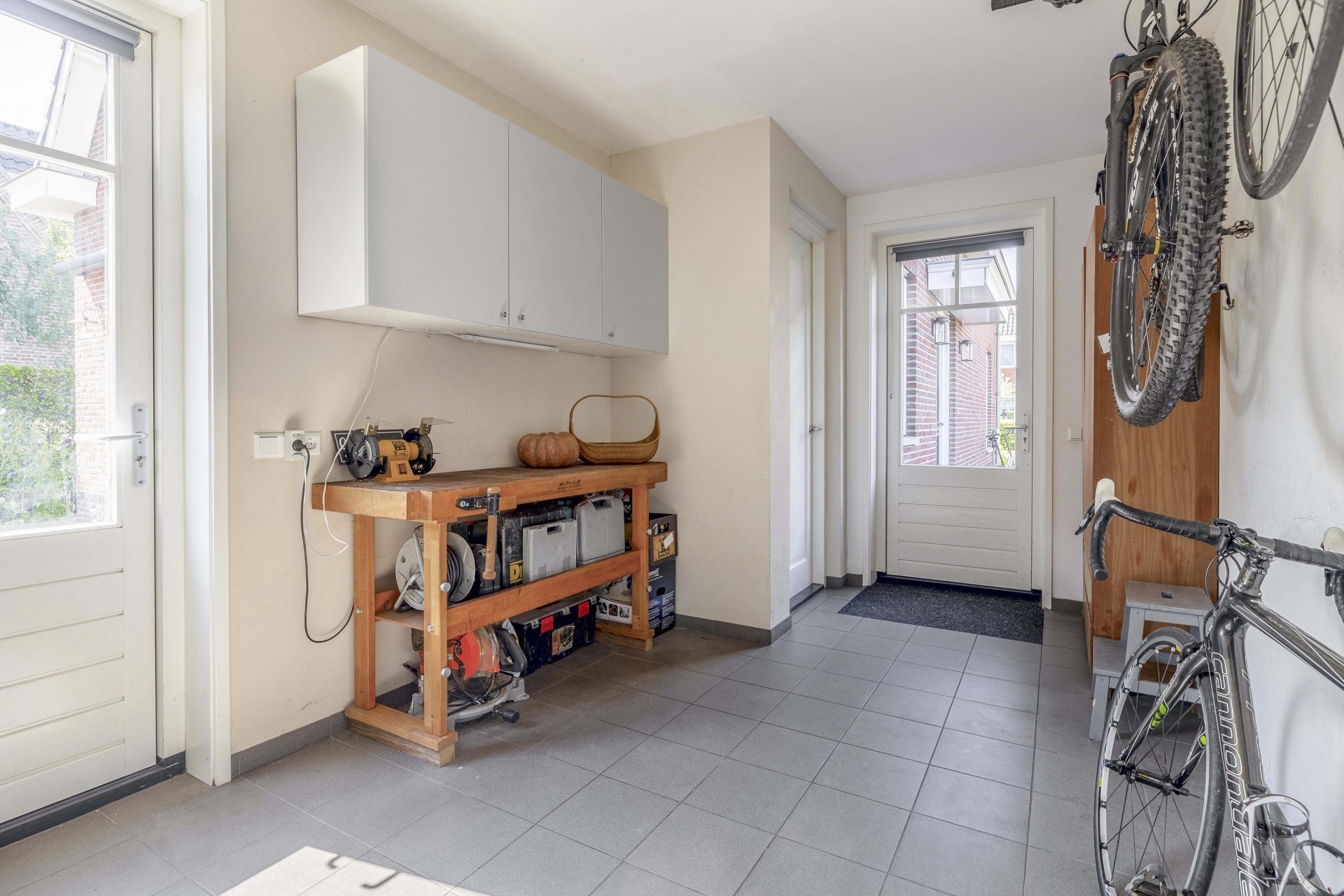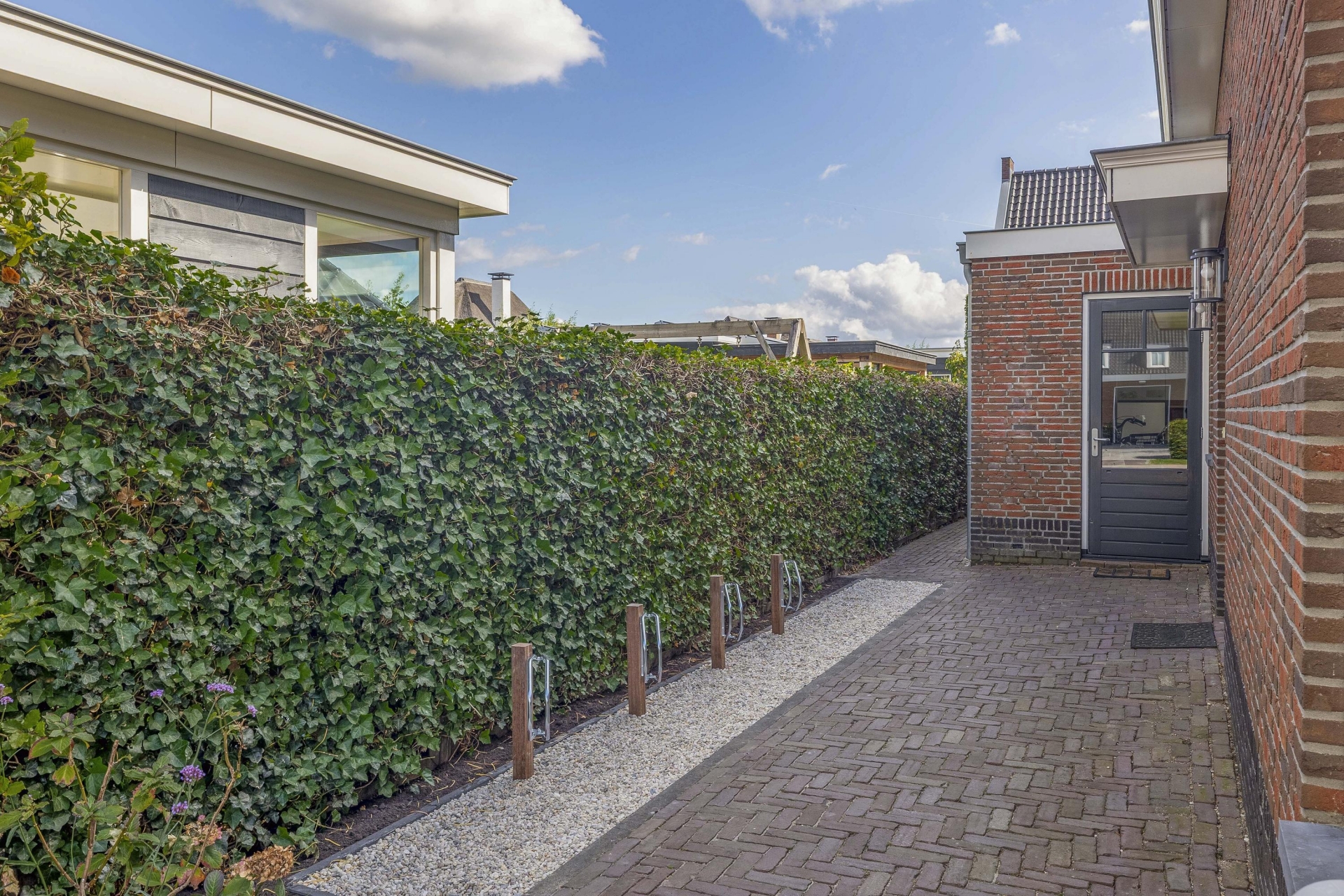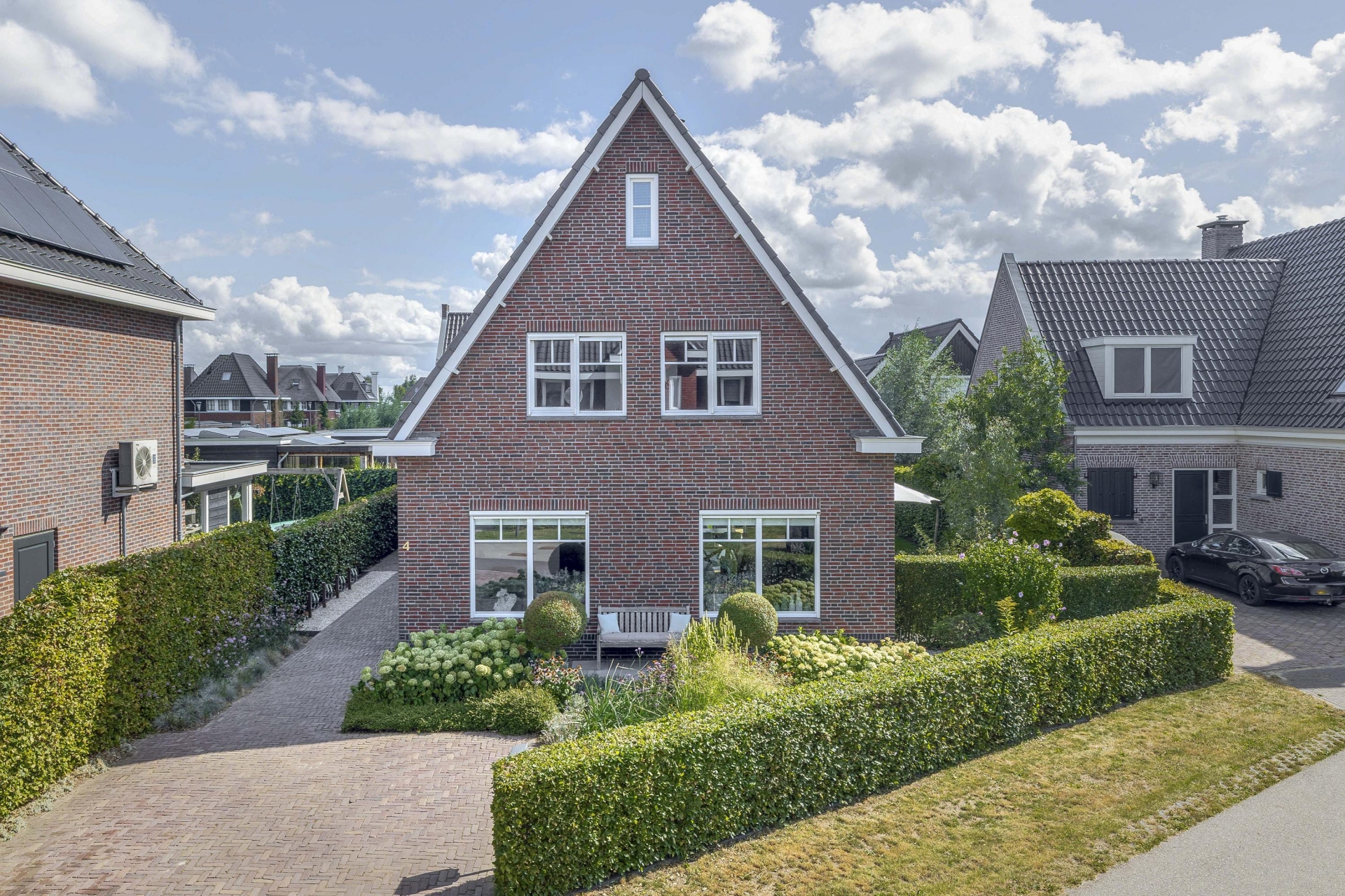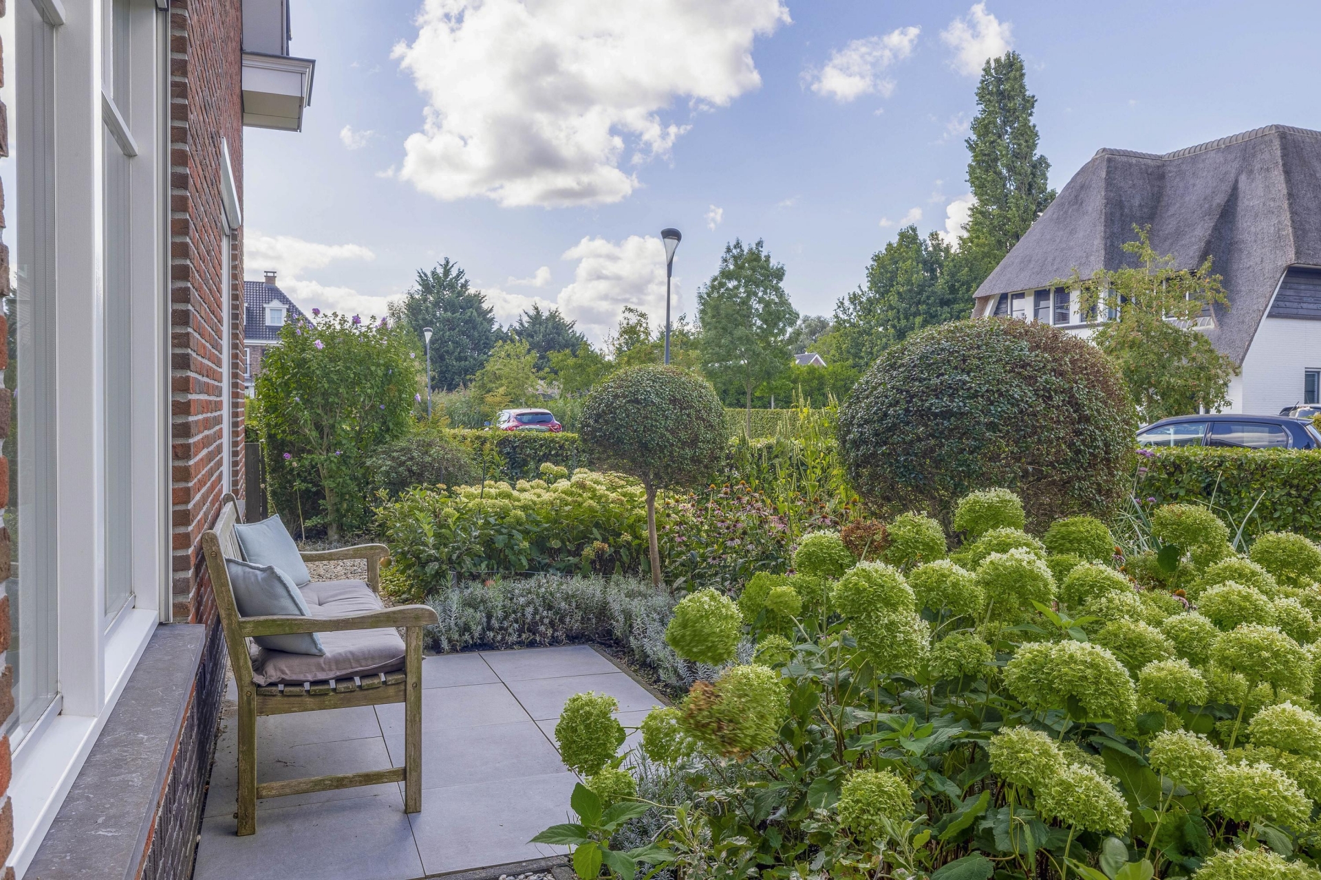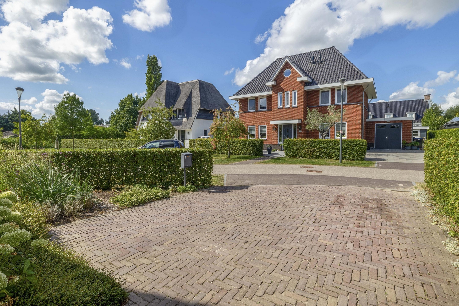 Buiten vind je rondom het huis een fraai aangelegde tuin met meerdere zitplekken, beplanting en een mooie balans tussen groen en bestrating. De achtertuin ligt gunstig voor de zon en is via meerdere deuren te bereiken. Of je nu wilt genieten van de ochtendzon of juist een fijne plek zoekt voor de BBQ in de avond: de tuin biedt altijd een geschikte hoek. Er is meer dan genoeg ruimte voor een loungeset, buitenkeuken of speeltoestellen voor kinderen. Achterin de tuin is een praktische berging en natuurlijk parkeer je je auto's gewoon op je eigen oprit.