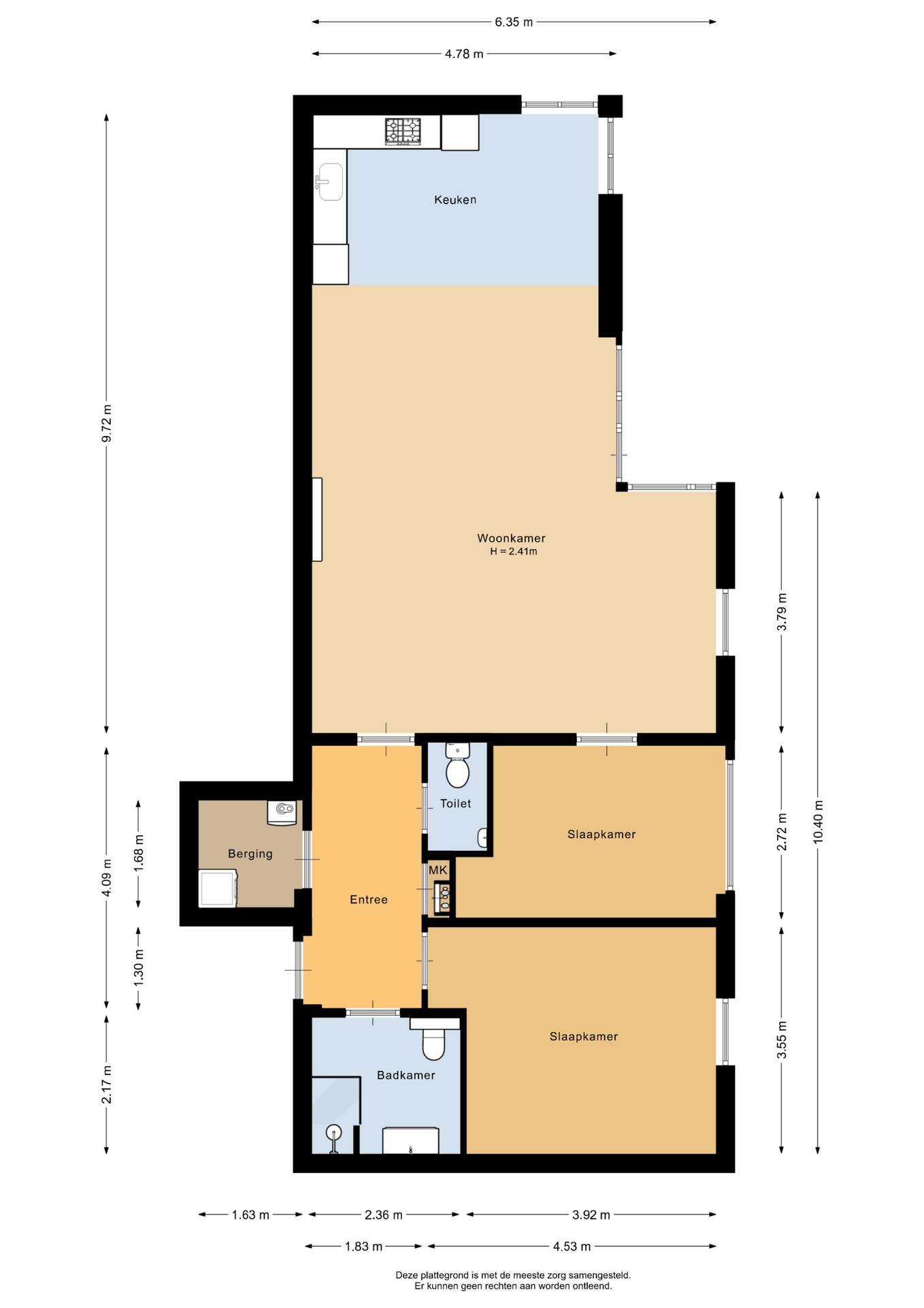 “Deze informatie is door ons met de nodige zorgvuldigheid samengesteld. Onzerzijds wordt echter geen enkele aansprakelijkheid aanvaard voor enige onvolledigheid, onjuistheid of anderszins, dan wel de gevolgen daarvan. Alle opgegeven maten en oppervlakten zijn indicatief.”