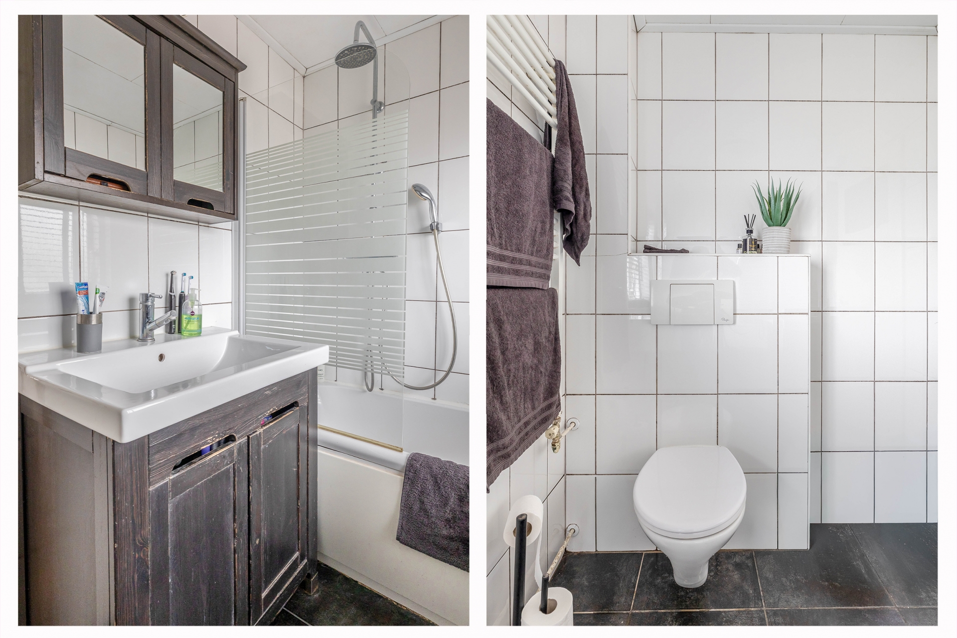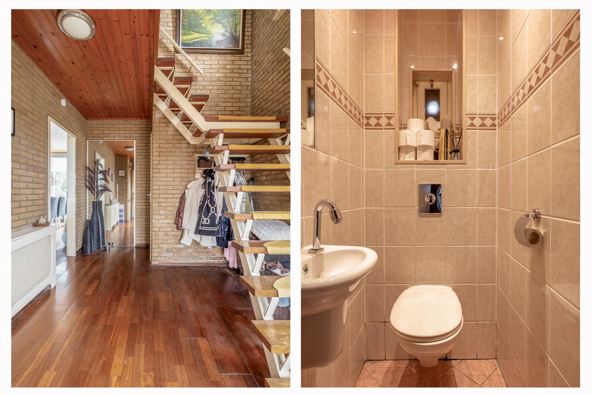 Via de entree komt u in de ruime hal, voorzien van meterkast en een modern toilet met zwevend closet en fonteintje. Vanuit de hal heeft u toegang tot de woonkamer.